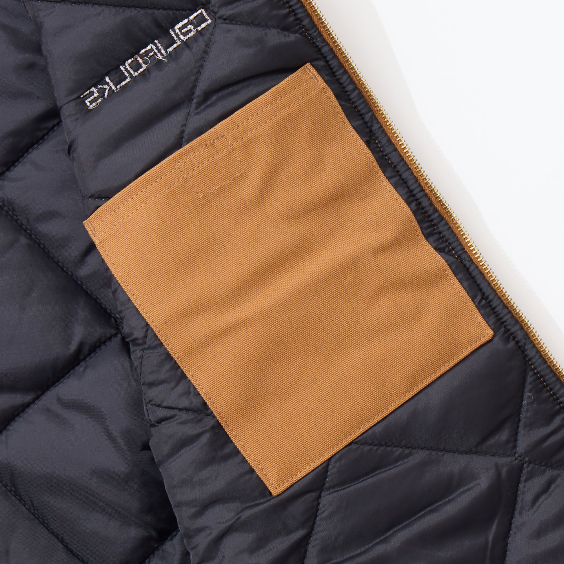 カリフォルニア発のブランドCALIFOLKS(カリフォークス)のCARHART USA DUCK VEST w/CALIFOLKS EMBROIDERY。アメリカ流通のカーハートのベストにカリフォークスの刺繍が施されたコラボレーションアイテム。リブの襟に前立てはジップフロント。腰の左右にパッチポケットを装備。強靭なダック素材。キルティングのライニングが付いており保温性も高い1着。