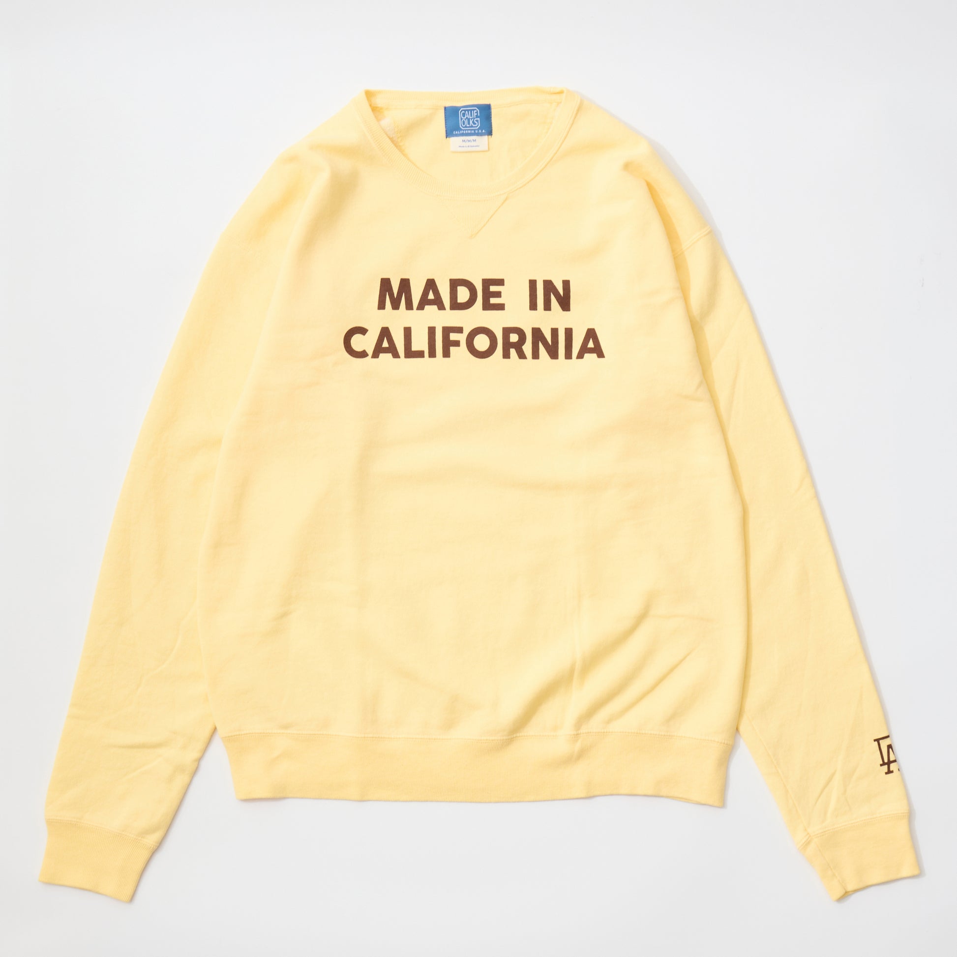 カリフォルニア発のブランドCALIFOLKS(カリフォークス)のMADE IN CALIFORNIA COMFORT WASH CREW NECK SWEAT SHIRT。保温性の高い裏起毛のスウェット素材を使用したクルーネックスウェット。「Made in California」のラバープリント。丸胴でセットインスリーブ。ボディはコットン 80% ポリエステル20%の混紡素材で柔らかい着心地。MADE IN CALIFORNIAはプリントデザインとなります。生産国はエルサルバドルとなっております。