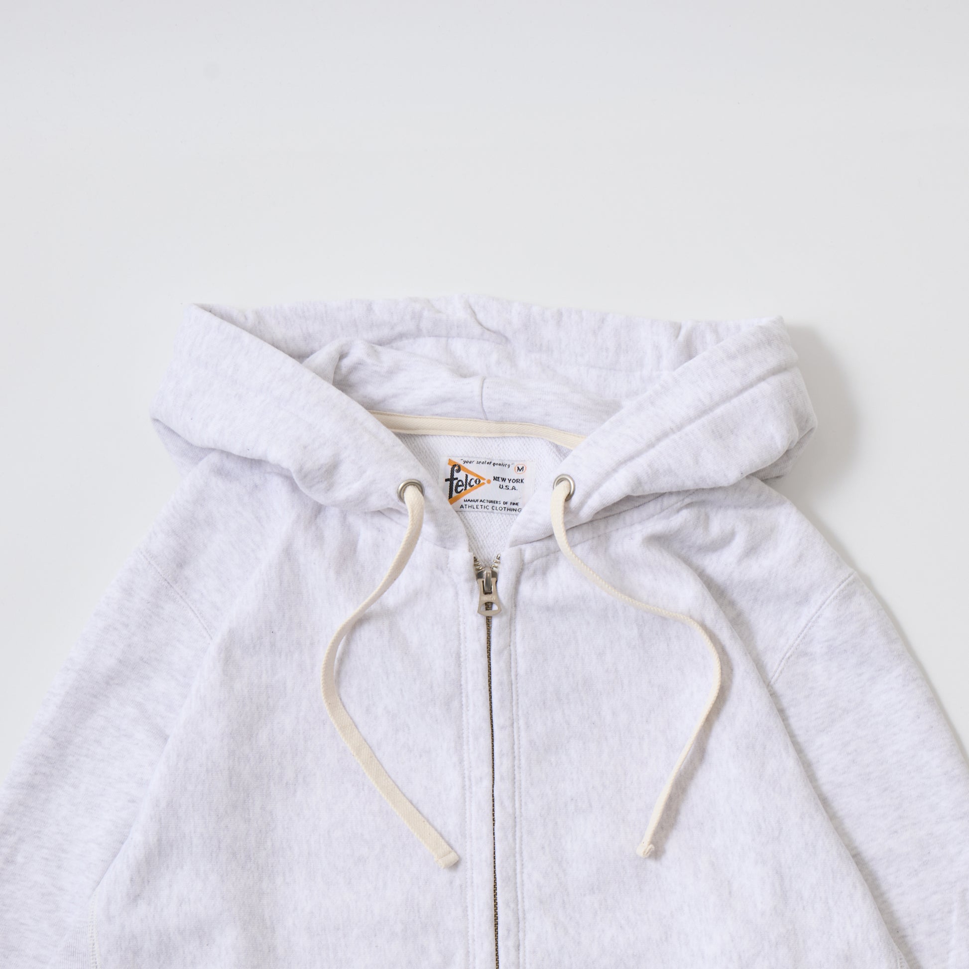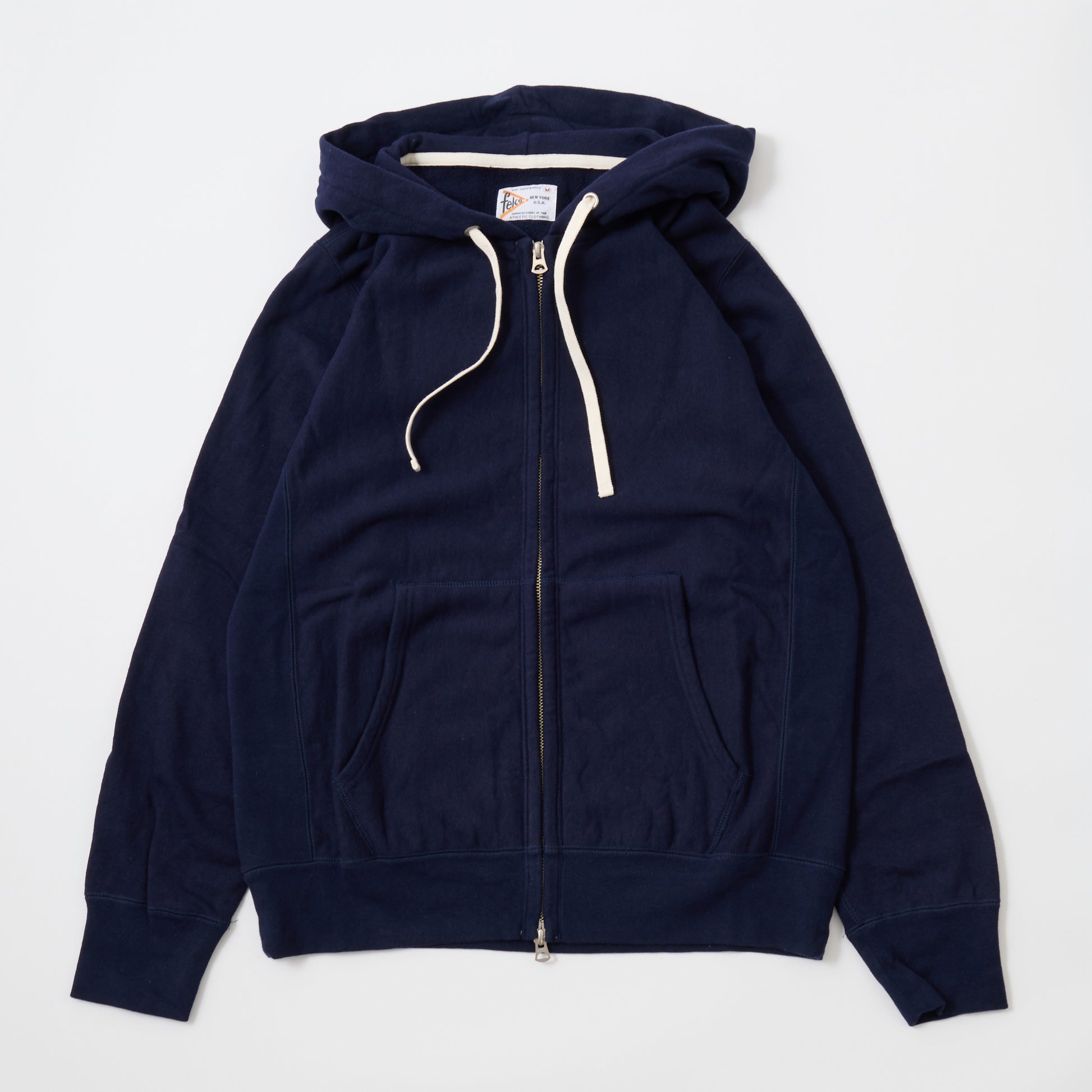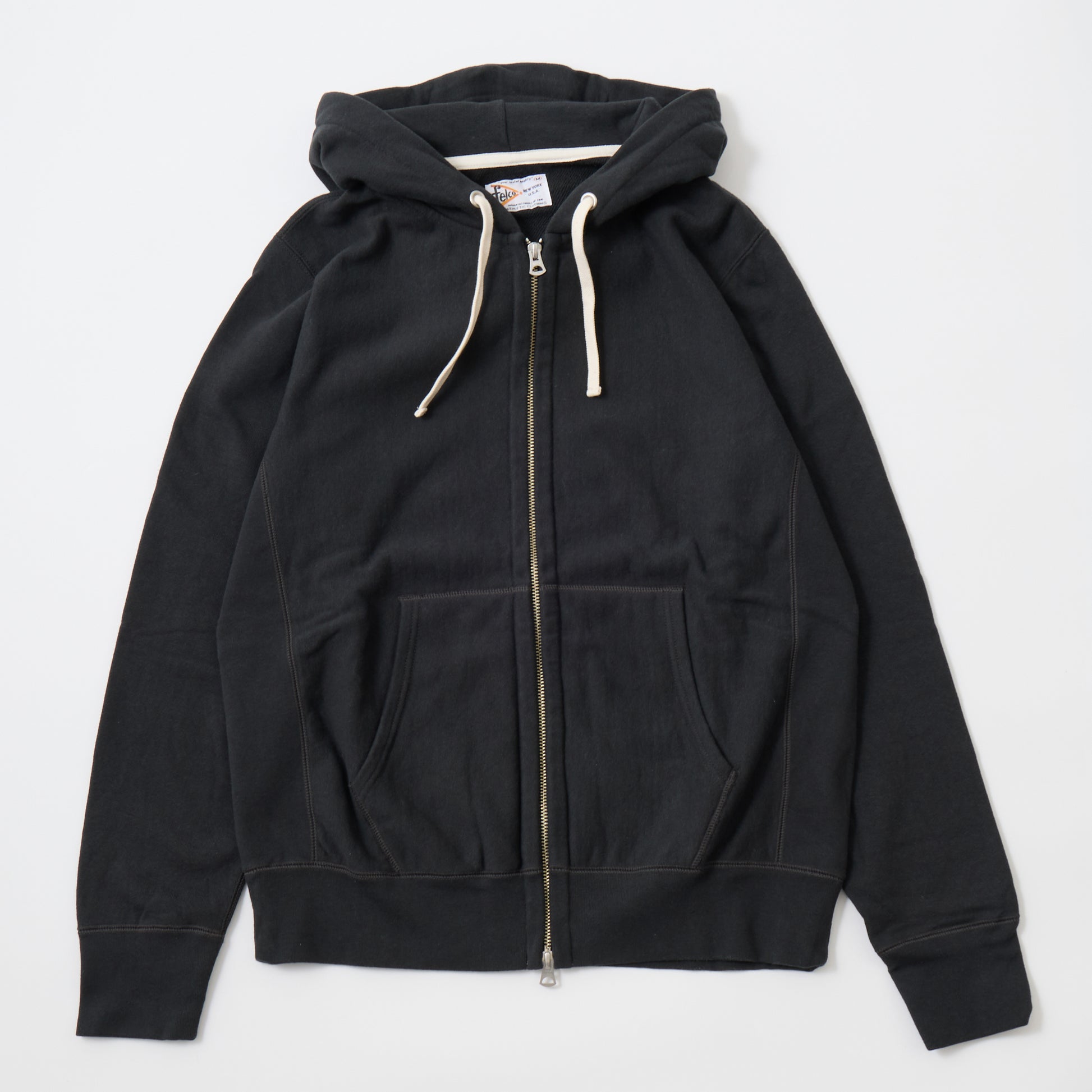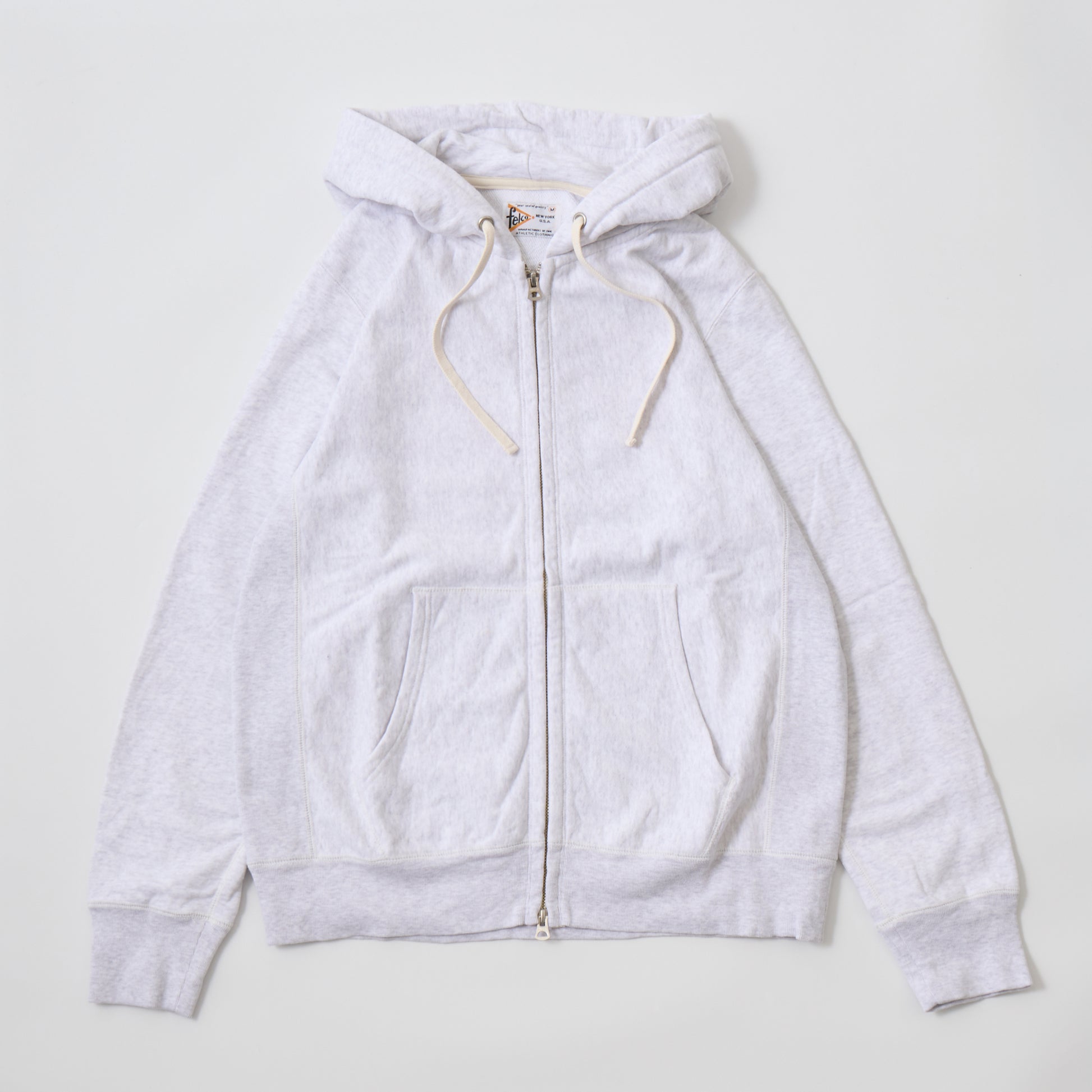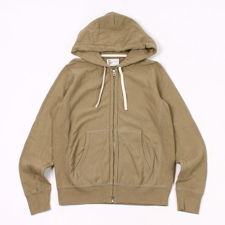 FELCO(フェルコ)の、12oz FRENCH TERRY INVERSE WEAVE FULL ZIP PARKA W/KANGAROO POCKET。程よい厚みとコシのあるライトウェイトのフレンチテリー(裏起毛していないスウェット生地)素材を使用した、フルジップのパーカー。生地を横向きに使用することで縦の縮みを軽減し、サイドリブが横縮み防止と動きやすさを実現したインバースウィーブの仕様。ダブルジップで着易く、正面にはカンガルーポケット付き。アウターとしては勿論、重ね着にも使い易いウェイトで、春・秋・冬と幅広く使える汎用性の高いアイテムです。
