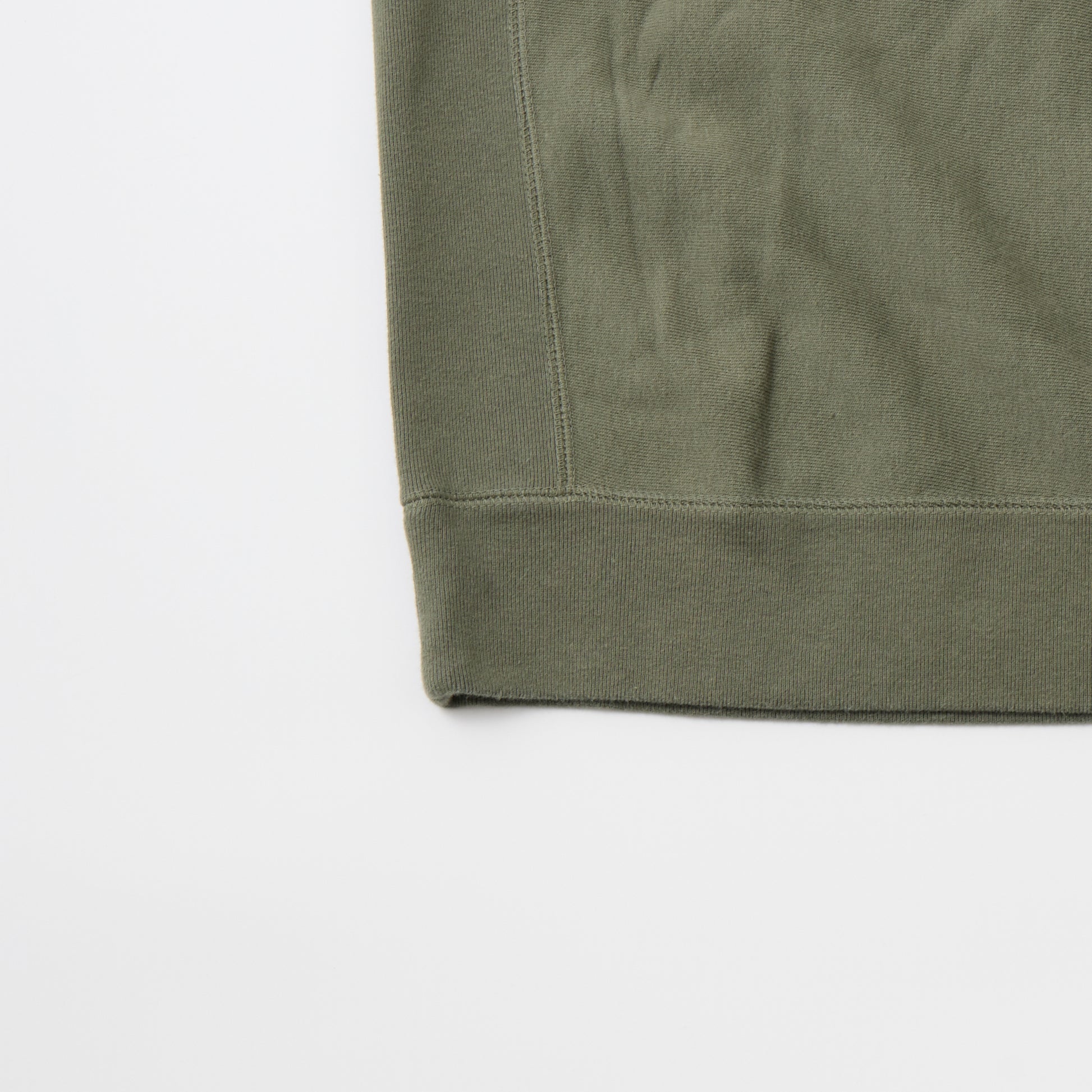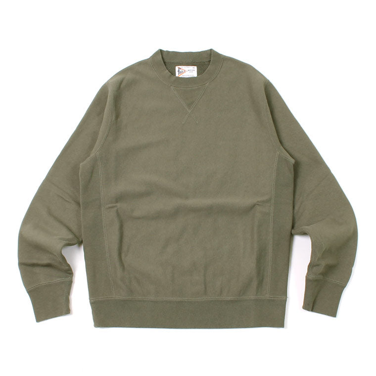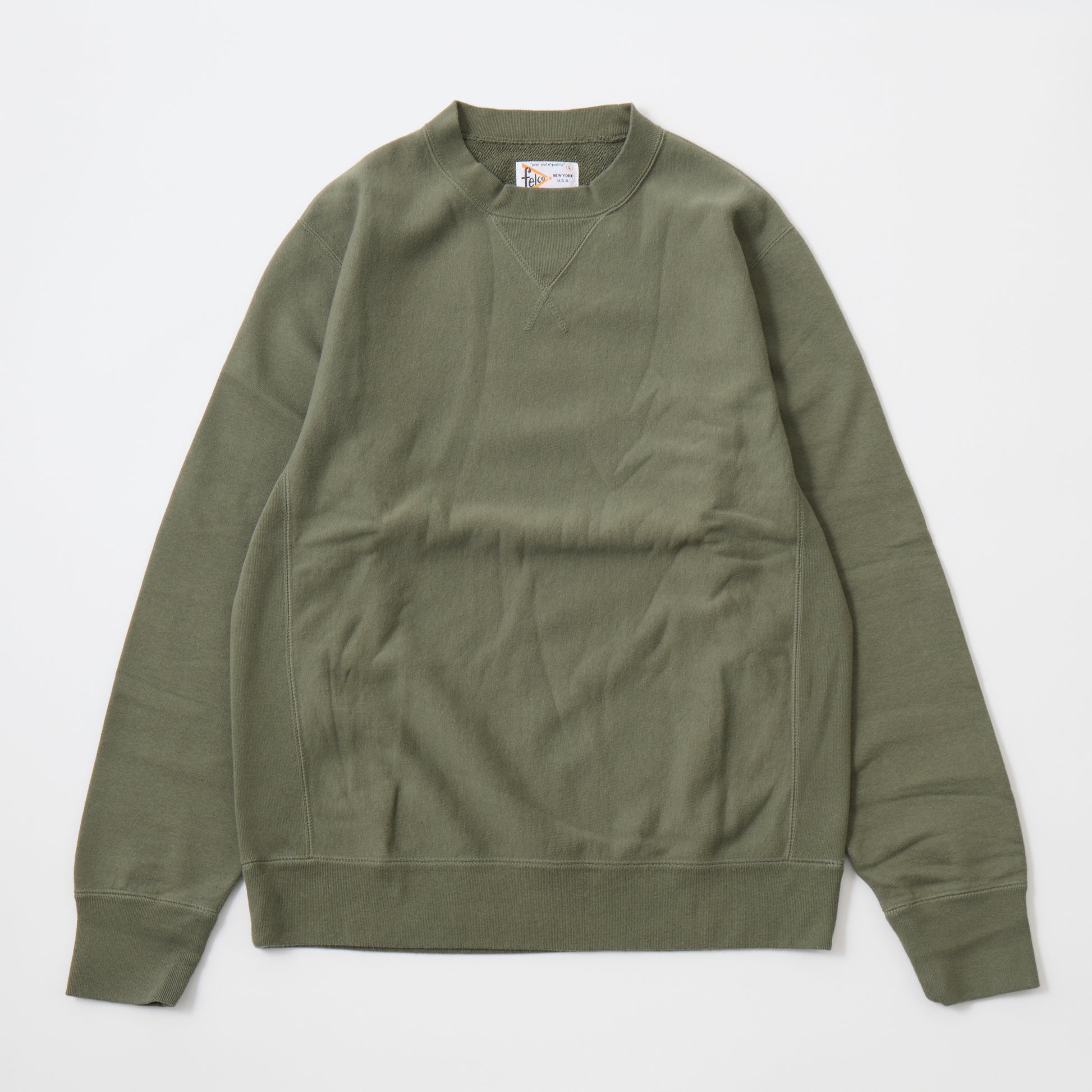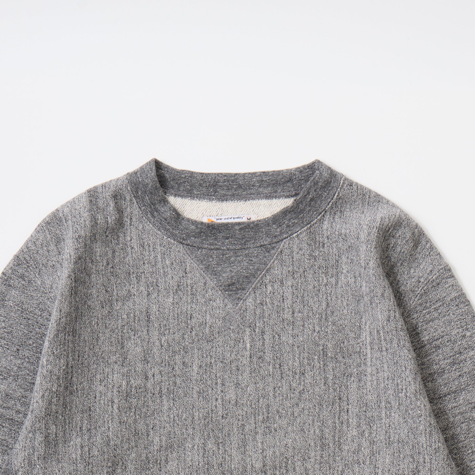 FELCO(フェルコ)の12oz TERRY INVERSE WEAVE V GUSSET SWEAT。程よい厚みとコシのあるライトウェイトのフレンチテリー(裏起毛していないスウェット生地)素材を使用した、セットインスリーブのVガゼットクルーネックスウェット。生地を横向きに使用することで縦の縮みを軽減し、サイドリブが横縮み防止と動きやすさを実現したインバースウィーブの仕様。程良くゆとりを残したサイズバランスで春先や秋口は1枚で着易く、冬にはインナーとして使いやすいウェイトで、年間通して汎用性の高いアイテムです。