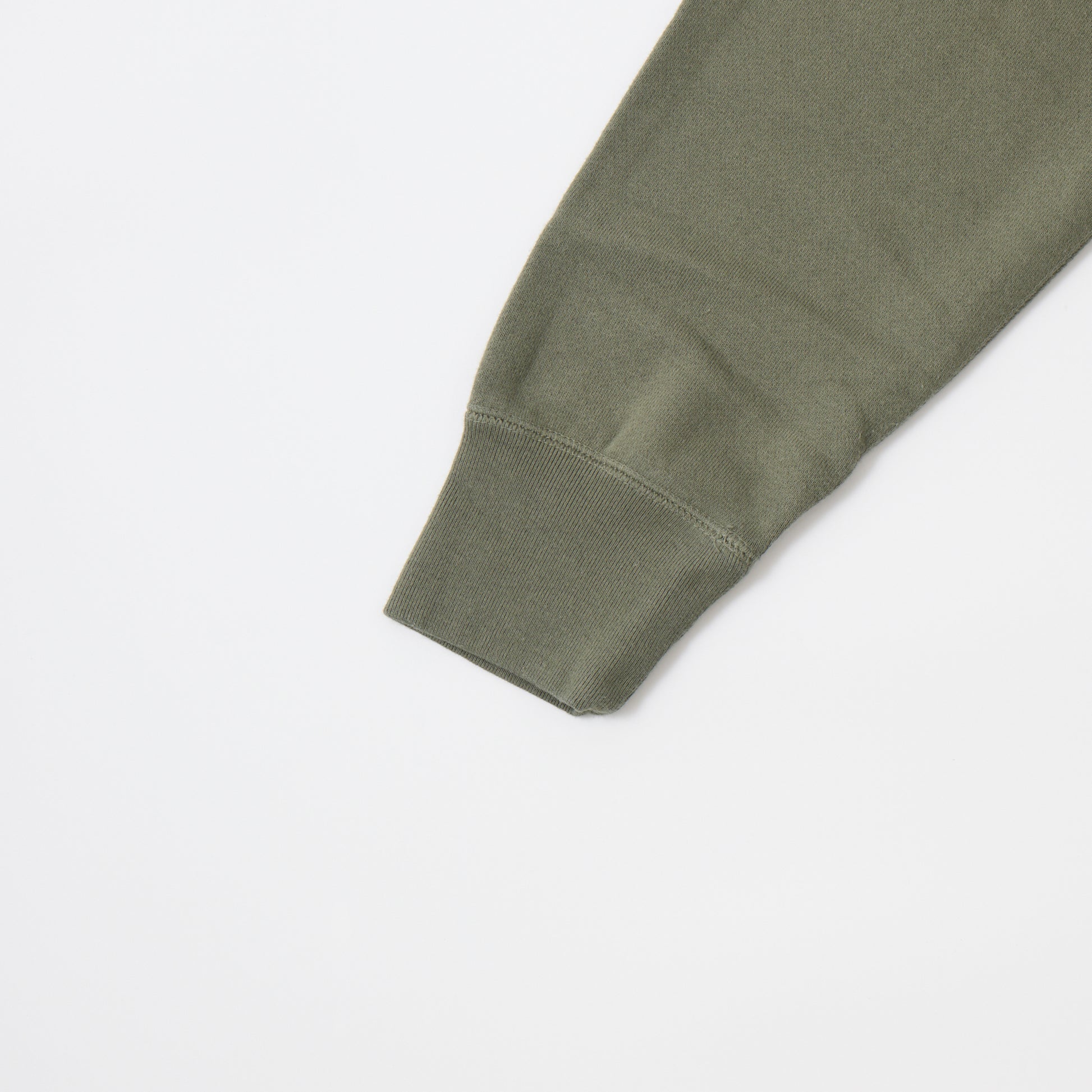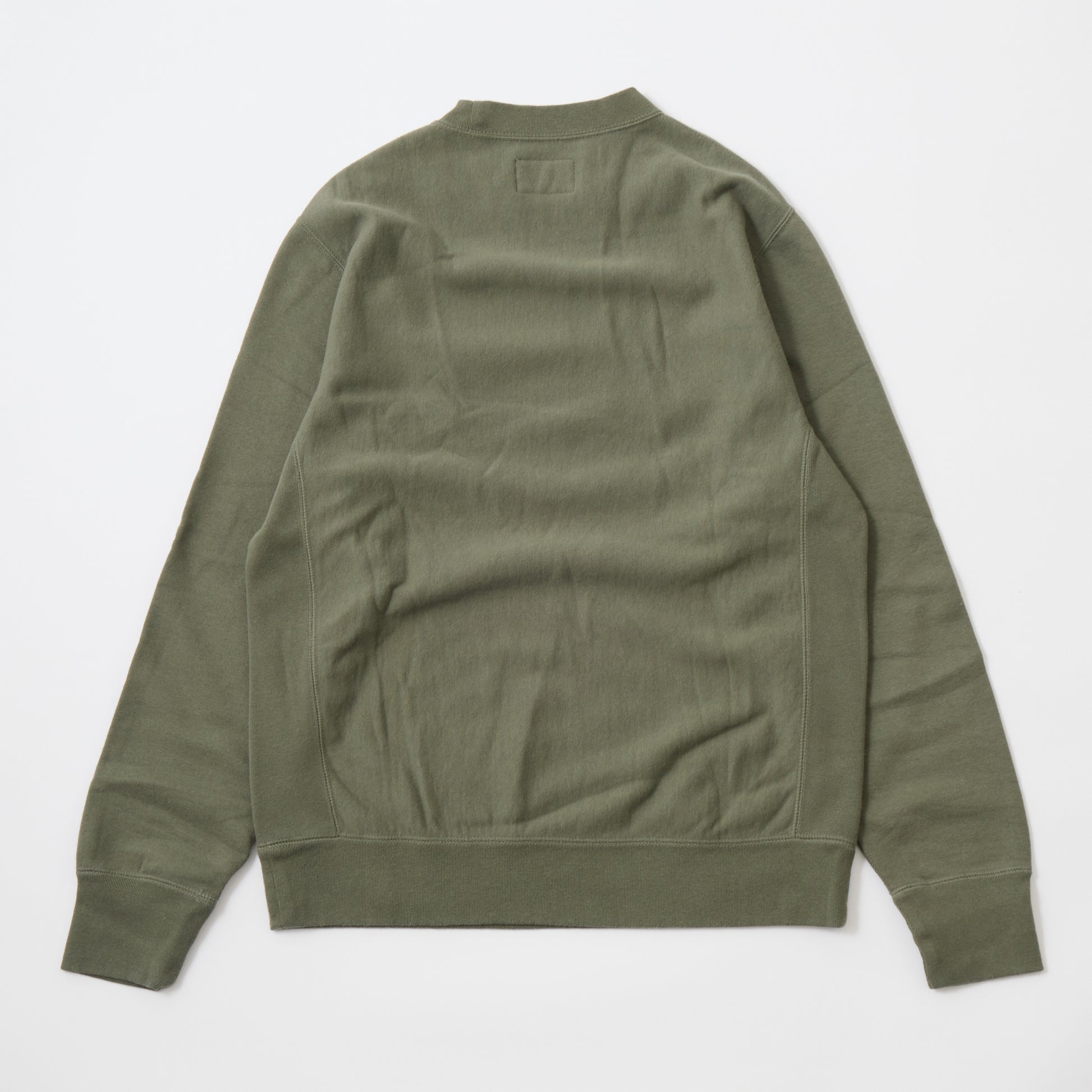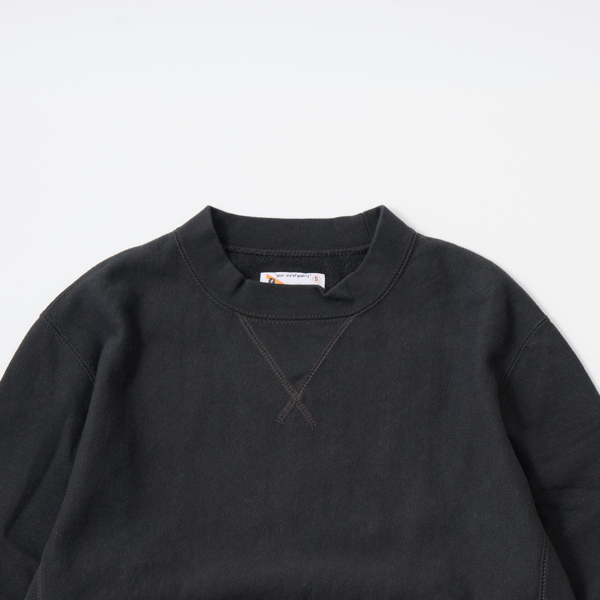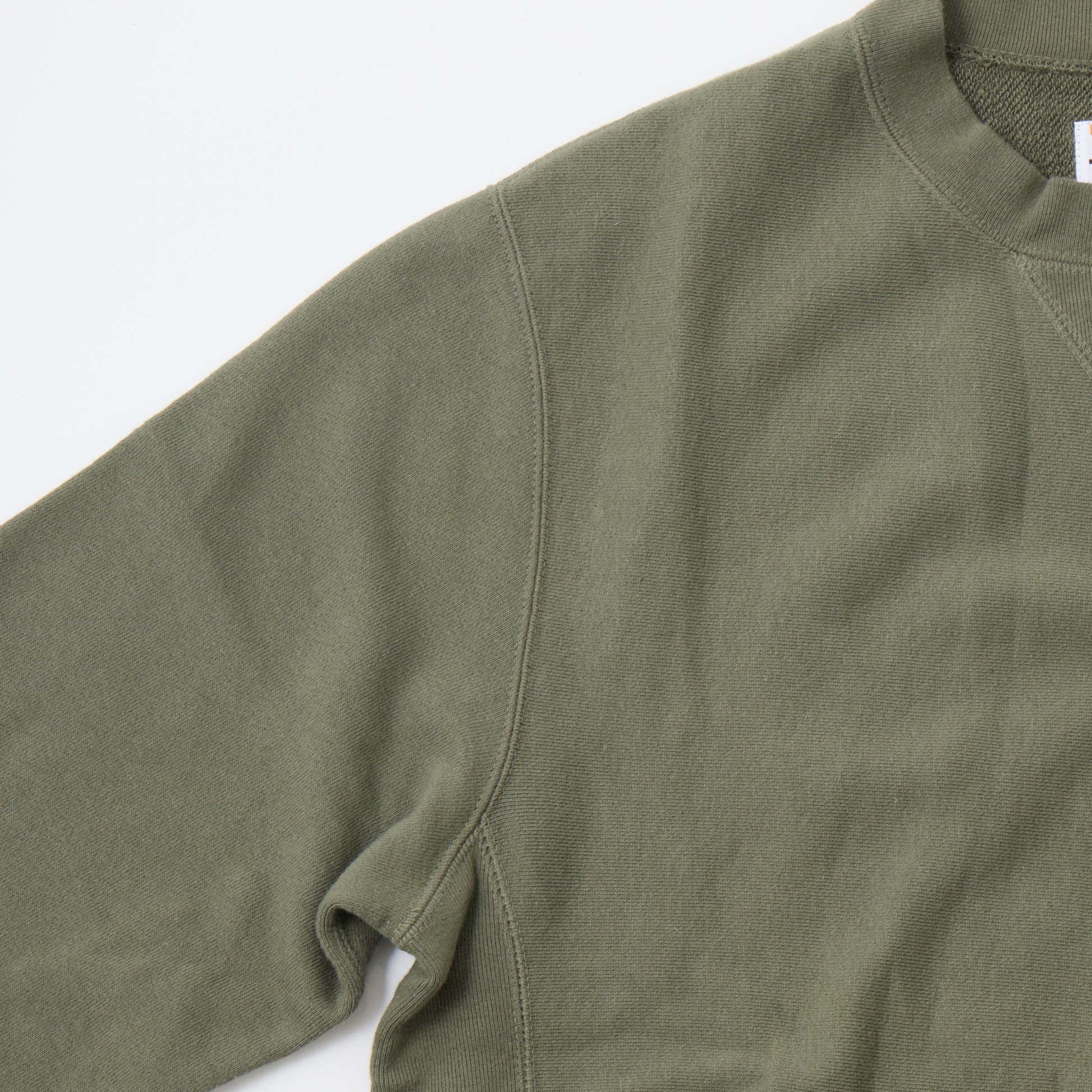 FELCO(フェルコ)の12oz TERRY INVERSE WEAVE V GUSSET SWEAT。程よい厚みとコシのあるライトウェイトのフレンチテリー(裏起毛していないスウェット生地)素材を使用した、セットインスリーブのVガゼットクルーネックスウェット。生地を横向きに使用することで縦の縮みを軽減し、サイドリブが横縮み防止と動きやすさを実現したインバースウィーブの仕様。程良くゆとりを残したサイズバランスで春先や秋口は1枚で着易く、冬にはインナーとして使いやすいウェイトで、年間通して汎用性の高いアイテムです。