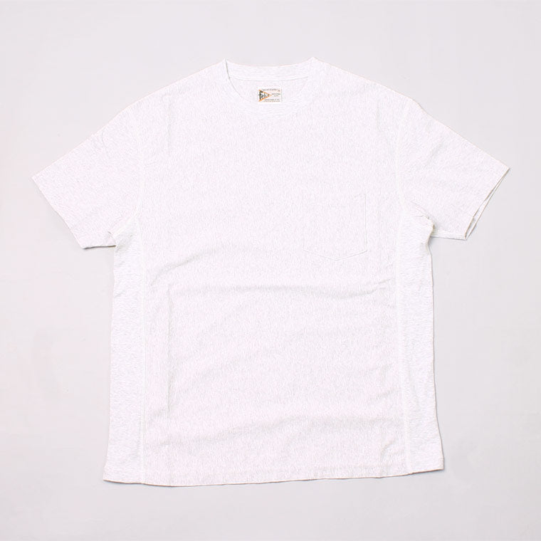 7oz コットン100%ジャージー生地の薄手のクルーネック半袖ポケットTシャツ。胸にポケットを配置し、生地を横向きに使用することで縦縮みを軽減し、サイドリブが横縮み防止と動きやすさを実現したインバースウィーブ仕様。アメリカブランドらしいボックスシルエットで程良いゆとりがあり、インナーには勿論一枚でもサマになるTシャツです。インバースウィーブと7オンスのタフな生地で、着倒しても型崩れしにくくへこたれない、デイリーに着用して頂ける1枚です。