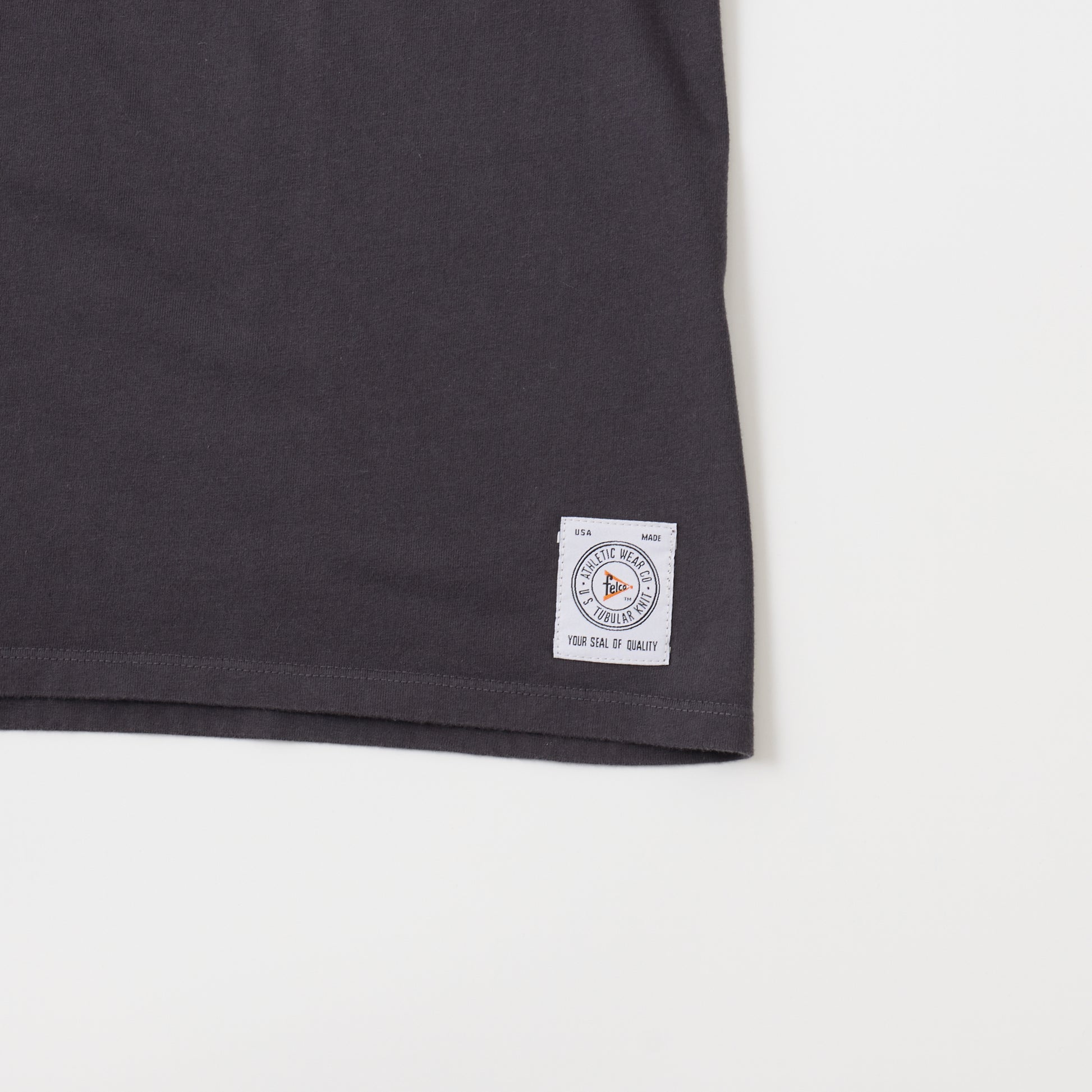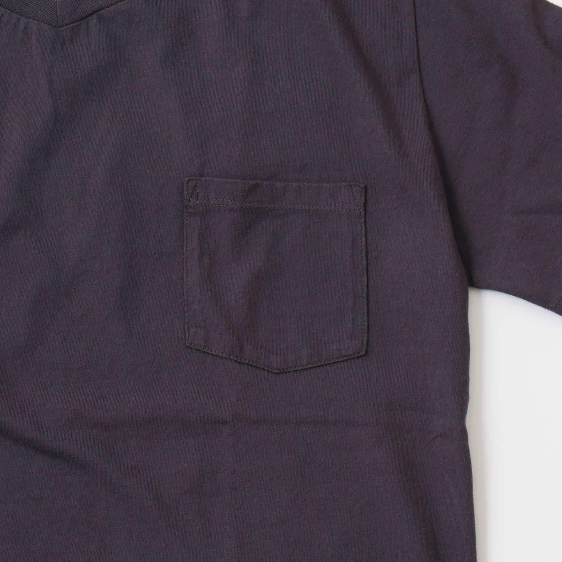 丸胴でヘビーウェイトのカリフォルニアの凹凸感のある生地でサイズは、USAでは珍しい1インチ刻みで着丈は短めになっております。生地から編み上げており今年で同じ生地は、生産終了です。この丸胴のサイズ感は、他ブランドにはない唯一無二のMADE IN USAの一枚です。丸胴とはT-SHIRTの脇の部分にステッチのない筒状になっている生地の呼び方であります。脇の部分にステッチがない為、ストレスのない着心地は最高です。3年ぶりに復活した深すぎず浅すぎない絶妙なラインのV ネックになります。