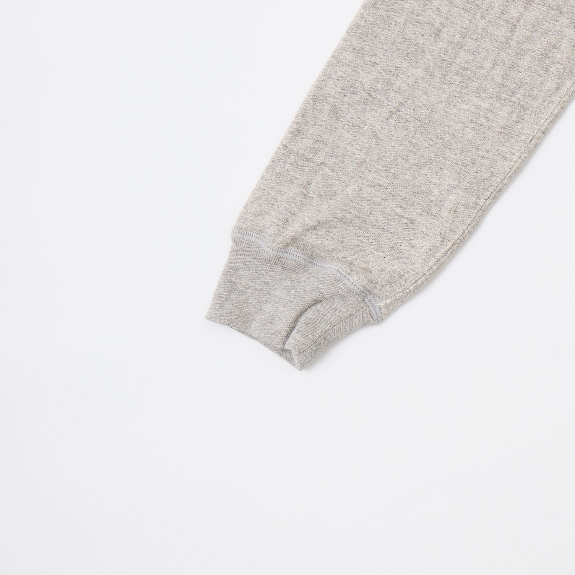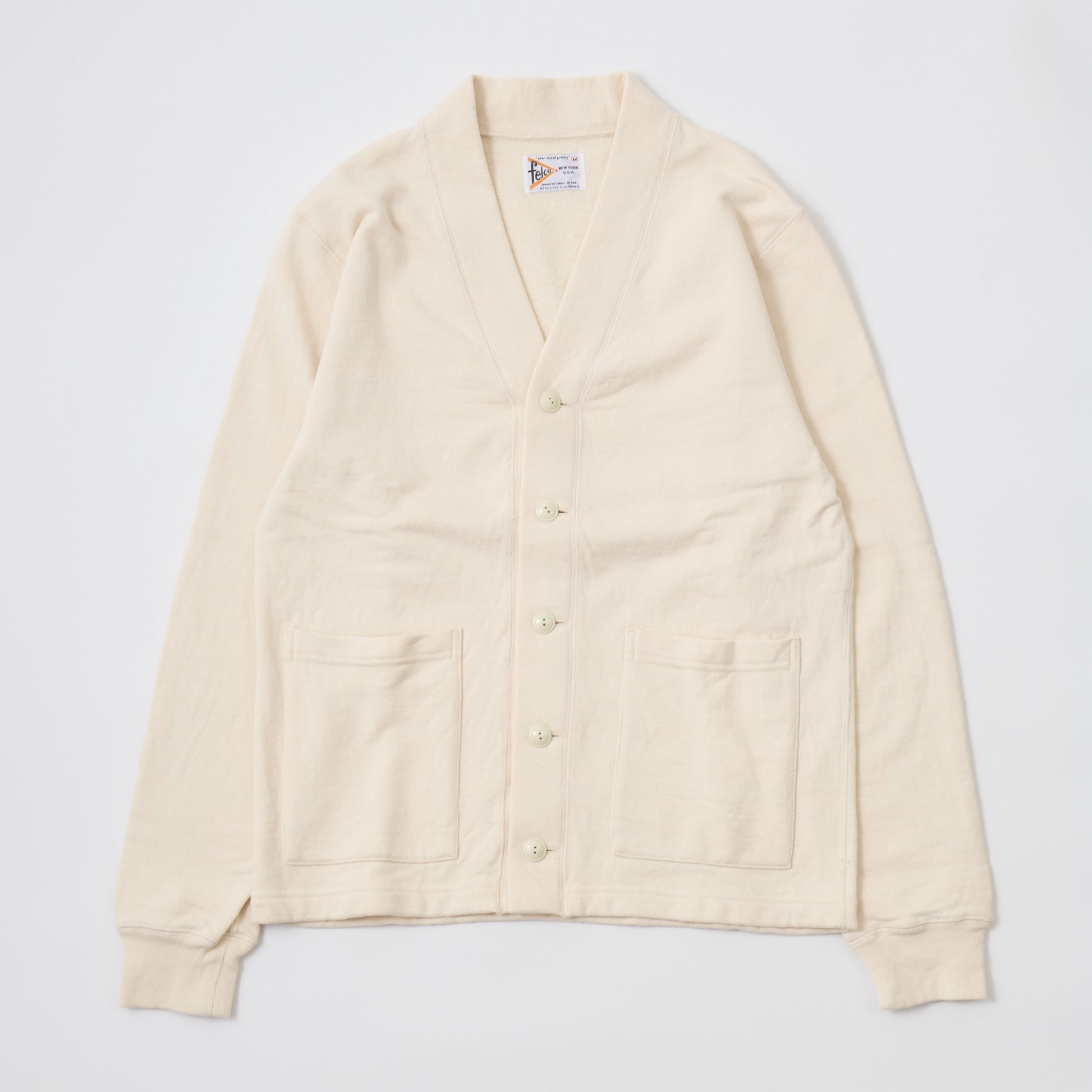 独自で開発した程よい厚みとコシのあるライトウェイトのフレンチテリー(裏起毛していないスウェット生地)素材を使用した Vネックレタードカーディガン。Vゾーンをやや狭めにしてボタンに拘り5 ボタンを装着した1枚。通常はウールニットで作られていますが、フレンチテリースウェットで作られている為、秋口から春先まで着れる汎用性の高いアイテムになります。
