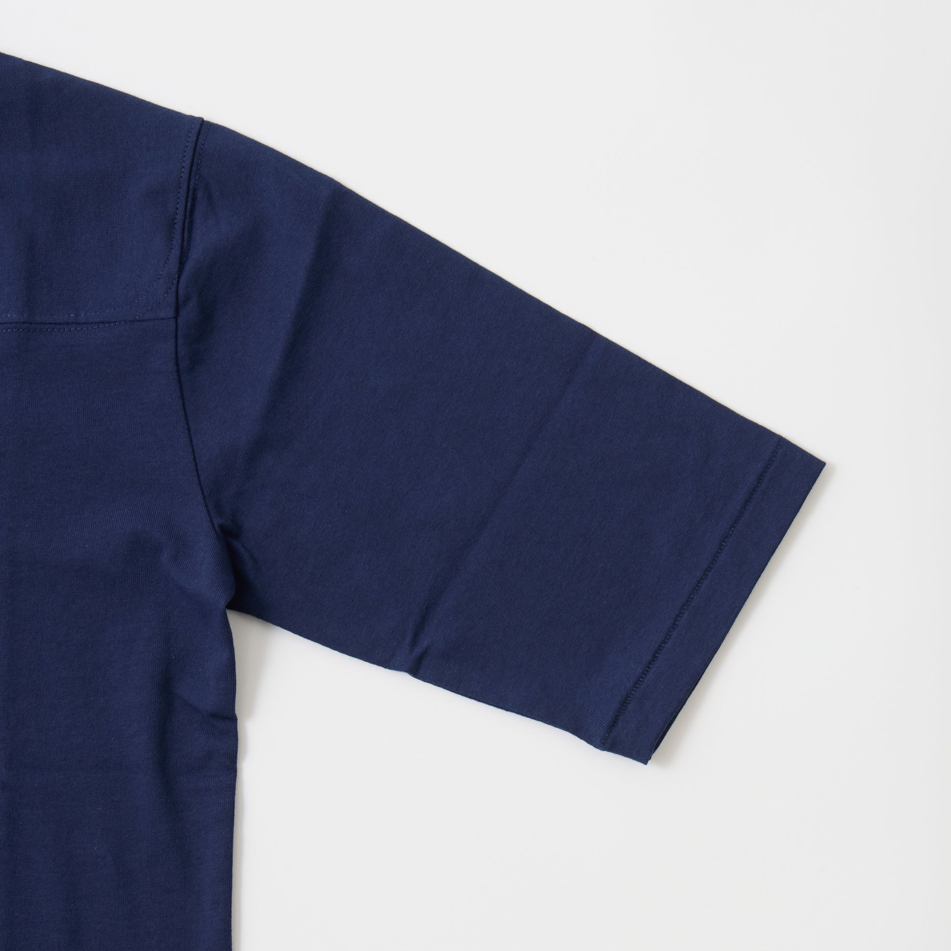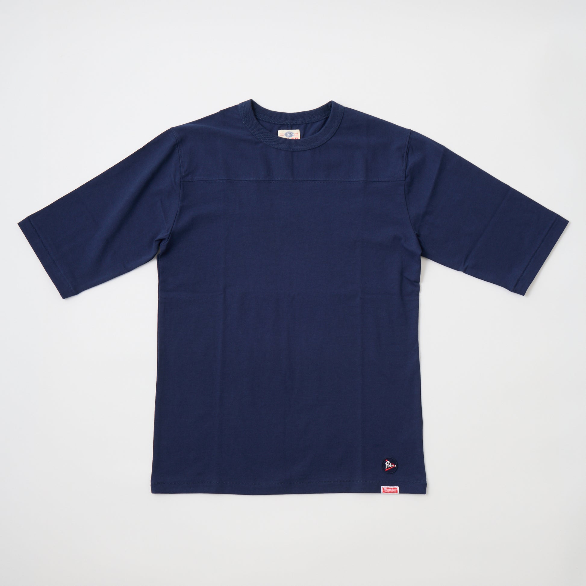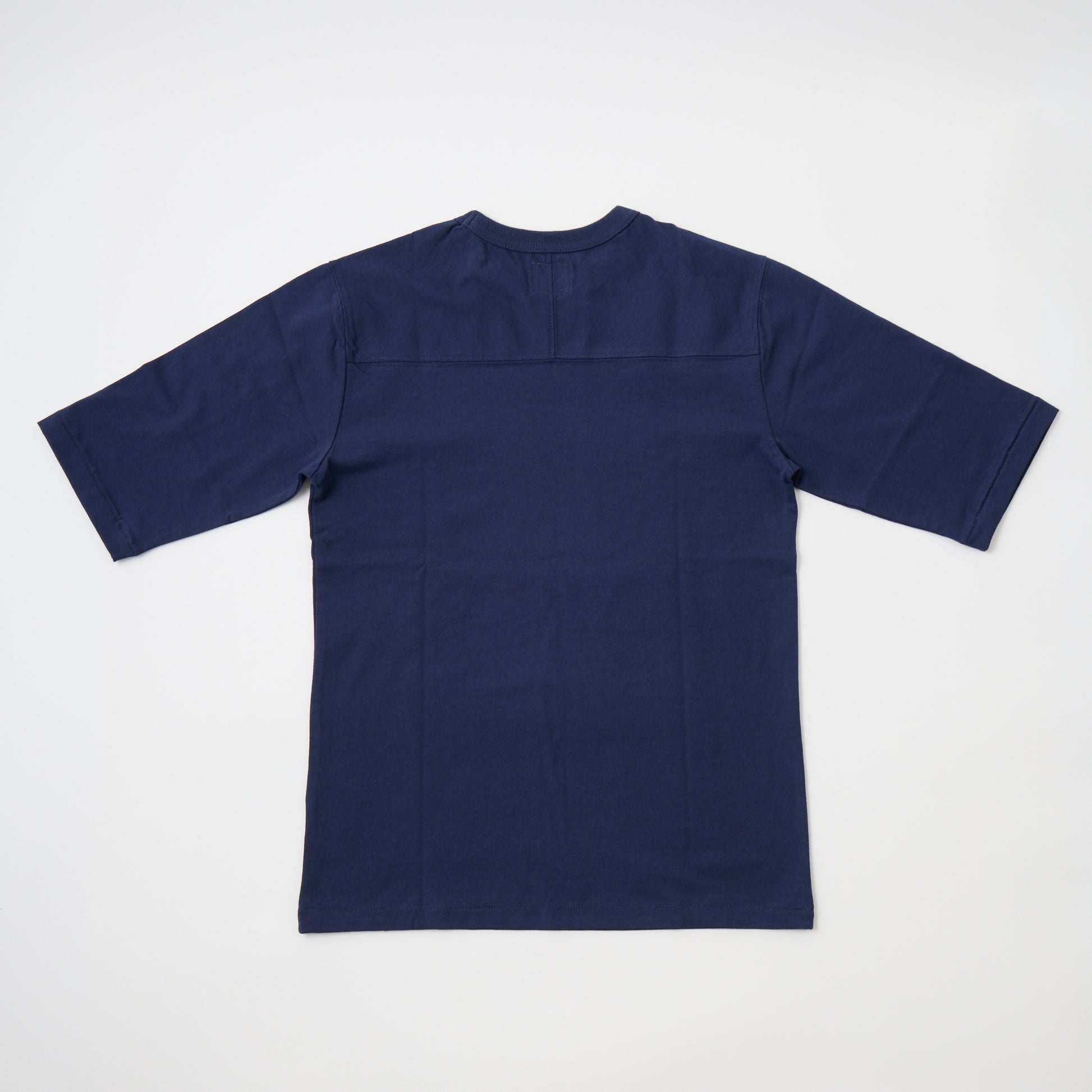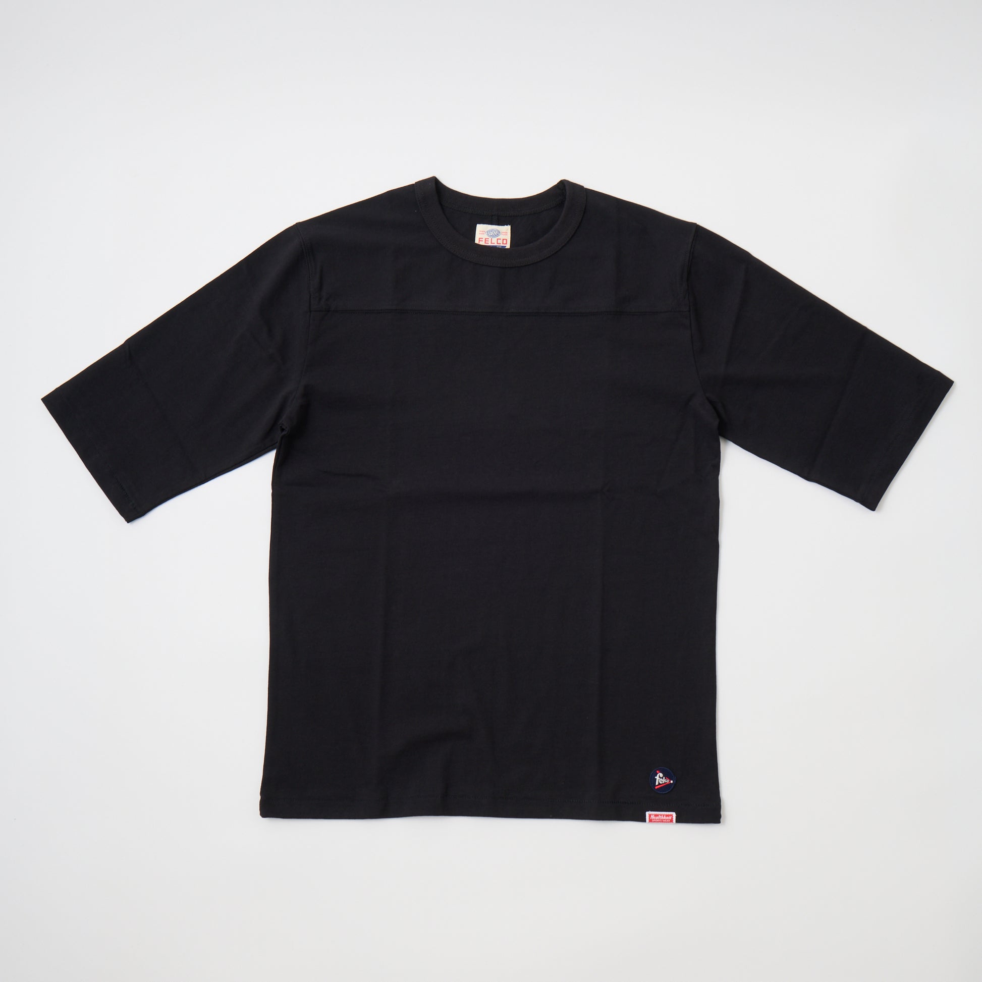 HEALTH KNIT(ヘルスニット)とFELCO(フェルコ)のダブルネームとなるHALF SLEEVE FOOT BALL T OPEN END JERSEY U.S.COTTON。5分袖丈のフットボールジャージーの型を別注したフェルコとのコラボレーションの1枚です。風合いの良いU.Sコットンに抗菌防臭、吸汗速乾にして特注で編み立てた生地を使用。シャリ感のある昔ながらの肌触りの素材。肩に縫い目のないオールドライクなフットボールシャツのデザインは体にフィットするように考え抜かれています。左裾に付けられたFELCO(フェルコ)のワッペンととヘルスニットのタグがちょっとしたアクセントになっています。