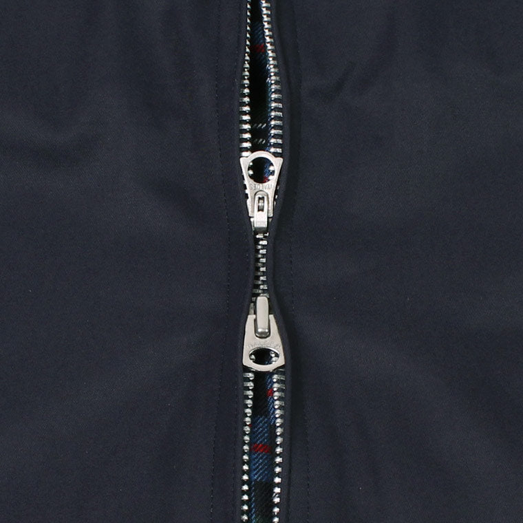 ドッグイヤーカラーやアンブレラヨーク等の王道ディテールはそのままに、クラシックなハリントンジャケットの良さを残した程良く細身のサイズ感に設定。「COLLECTOR'S EDITION」は、70年代頃に一時期だけ生産されていたヴィンテージのハリントンジャケットのディテールを踏襲した特別な仕様。袖のニットリブは編み目の調節で先端が細くなったリブで、フロントジップはWALDES社のピンロックのダブルジップを採用。アンブレラヨークは当時のモデルと同様、通気性を確保する為の穴が開いています。裏地は、ローズタータンチェックを別注して作ったライニング。生地は、DAIWABOがイギリスのVENTILE社のライセンスにより開発したコットン100%の織目の細かい光沢のある80/2 x 60/2 ベンタイルギャバジンです。耐水、撥水性と浸透、通気性を両立したコットン100%超高密度織物を使った最高のブルゾンになります。