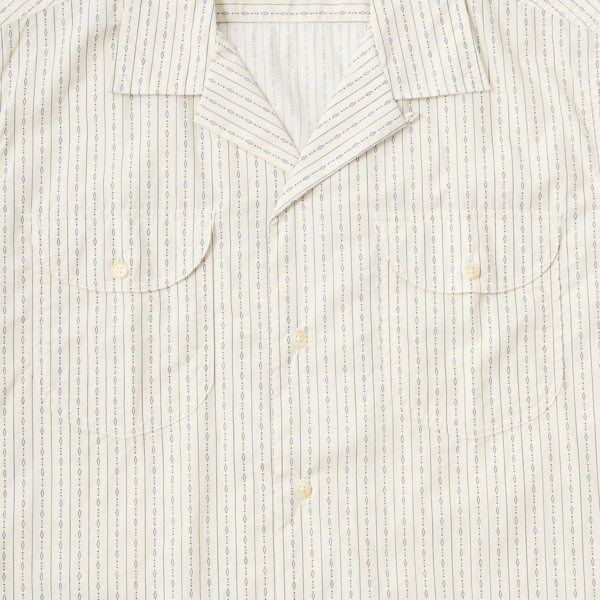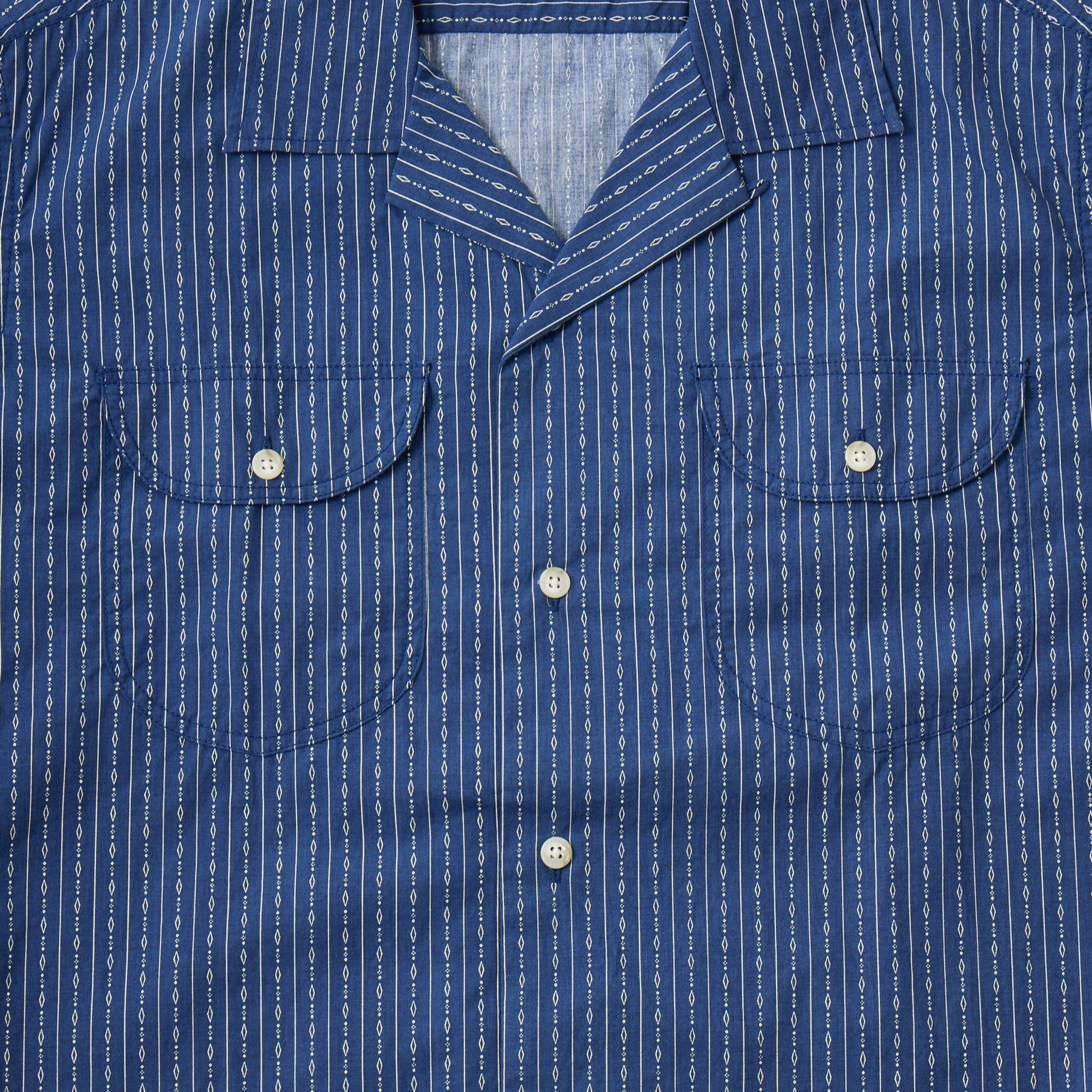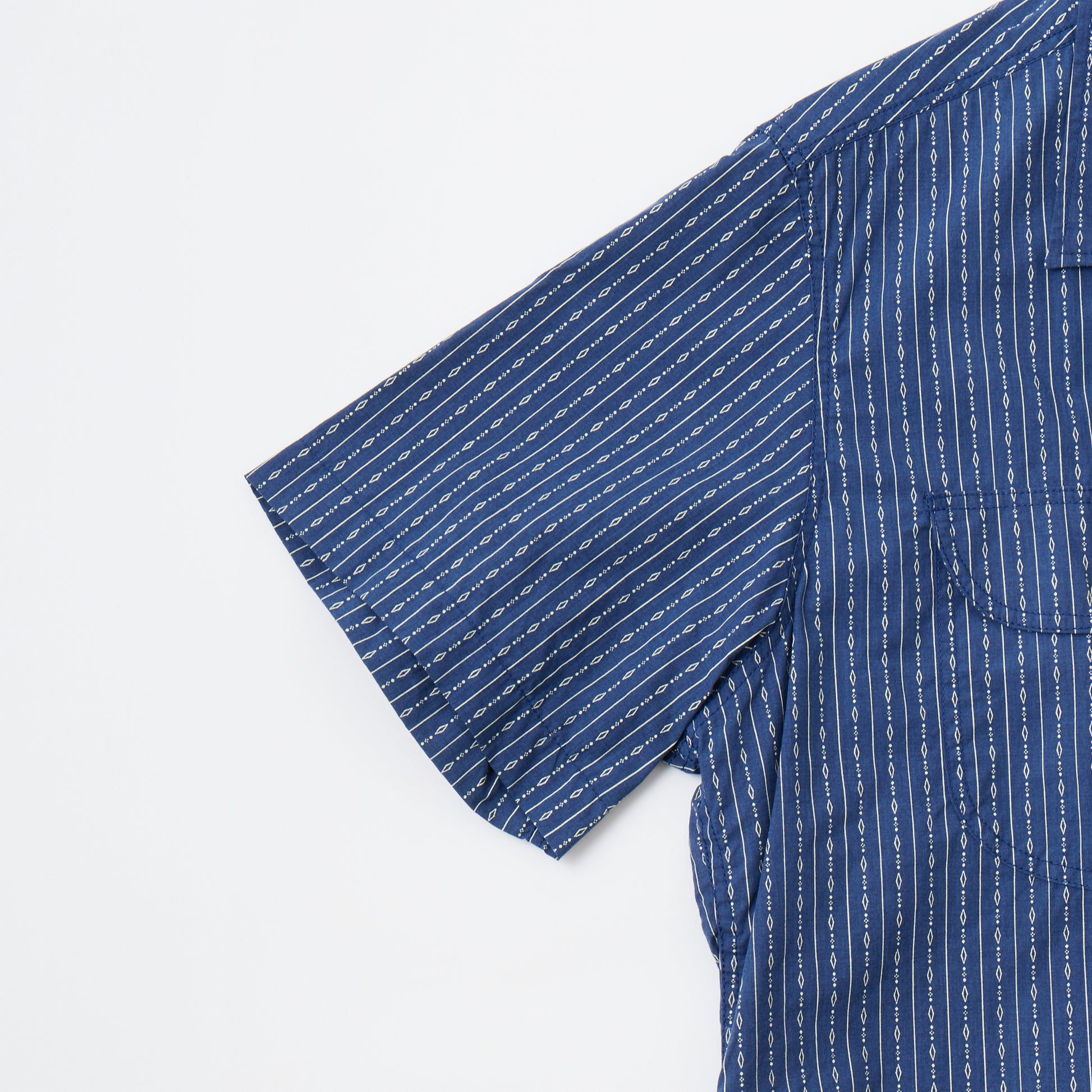 EMPIRE&SONS(エンパイアアンドサンズ)のS/S CAMP SHIRT ORGANIC COTTON。クラシックなプリント柄のオーガニックコットン素材を使用したフルオープ両胸にフラップ付きのパッチポケットが付き、ウエストに絞りの無い、リラックス感のあるボックスシルエットでクラシックシャツのボトムの様な裾を演出している半袖シャツ。キャンプカラーのリラックス感ある襟元がスタイリングに夏らしい軽さを演出してくれる1枚。