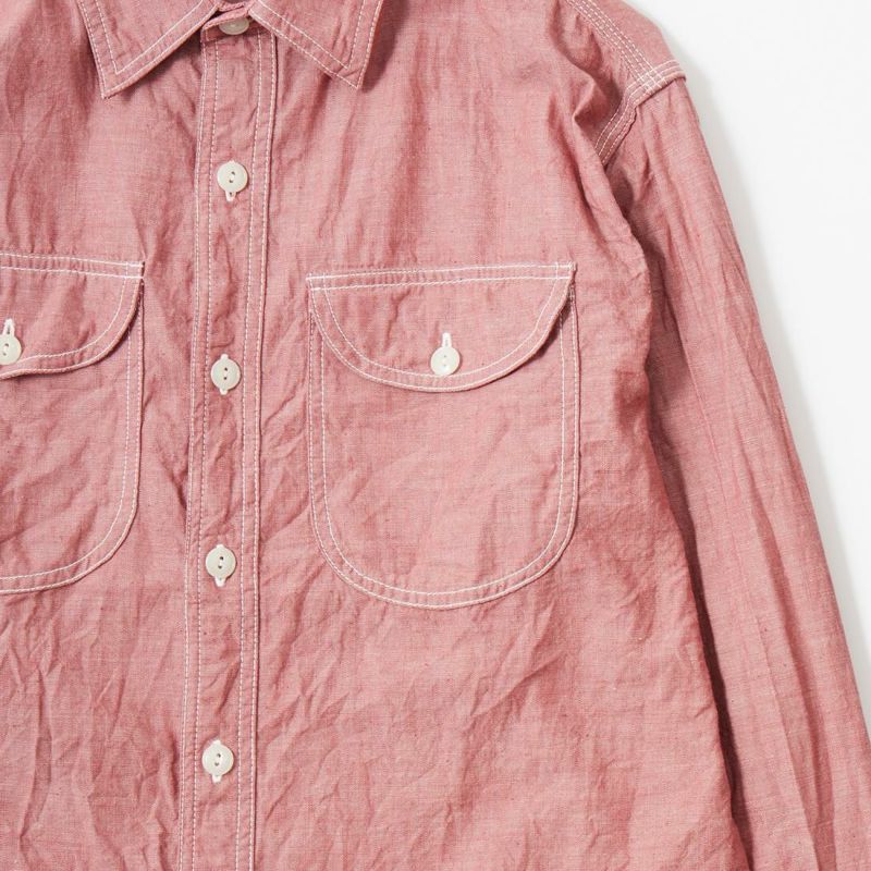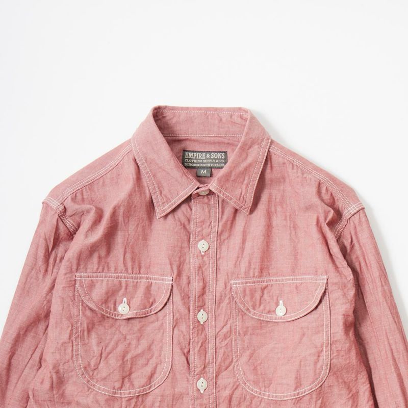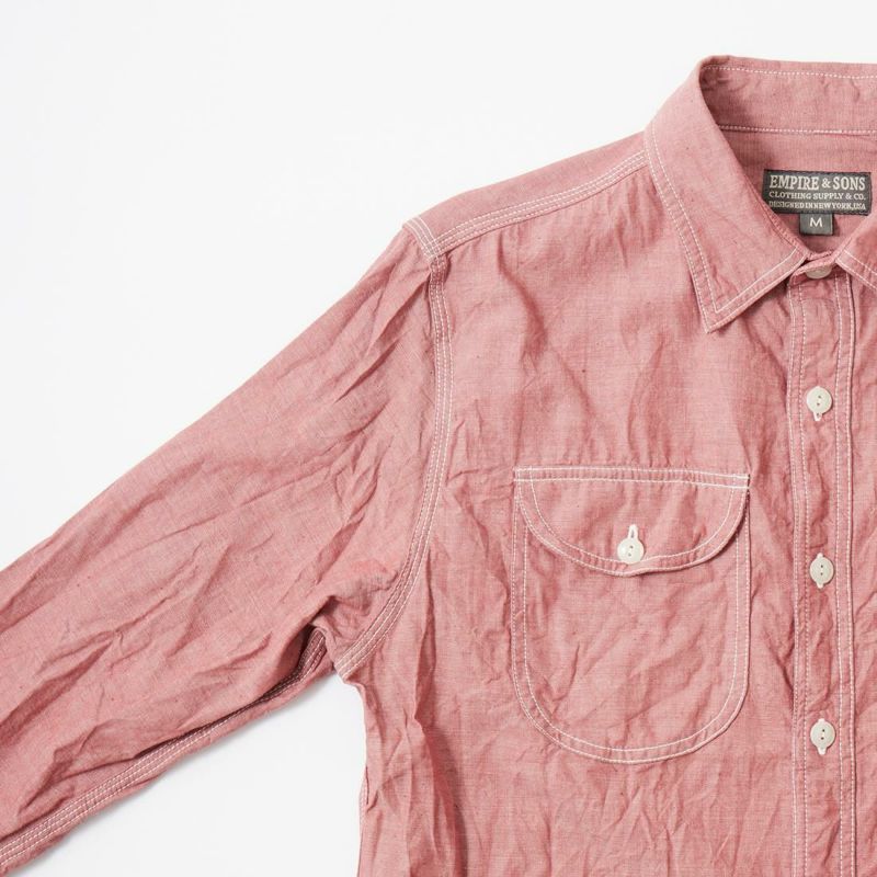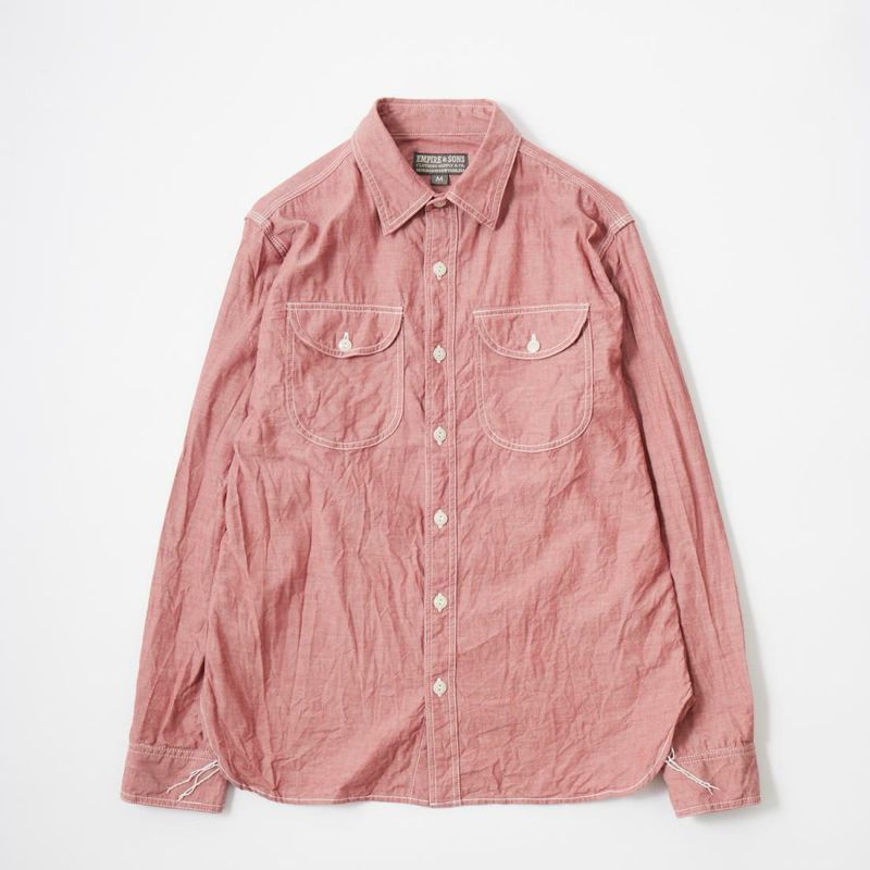 EMPIRE & SONS L/S UTILITY WORK SHIRT 5oz ORGANIC COTTON SELVEGE CHAMBRAY - RED