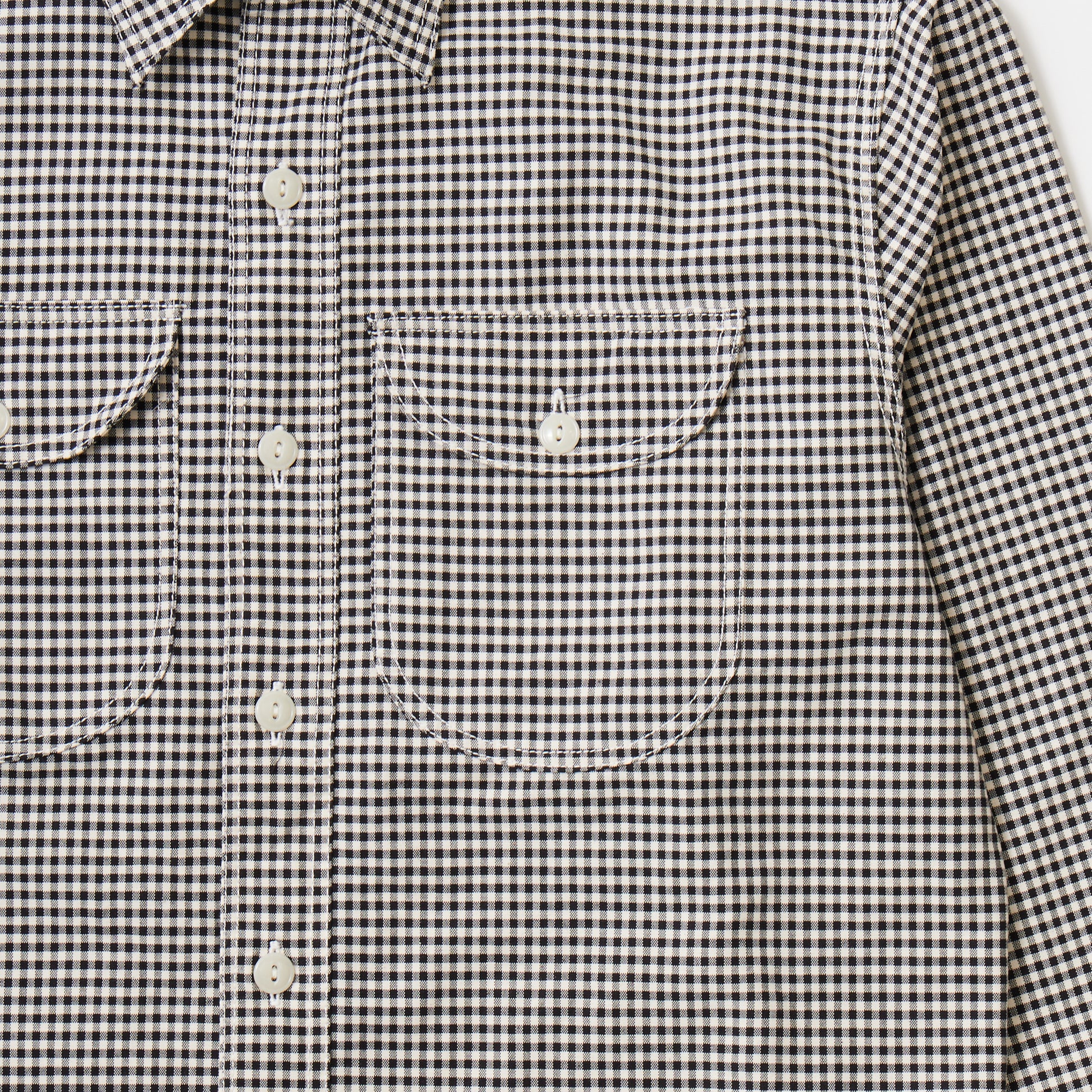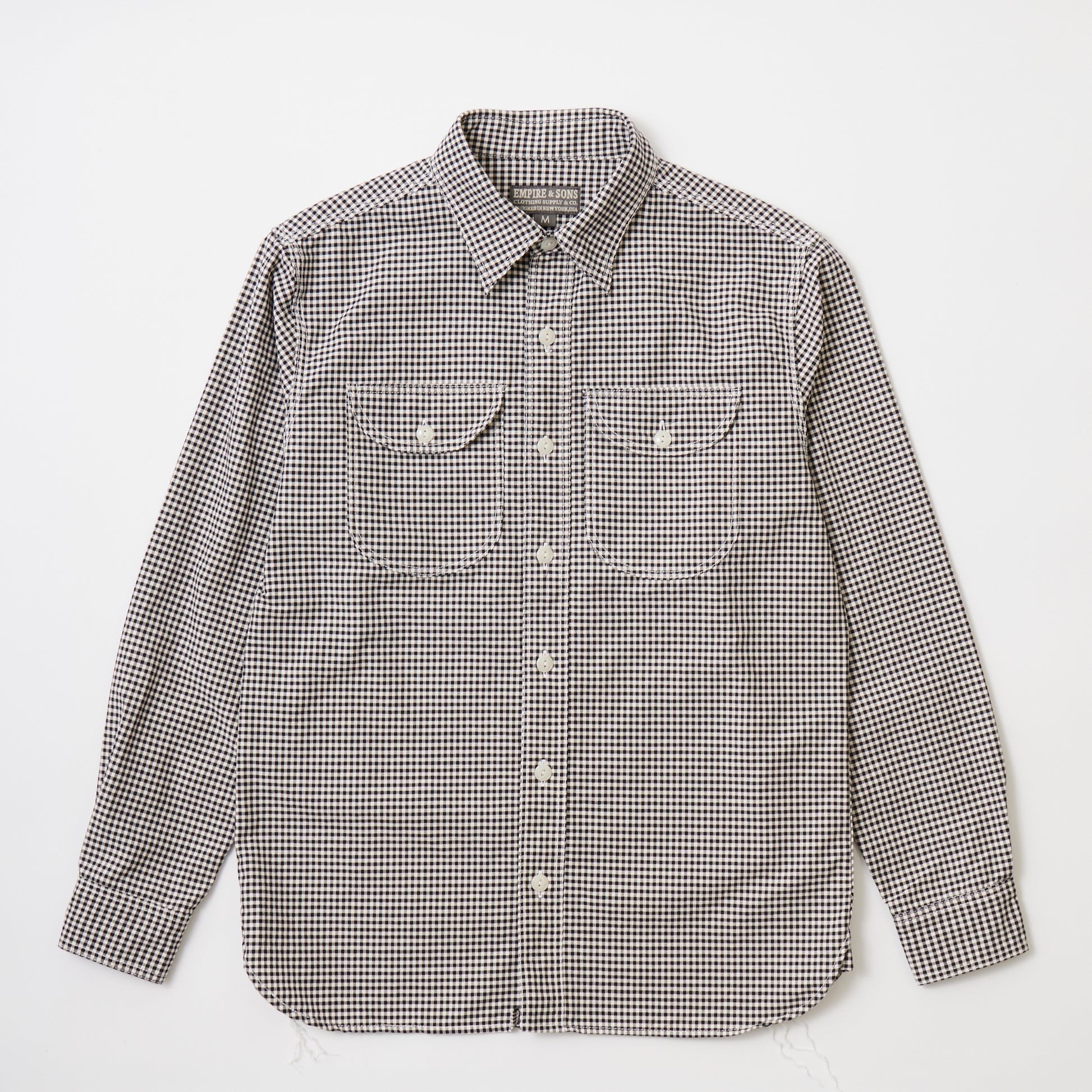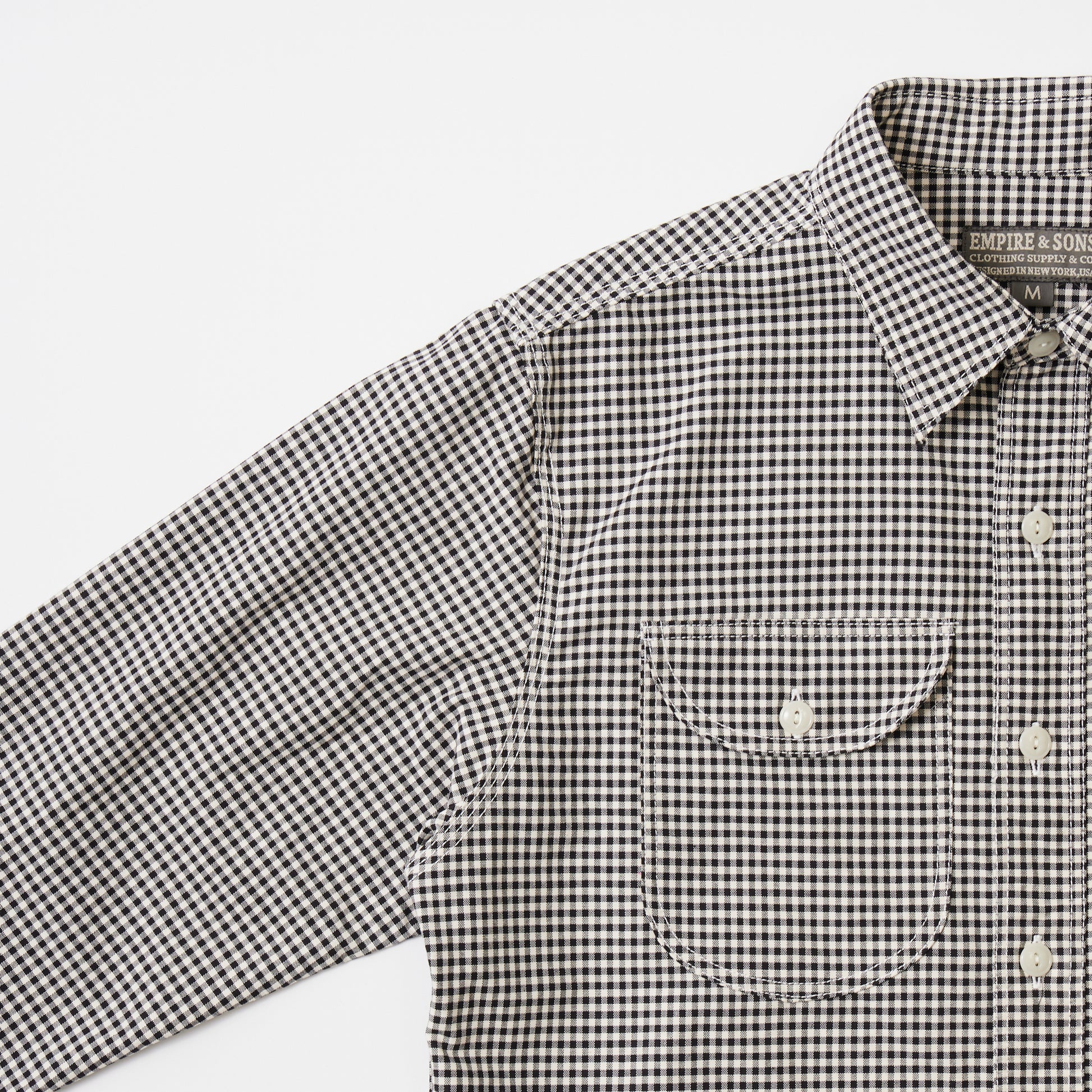EMPIRE & SONS L/S UTILITY WORK SHIRT ORGANIC COTTON OXFORD CANVAS - 11 WHITE GINGHAM CHECK