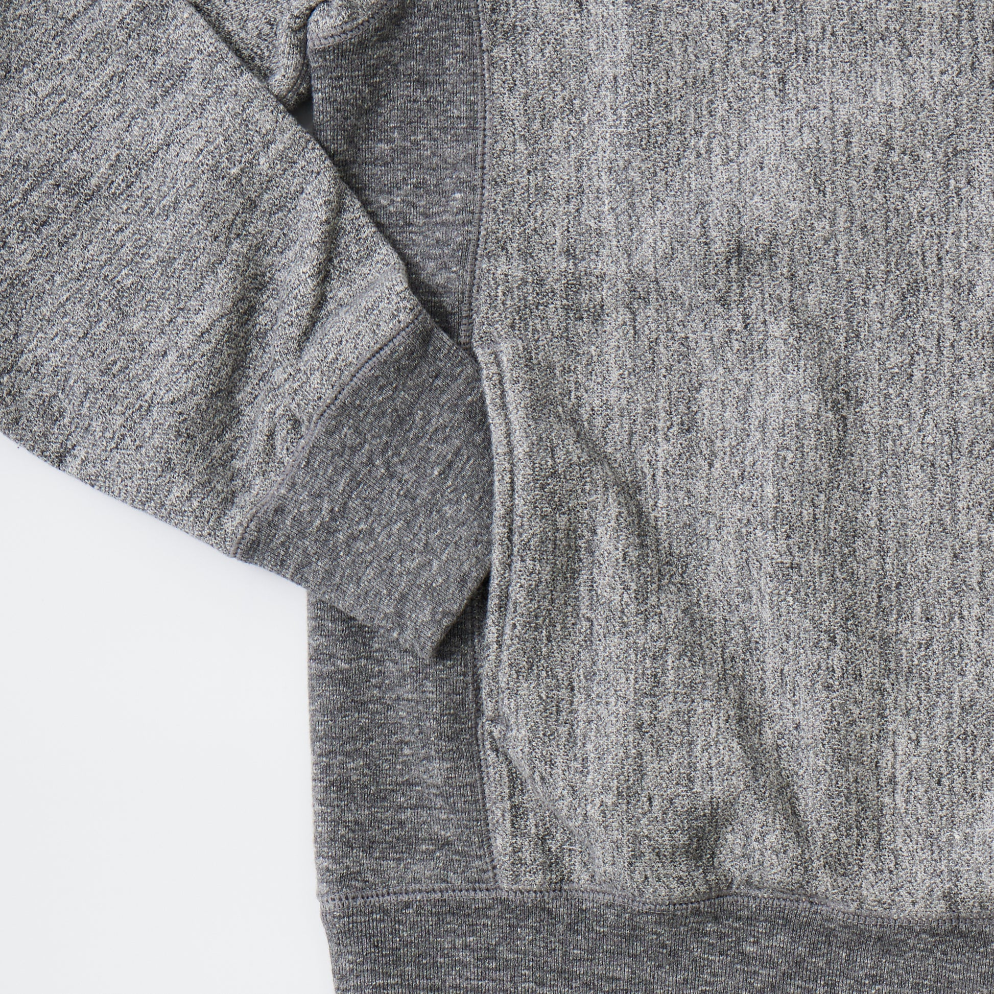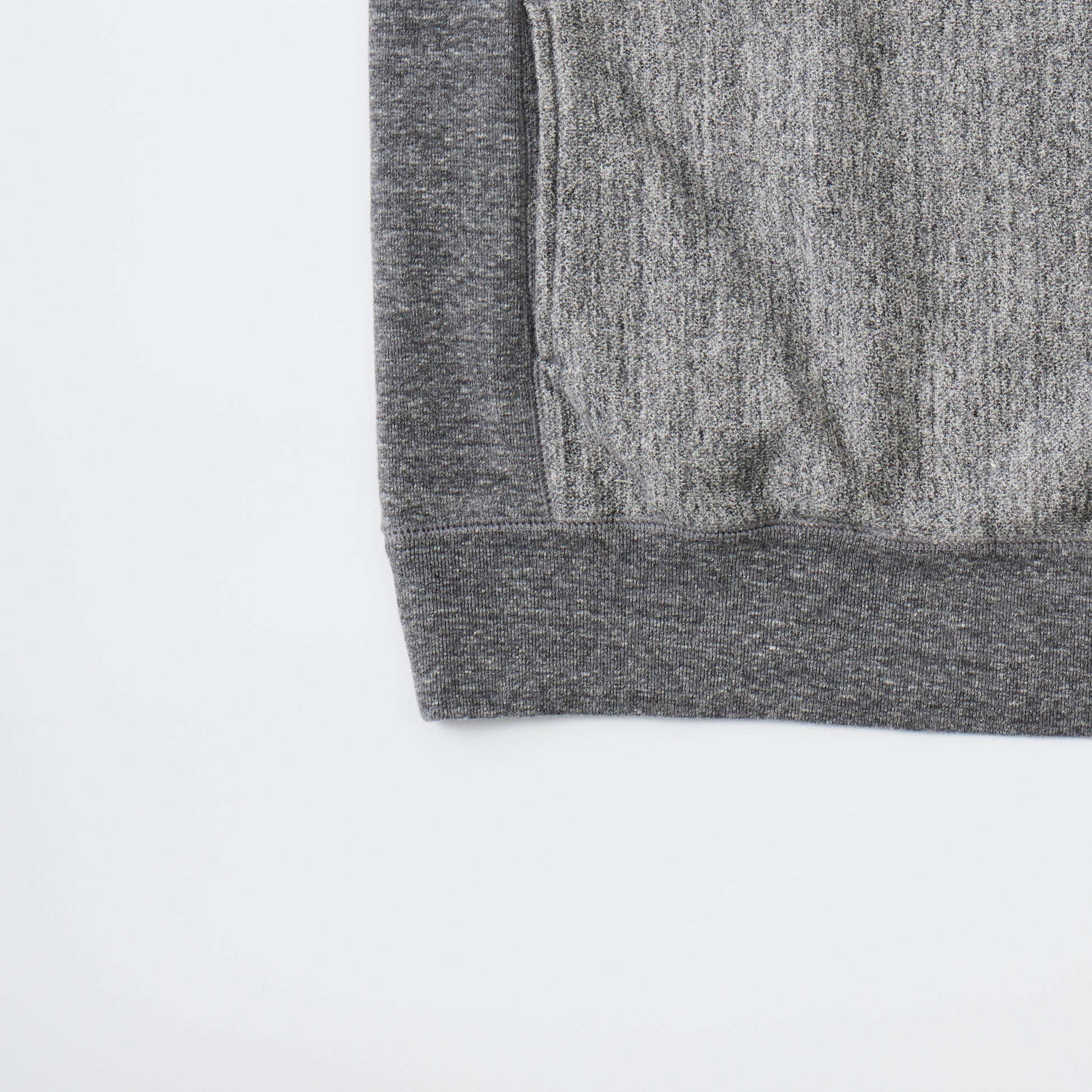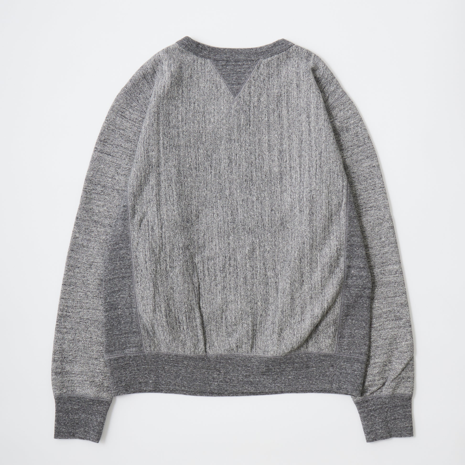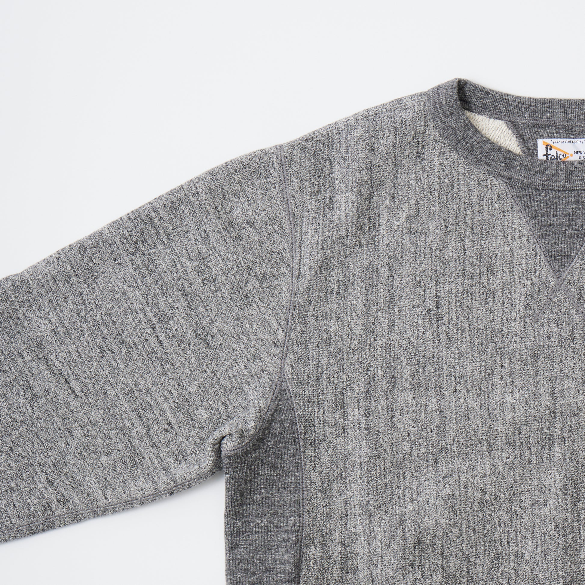 FELCO(フェルコ)の16oz TERRY CLASSIC FIT INVERSE WEAVE DOUBLE V GUSSET SET IN CREW SWEAT W/SLASH POCKET。独自で開発した16オンスの厚みとコシのある生地を使用した両Vガゼットクルーネックスウェット。生地を横向きに使用することで縦縮みを軽減し、サイドリブが横縮み防止と動きやすさを実現しています。ガシガシ着倒してもへこたれないタフな1着。袖と裾のリブはやや長めに設定されたヴィンテージを彷彿させる完成度。やや下辺りにハンドウォーマーポケットが付いているのも手を入れ易い仕様。従来のモデルよりも全体的にゆとりを持たせたクラシックフィット。ストレスのない着用感のスウェットで、クラッシックフィットモデルのコーチジャケットにも対応可能な1着。