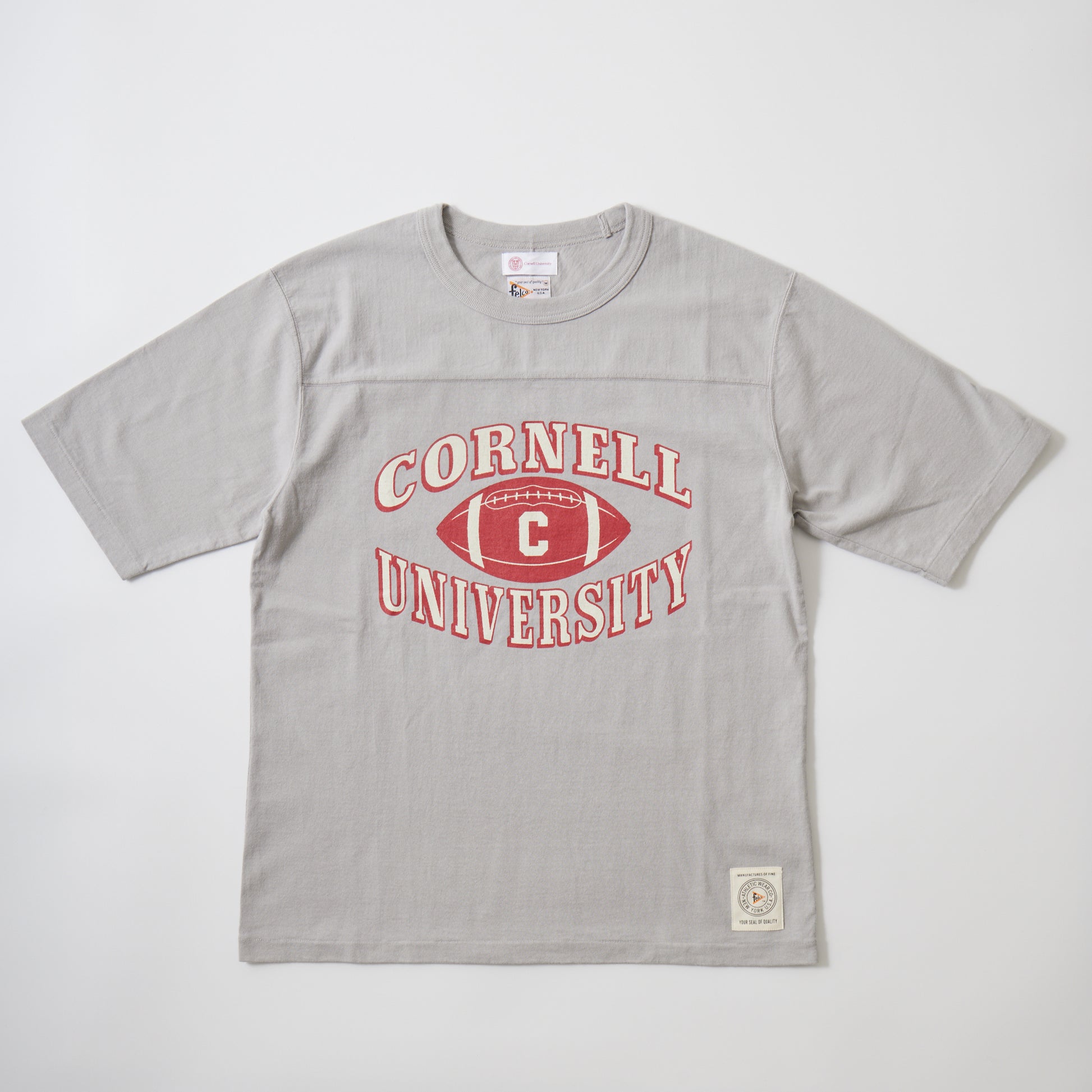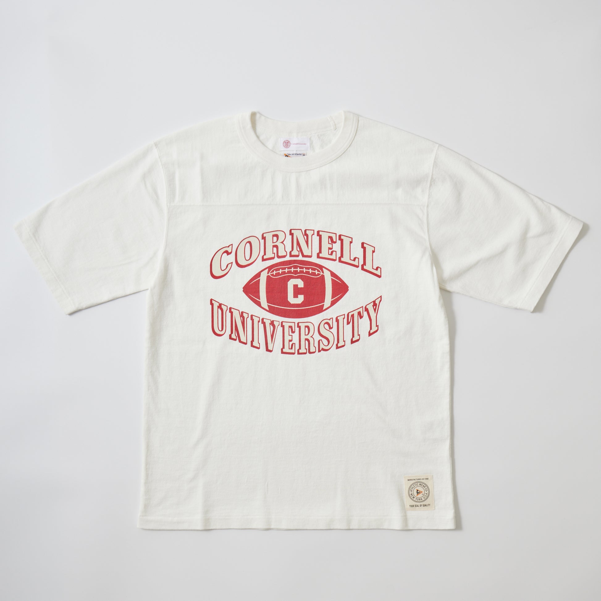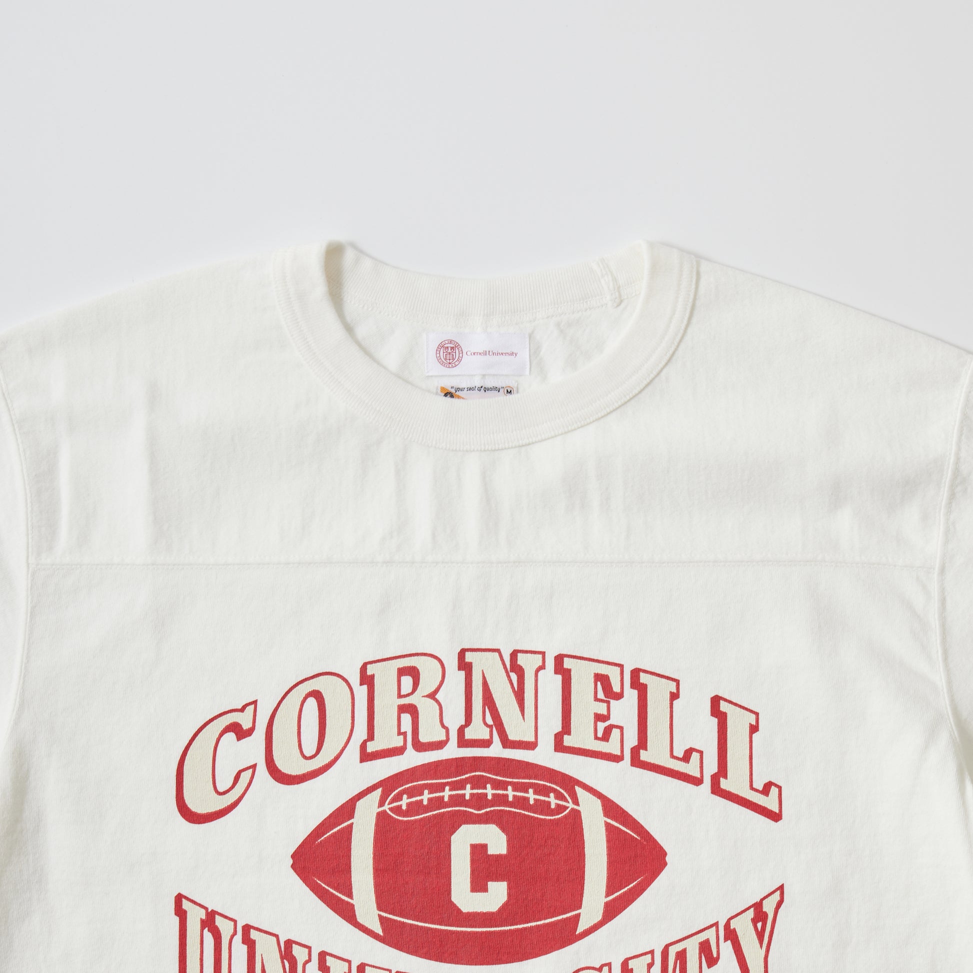 FELCO(フェルコ)SS2024のH/S SLEEVE FOOTBALL TEE - CORNELL UNIVERSITY FOOTBALL PRINT。ヘビーウェイト16'Single ラフィー天竺を使用した5分袖のフットボールTEEにコーネル大学とのライセンス契約をしてPRINTした渾身の1枚。言わずと知れたアイビーリーグと言えば8チームからなるアメリカ北東部に位置するカンファレンスに属するコーネル大学のフットボールチームのプリントです。