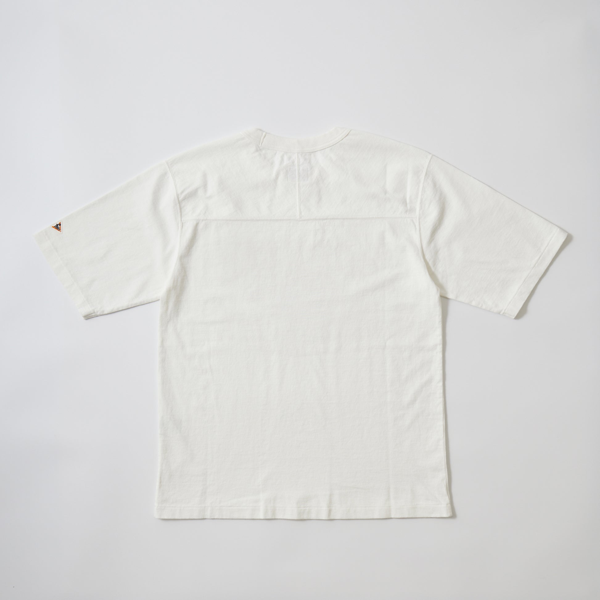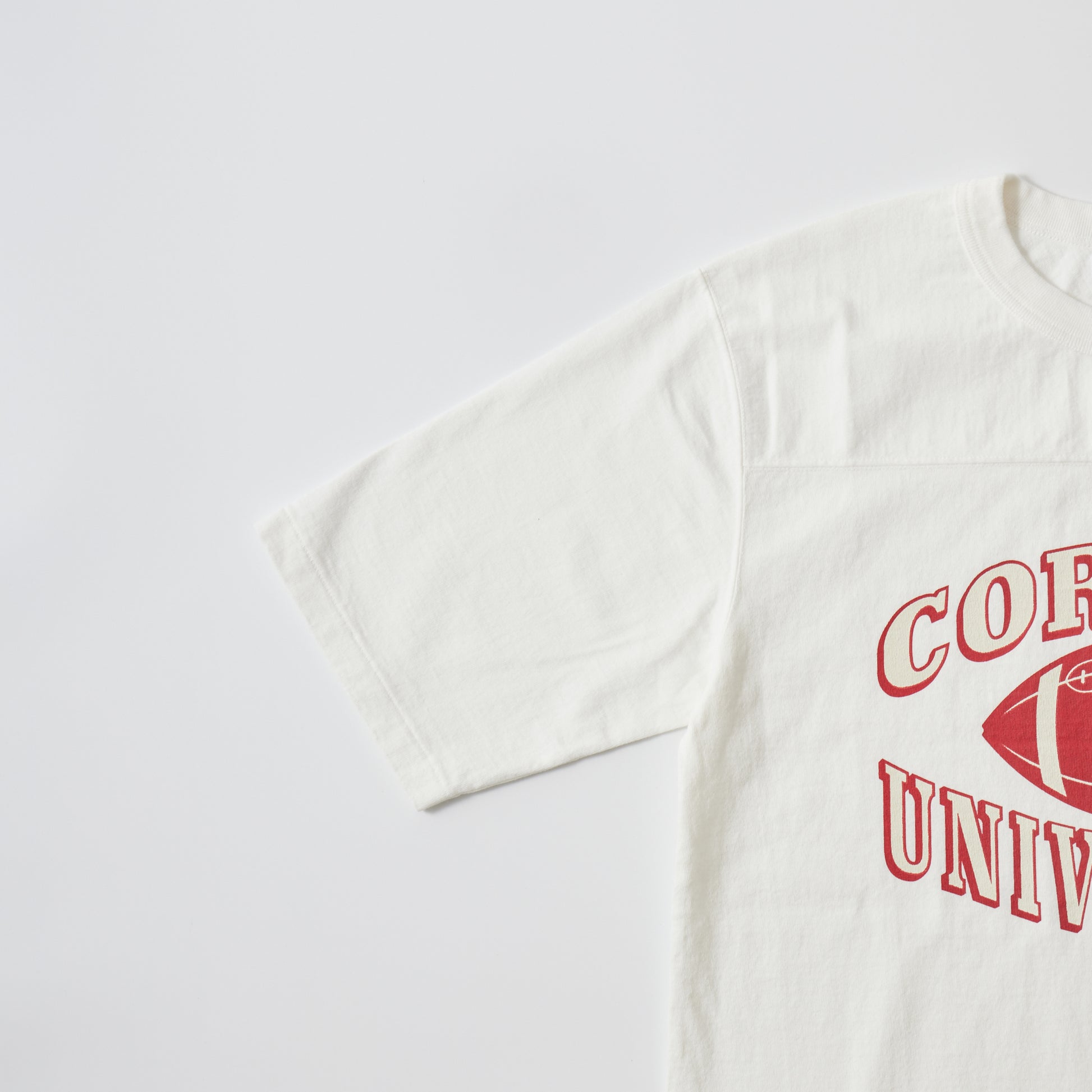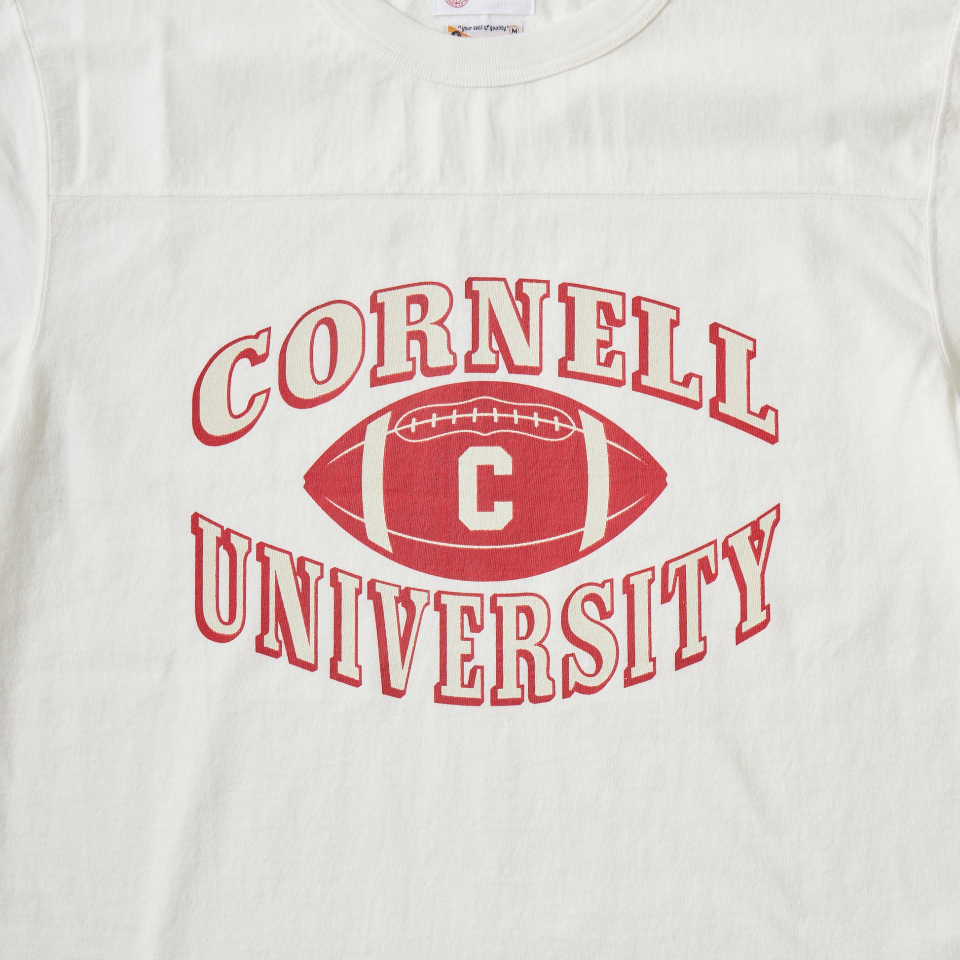 FELCO(フェルコ)SS2024のH/S SLEEVE FOOTBALL TEE - CORNELL UNIVERSITY FOOTBALL PRINT。ヘビーウェイト16'Single ラフィー天竺を使用した5分袖のフットボールTEEにコーネル大学とのライセンス契約をしてPRINTした渾身の1枚。言わずと知れたアイビーリーグと言えば8チームからなるアメリカ北東部に位置するカンファレンスに属するコーネル大学のフットボールチームのプリントです。