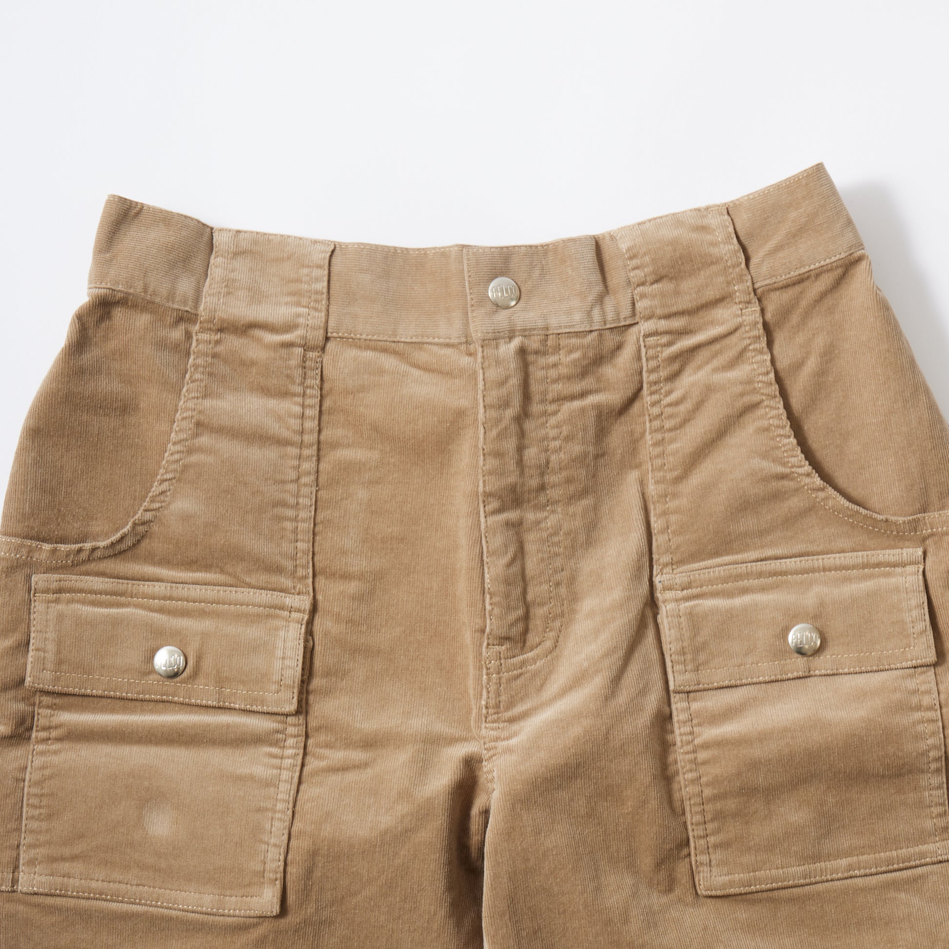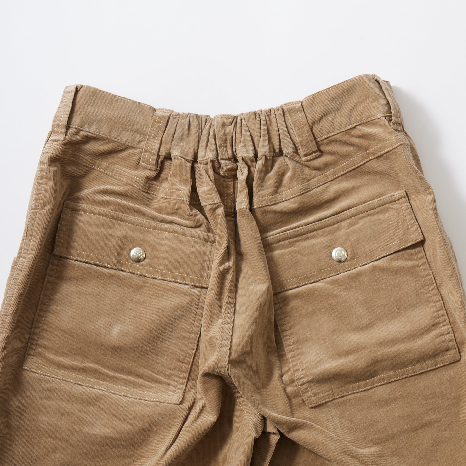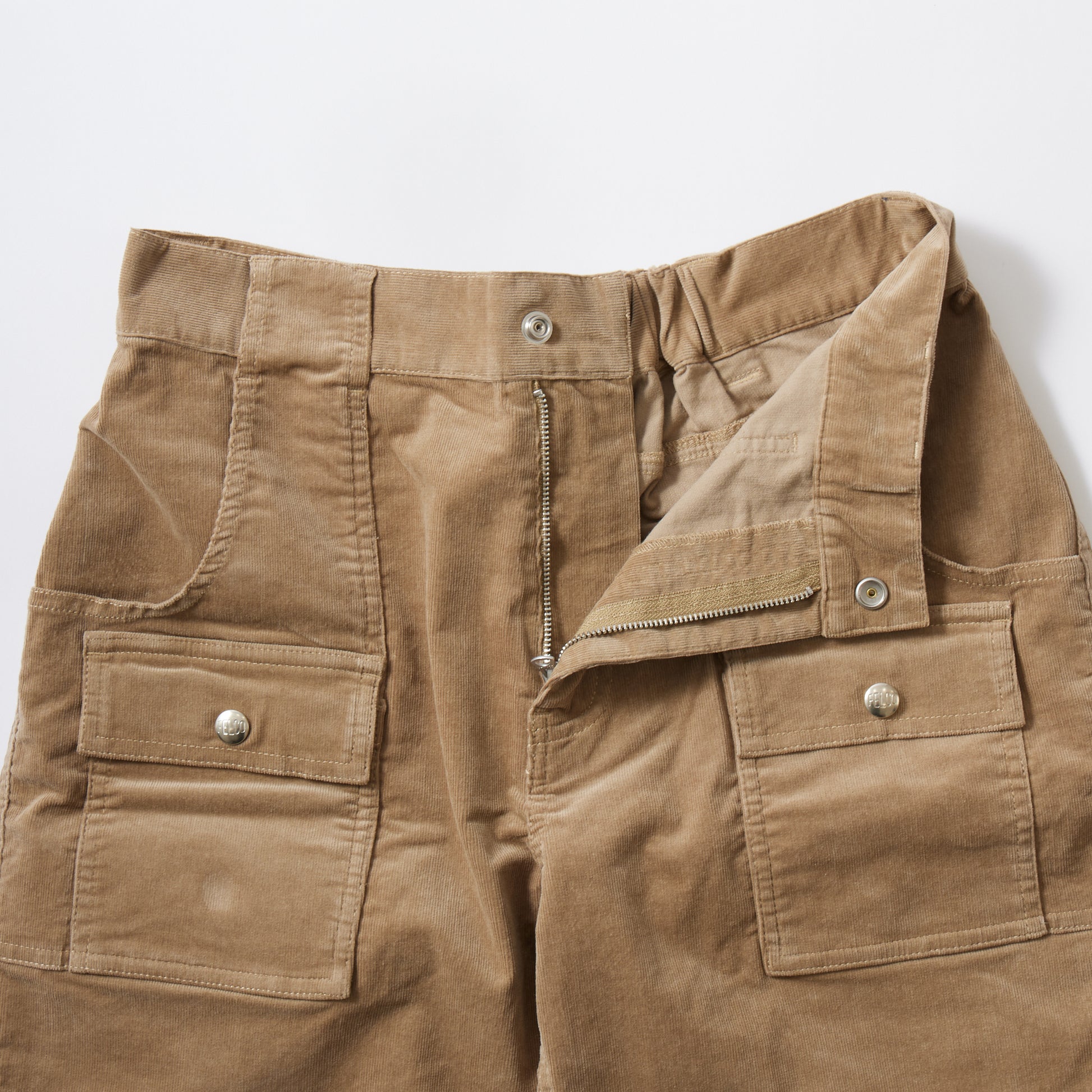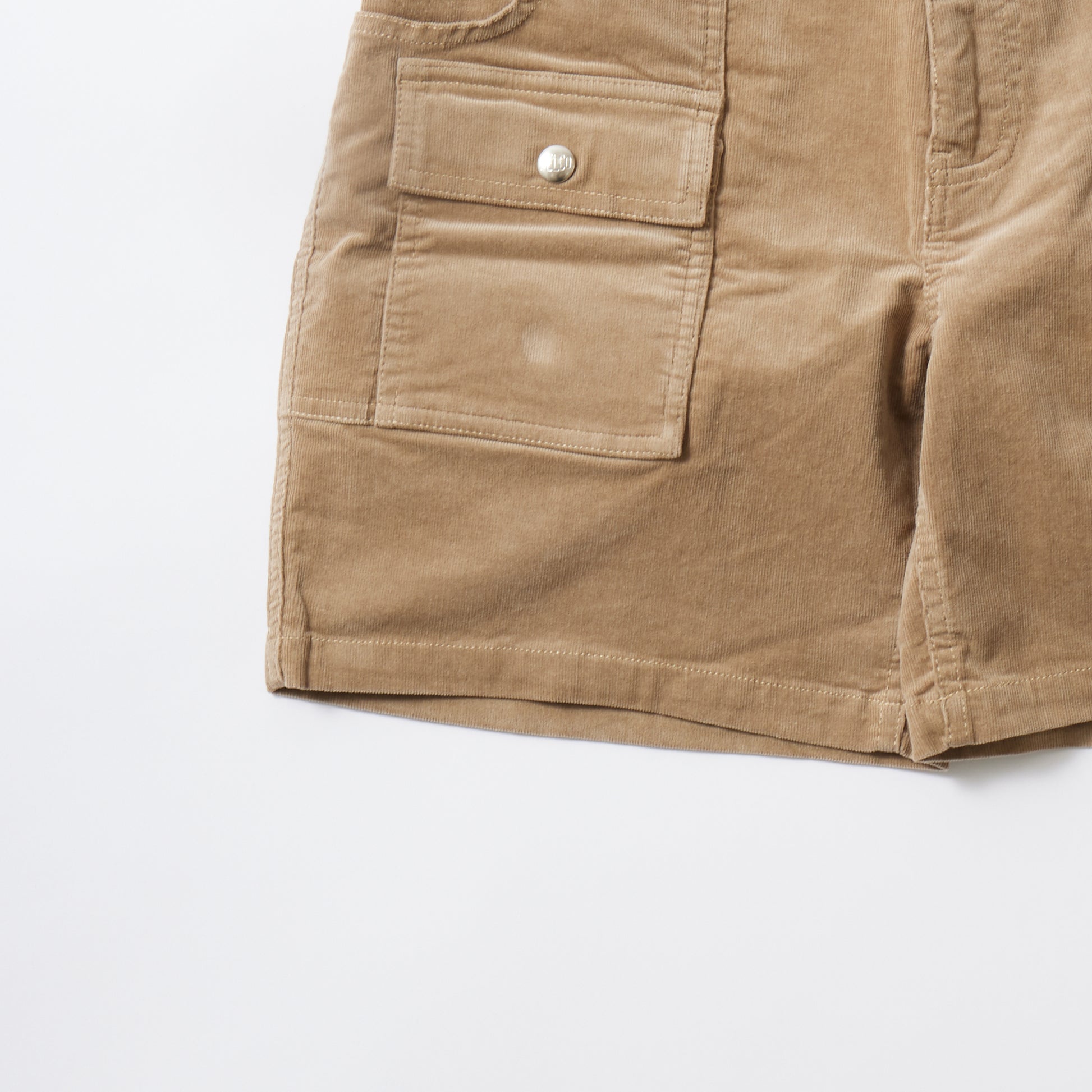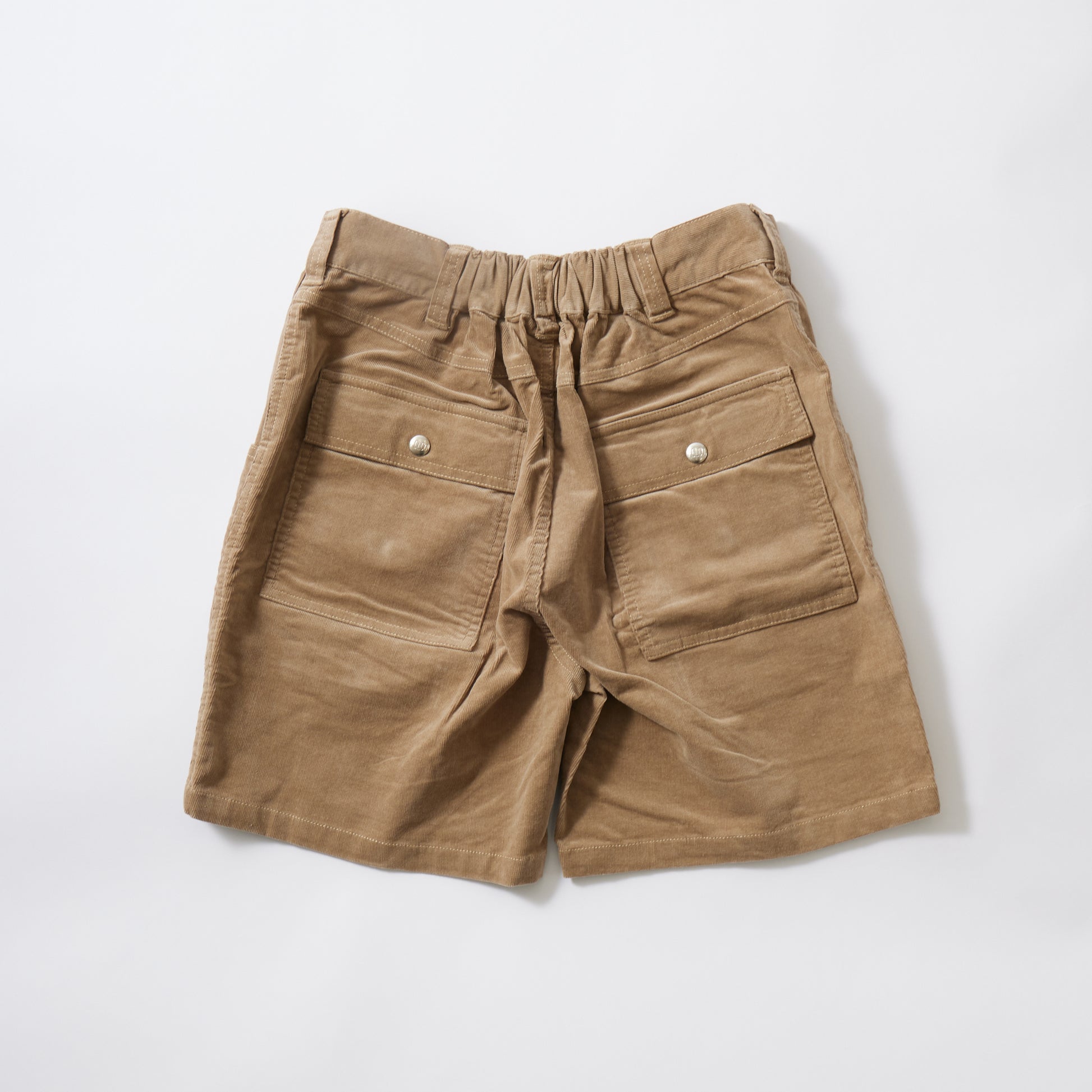 クラシックサーフをテーマに掲げるコレクションラインからのリリース。細かい畝のストレッチコーデュロイを使用した、膝上丈のショーツ。70'sのオールドサーフスタイルをベースに、ブッシュパンツをモチーフにしたデザイン。フロントのポケットは、ポケットの上に更にポケットが付いたブッシュショーツらしいデザインで、バックはスナップボタン付きのフラップポケットが二つ付いています。横方向の伸縮性が高いストレッチコーデュロイを採用しており、ウエスト部分もゴムの仕様になっている為、非常に楽な履き心地でストレスフリーに穿いて頂けます。毎夏のスタイルのアクセントになってくれるショーツの1枚です。