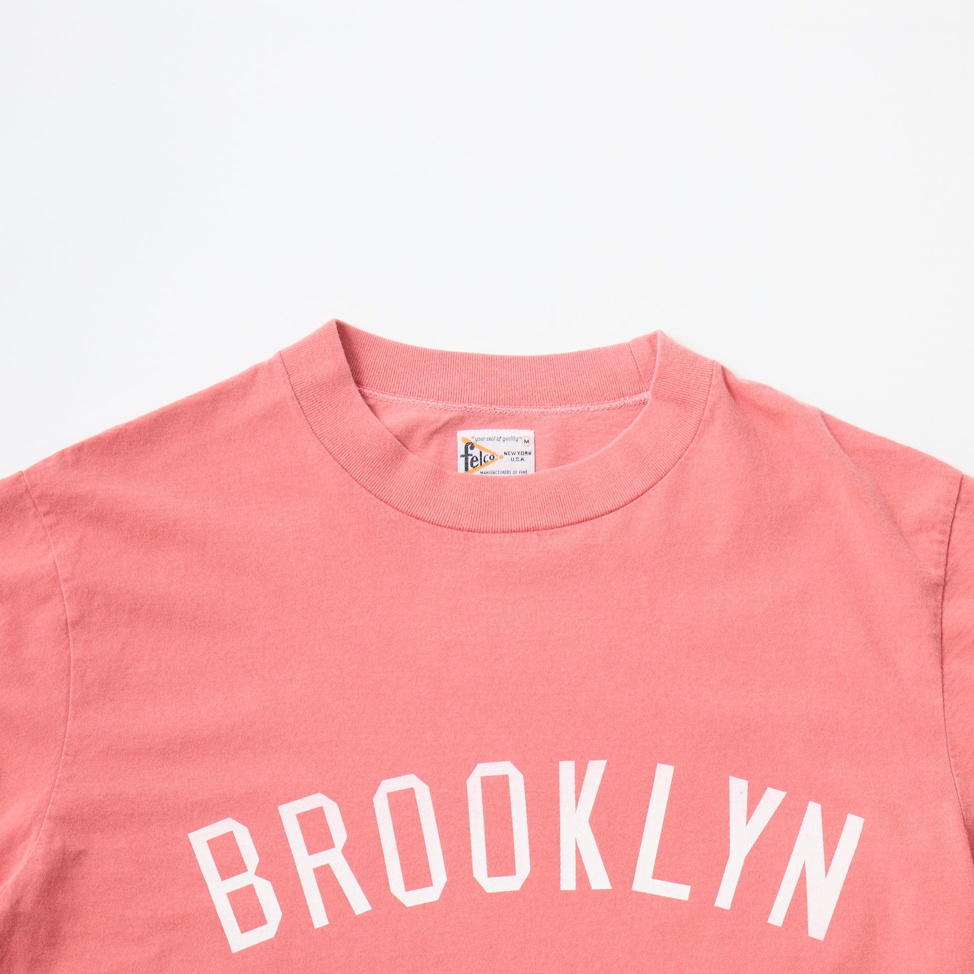 FELCO(フェルコ)の S/S HI-CREW 5oz 30SINGLE CALIFORNIA JERSEY – BROOKLYN ROYAL GIANTS PRINT1。60年代のアメリカを彷彿とさせるハイクルーの首元、素材はカリフォルニア綿の30番手の細い糸を使用し、人気のガッシリとしたTシャツと逆向した肌触りの柔らかい仕上がりに、アメリカンビンテージ漂うプリントを施しています。