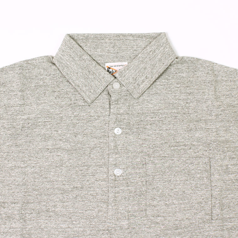 FELCO(フェルコ)のS/S POLO SHIRT W/3CAT EYE BUTTON 7oz 18SINGLE JERSEY。シンプルなデザインで幅広い着こなしに対応してくれるセットインスリーブのポロシャツ。前立ては3ボタン仕様でキャッツアイ(猫目)ボタンを使用。左胸にはFELCO(フェルコ)のアイコン的なデザインんとなっているパッチポケットを配置。ボトムにはサイドスリットが採用されておりストレスのない動きやすいポロシャツ。7オンスのタフな生地で、着倒しても型崩れしにくくへこたれない、デイリーに着用して頂ける1着。
