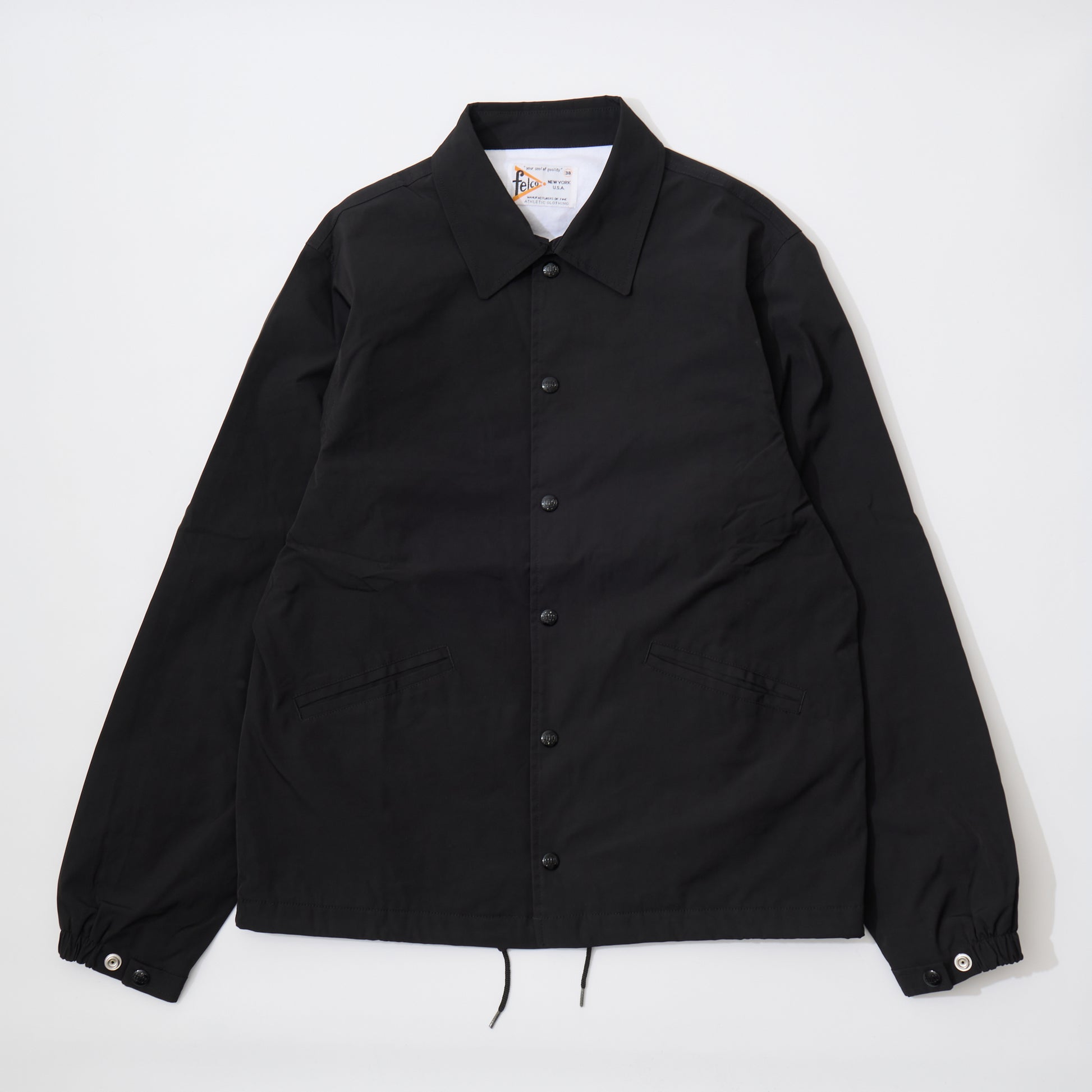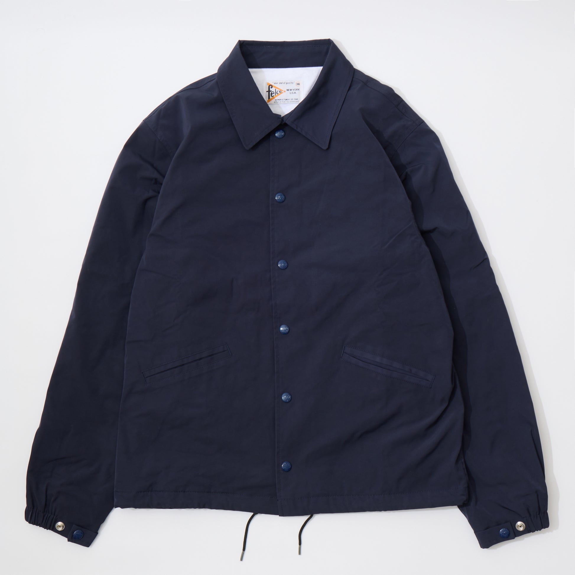 FELCO(フェルコ)のSET IN SLEEVE COACH JACKET SNAP BUTTON FRONT W/FLANNEL LINING CLASSIC FIT。撥水性を持つウォータープルーフナイロンを使用したスナップフロントのコーチジャケット。襟は大きめで風防のチンストラップが付属。ポケットはフロントに2つと、内ポケット2つ、そして背面右側にはデザインとしてもポイントになるポケットを配置。裏地にはコットンフランネルのライニングが付き、袖口はスナップでサイズ調整が可能なゴム仕様。こちらは従来のモデルよりも全体的にゆとりを持たせたクラシックフィット。ストレスのない着用感で重ね着もし易いコーチジャケットに仕上がっています。