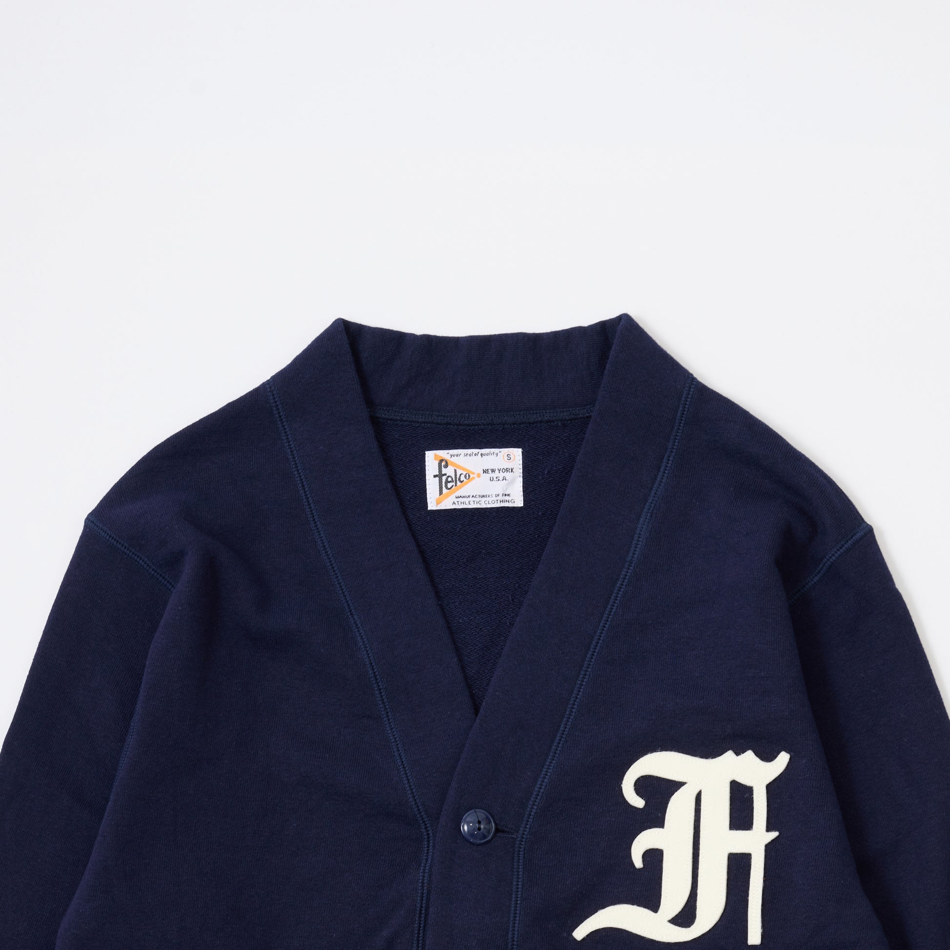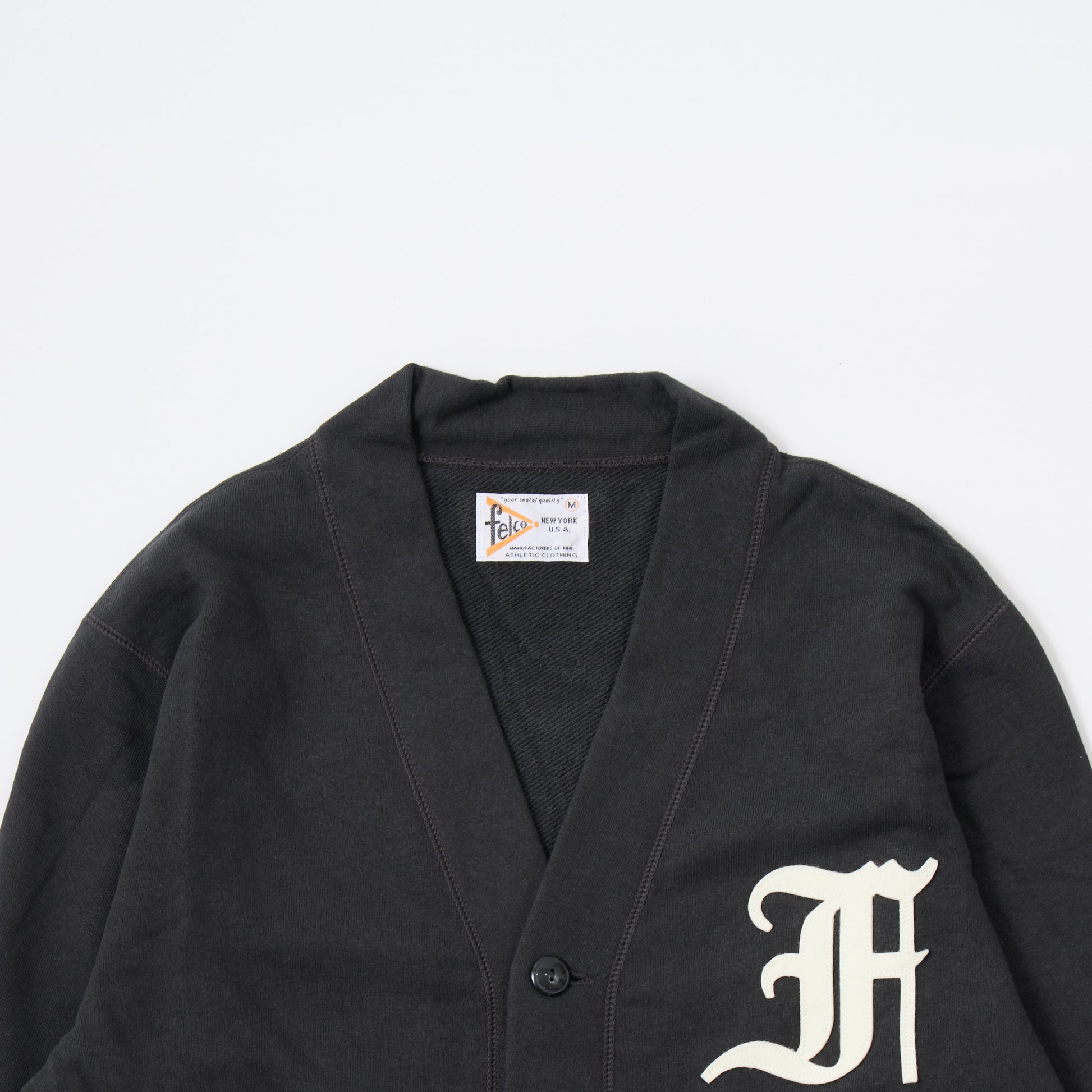 FELCO 12oz TERRY V-NECK LETTERED CARDIGAN - OLD F FONT FELT WAPPEN - 5 COLORS - FELC-371