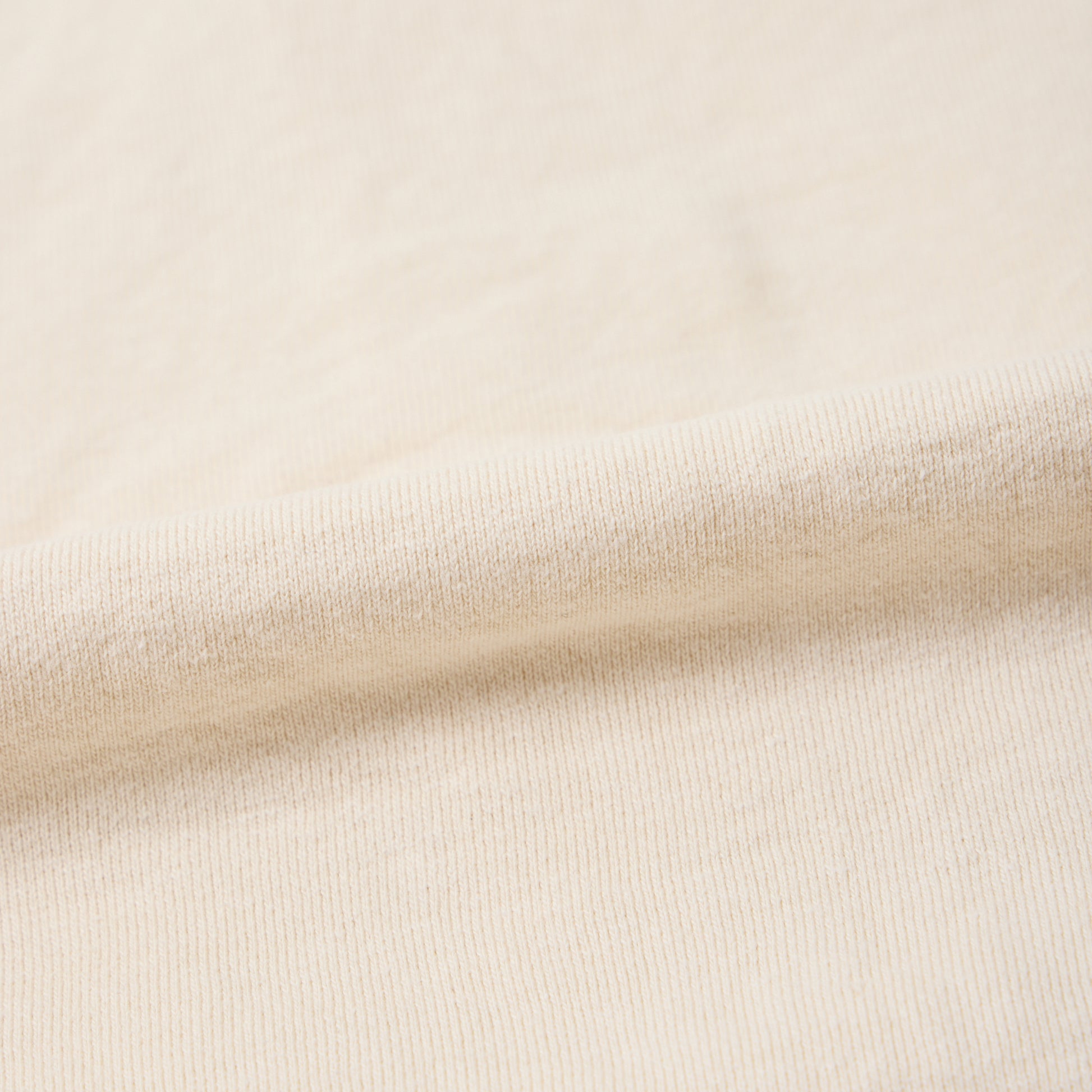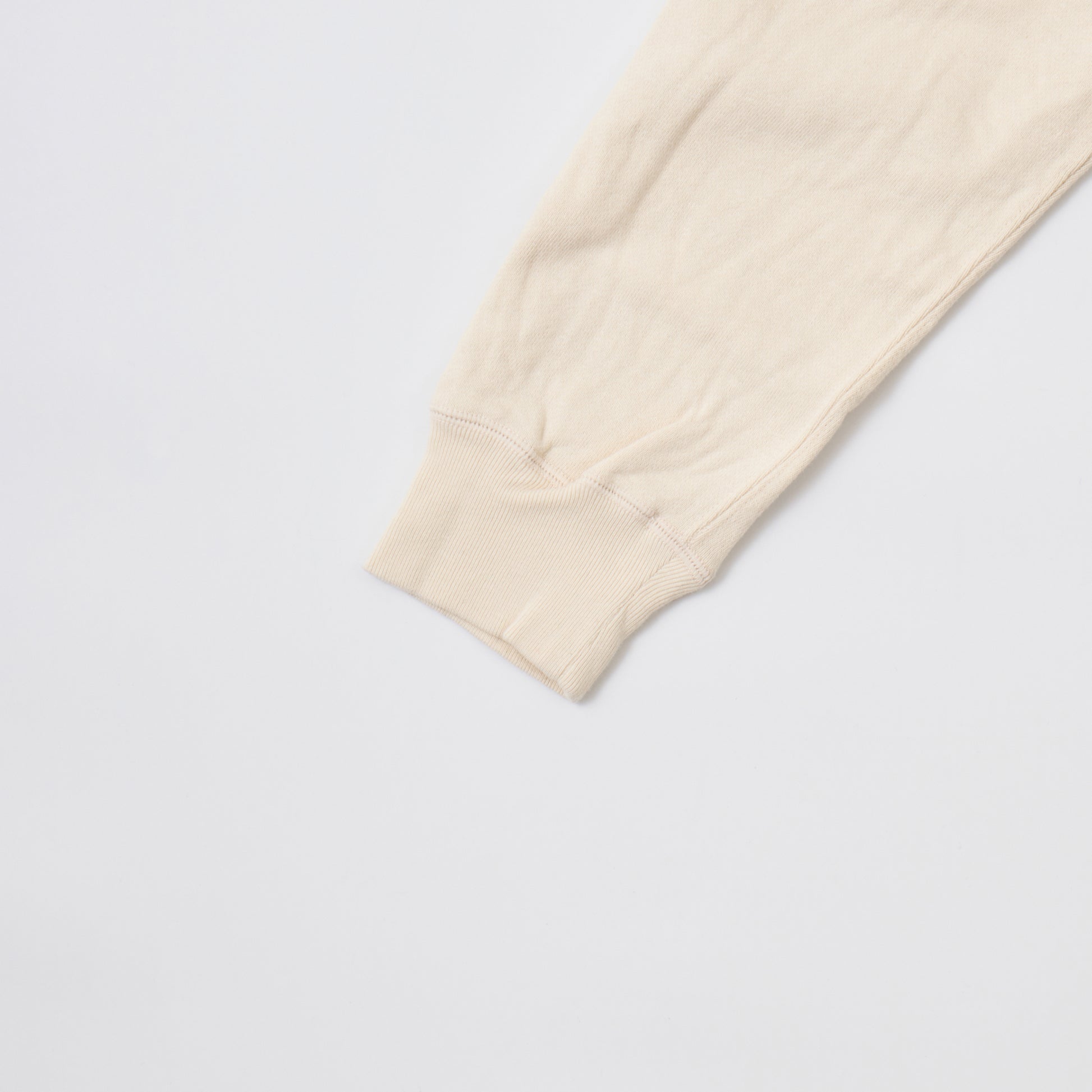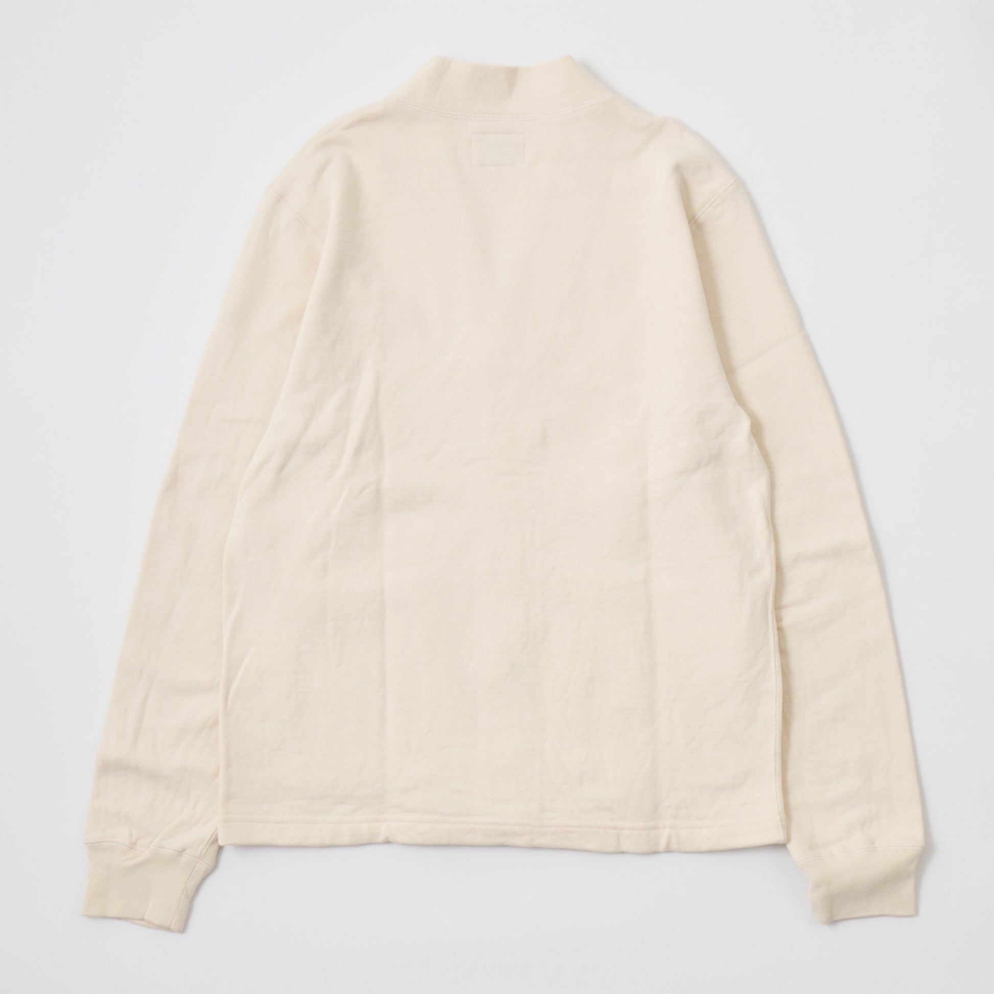 独自で開発した程よい厚みとコシのあるライトウェイトのフレンチテリー(裏起毛していないスウェット生地)素材を使用した Vネックレタードカーディガン。Vゾーンをやや狭めにしてボタンに拘り5 ボタンを装着した1枚。通常はウールニットで作られていますが、フレンチテリースウェットで作られている為、秋口から春先まで着れる汎用性の高いアイテムになります。