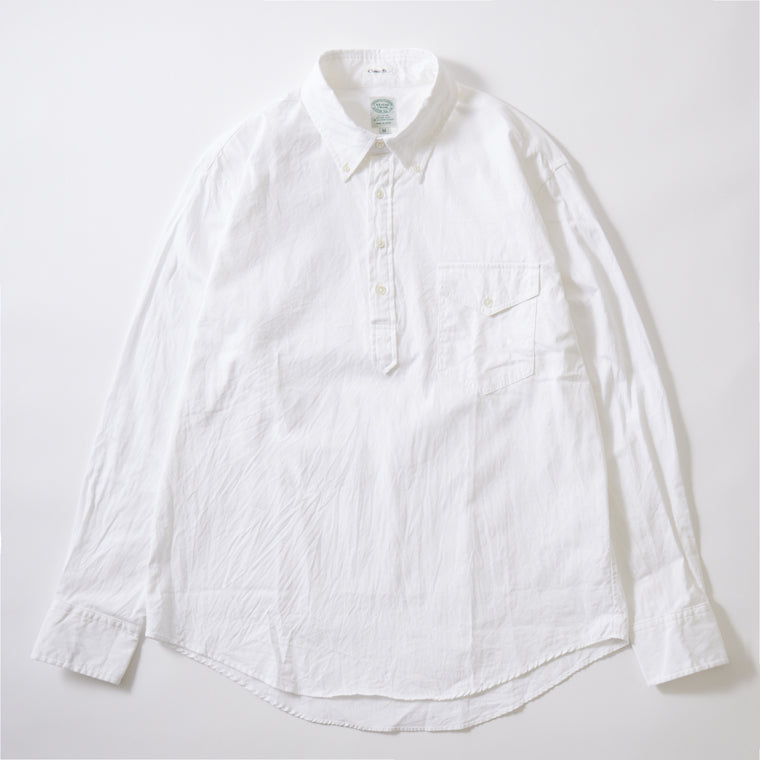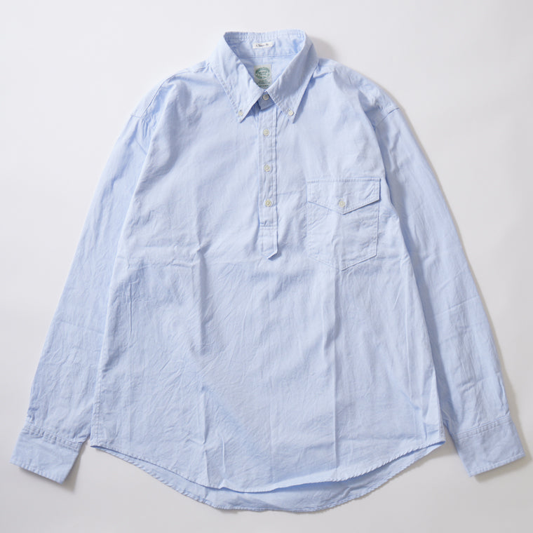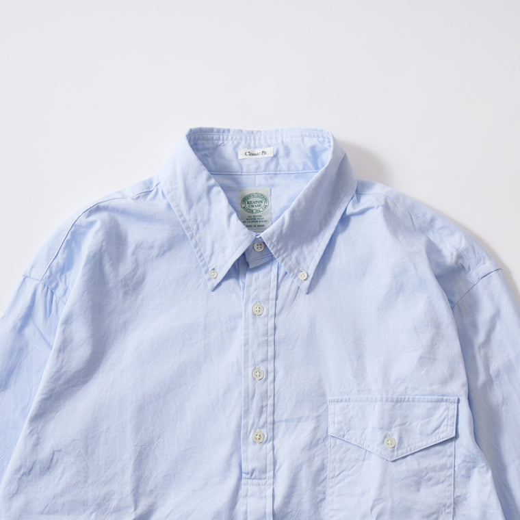 KEATON CHASE USA(キートンチェイスUSA)のL/S MODIFIED CLASSIC FIT PULLOVER BD SHIRT PINPOINT OXFORD。日本生産ラインの改良を加えたプルオーバーの長袖ボタンダウンシャツ。サラッとしたライトウェイトのピンポイントオックスフォードの生地を使用。左胸にフラップポケットが配置され、背面はボックスプリーツ仕様。シルエットは全体的に程よいゆとり感を持ったクラシックフィットで特に首回りにゆとりを持たせた作りになっているのが特徴の1枚。