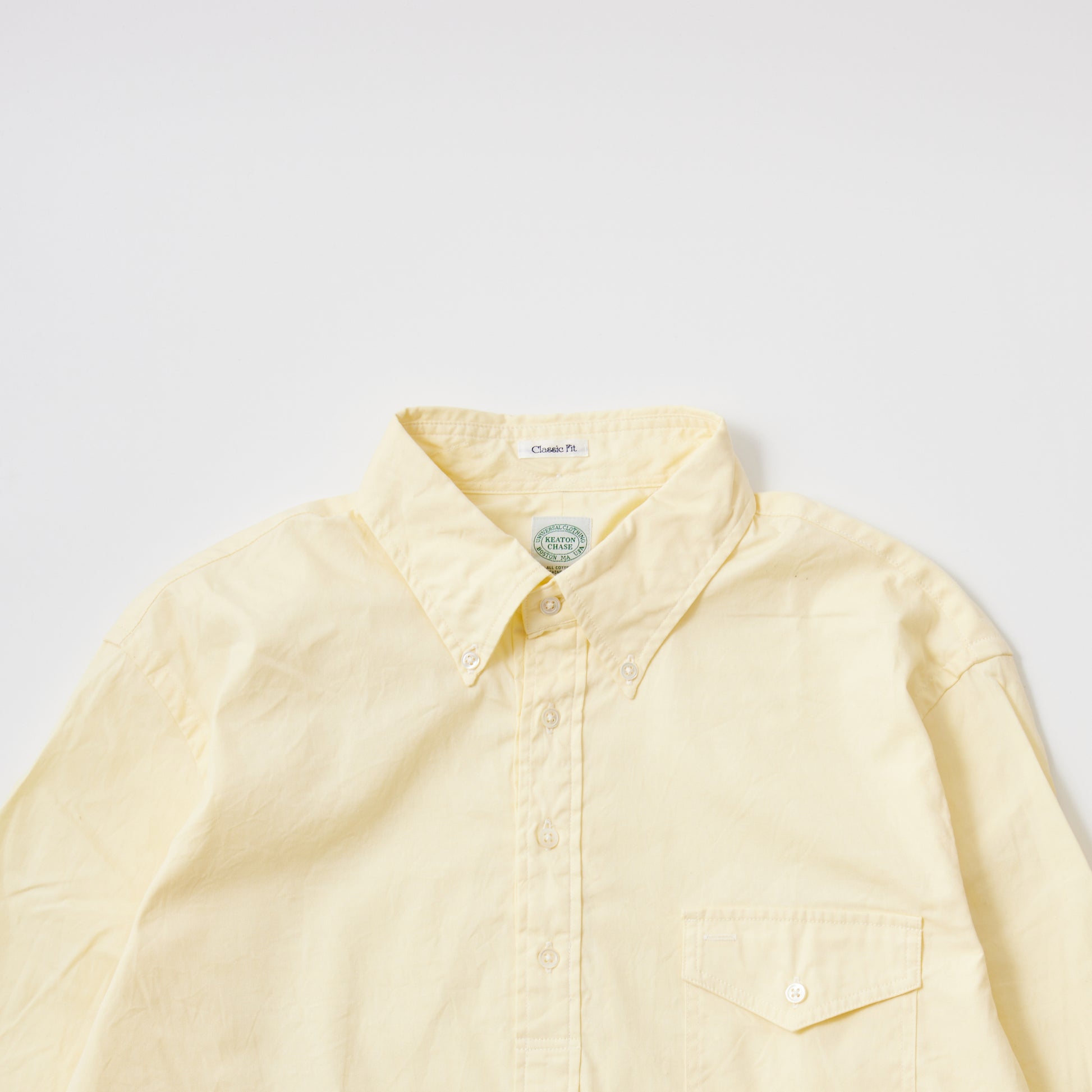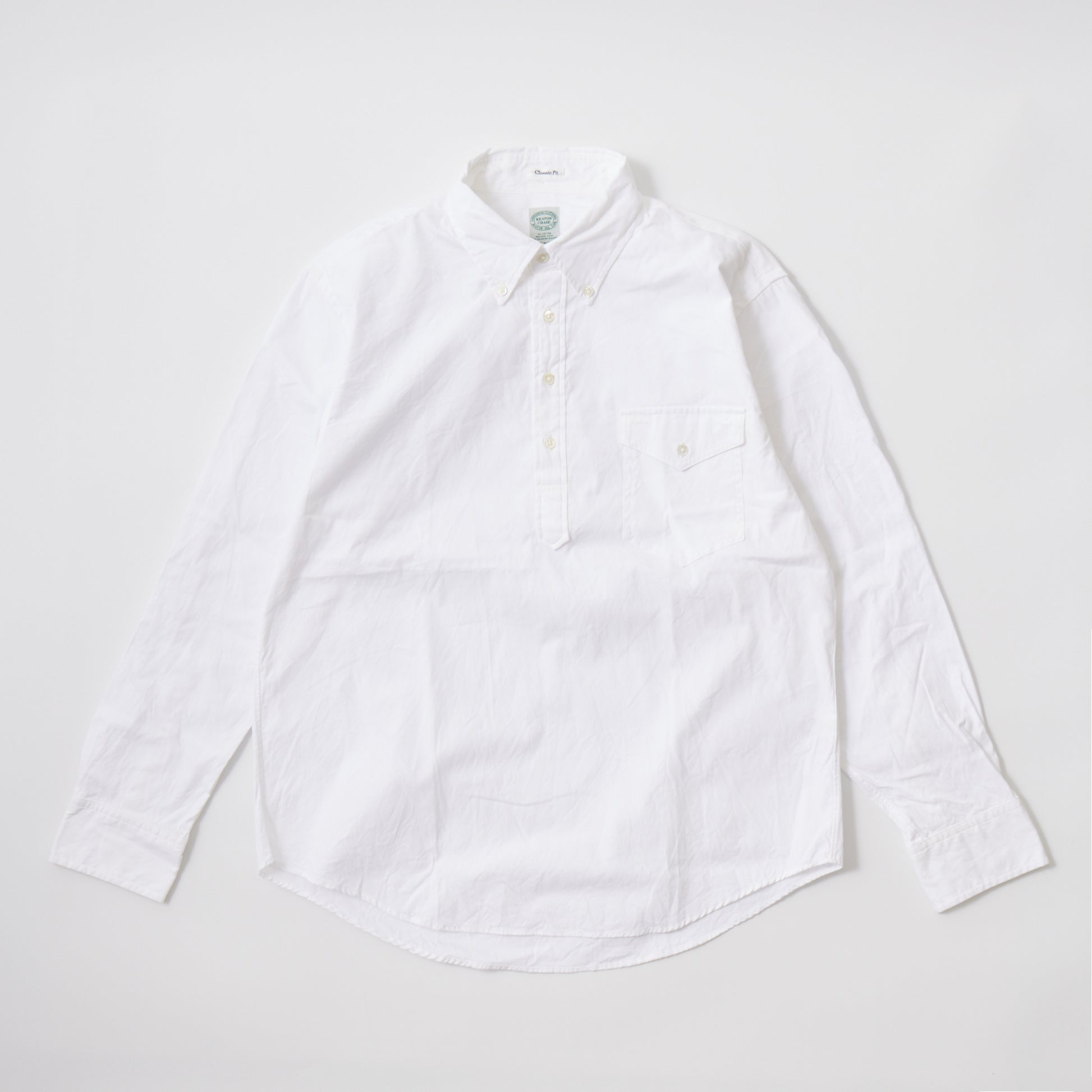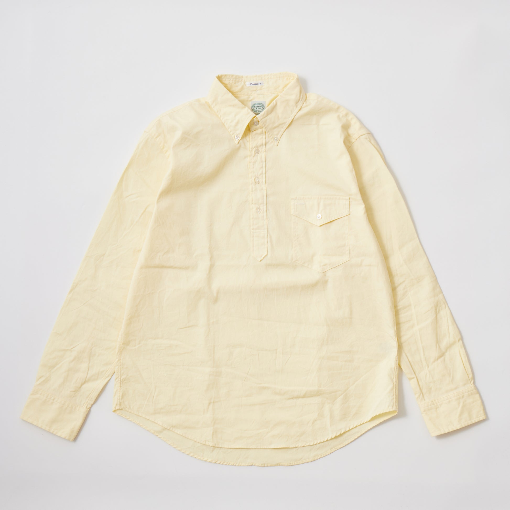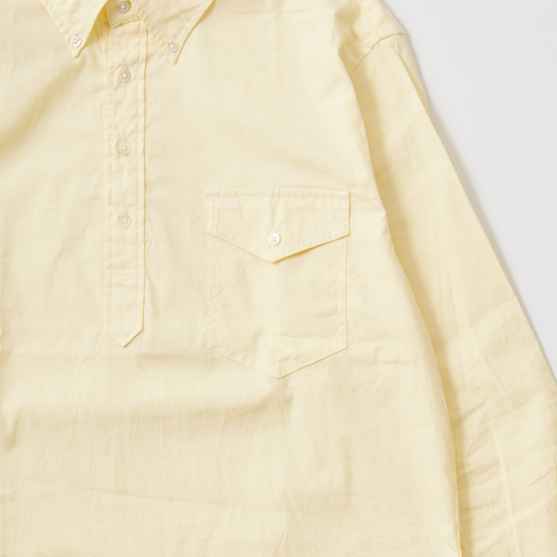 KEATON CHASE USA's L/S CLASSIC FIT PULLOVER BD SHIRT PINPOINT OXFORD. A long-sleeved button-down pullover shirt made in Japan. Made from smooth, lightweight pinpoint oxford fabric. A flap pocket is placed on the left chest, and the back is box pleated. The shape is a classic fit with a moderate sense of roominess overall, and is characterized by its extra room around the neck.