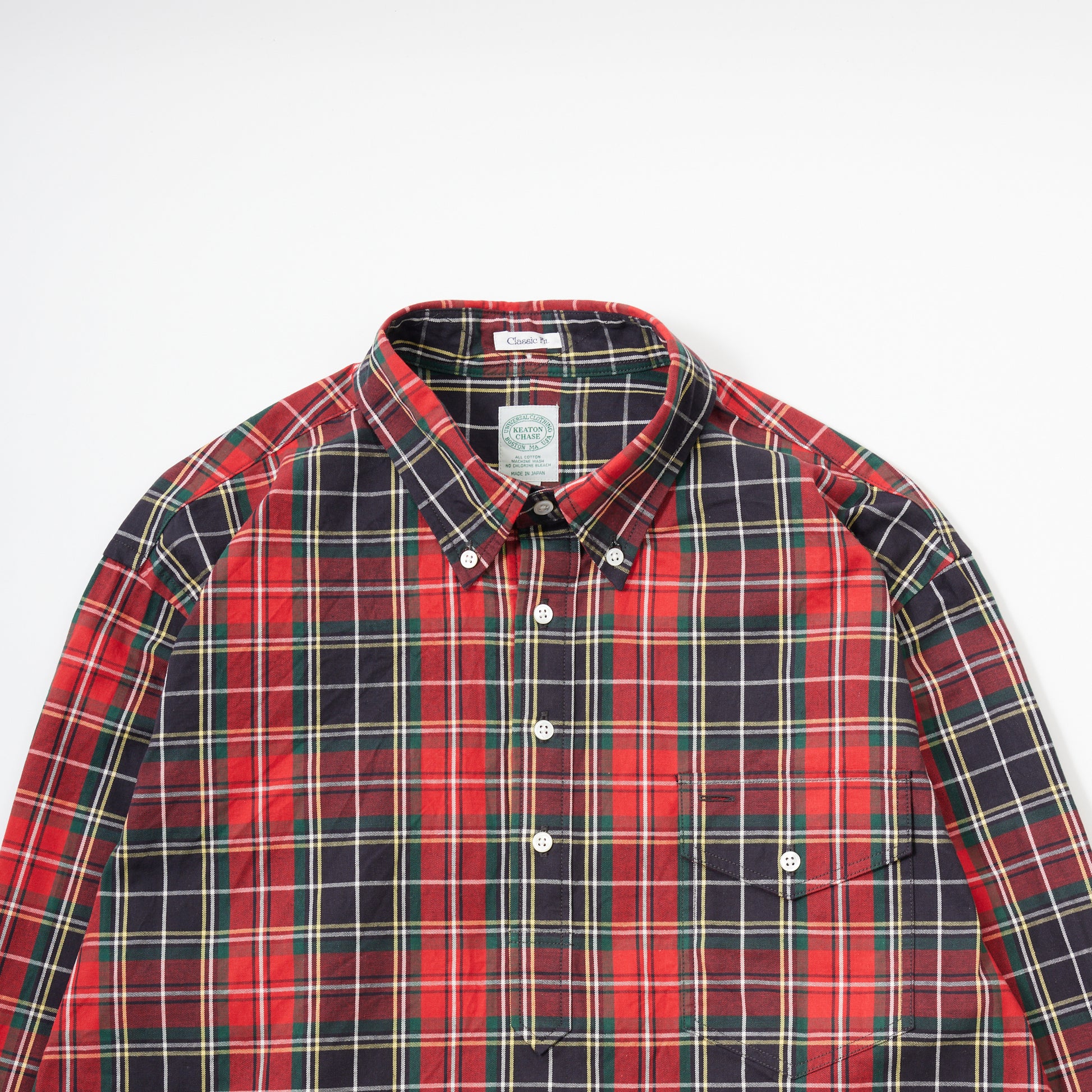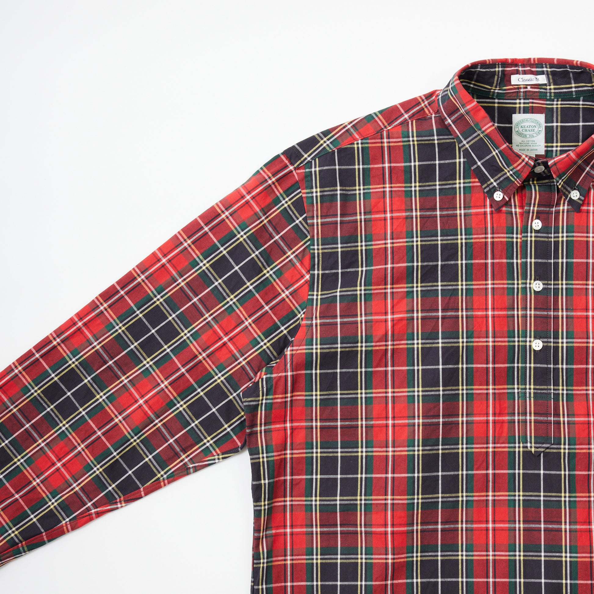 KEATON CHASE USA(キートンチェイスUSA)のL/S CLASSIC FIT PULLOVER BD SHIRT TWILL CHECK。日本生産ラインのプルオーバーの長袖ボタンダウンシャツ。ハリコシのあるツイル生地を使用。左胸にフラップポケットが配置され、背面はボックスプリーツ仕様。シルエットは全体的に程よいゆとり感を持ったクラシックフィットでカフには袖口の調整できるように2個貝ボタンが付いております。ボタンダウンのカッチリとした感じと程よいリラックス感のあるシルエットが良い雰囲気に仕上がっている1着。