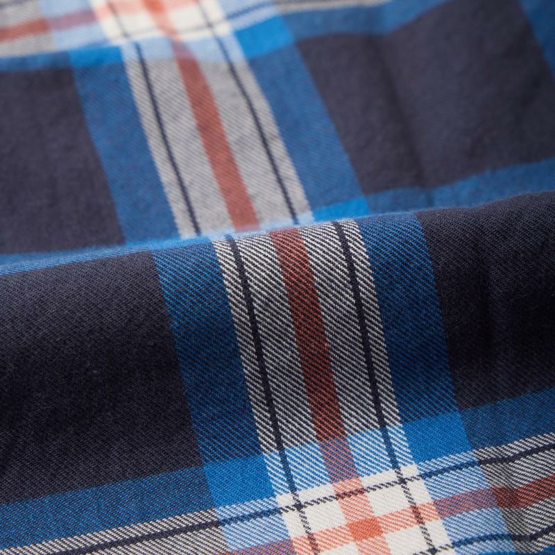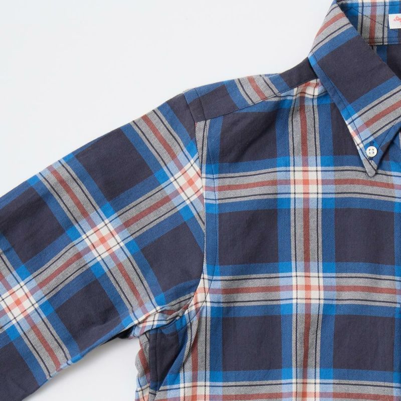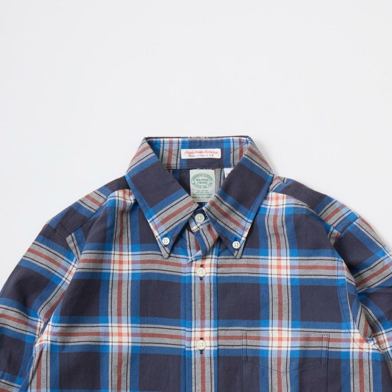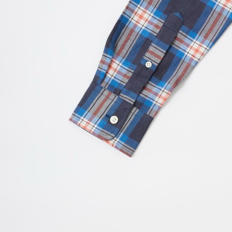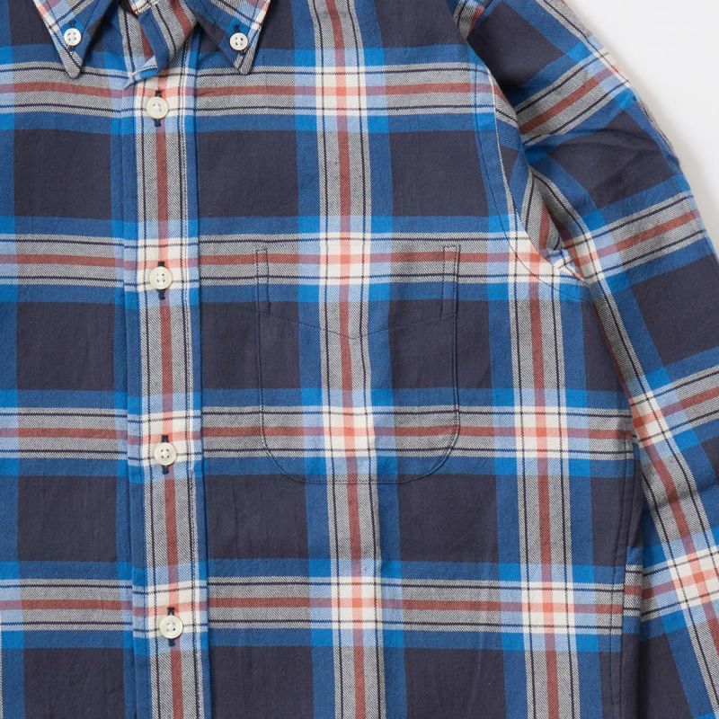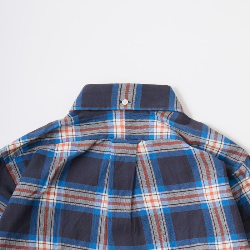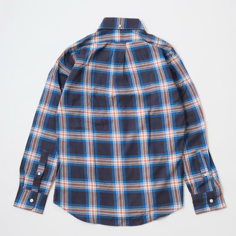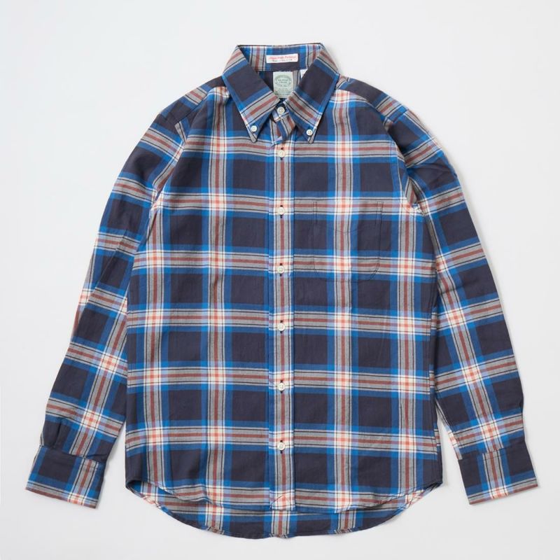 ボストンの老舗ファクトリーにて生産される製品は、シングルニードルで丁寧に縫製されています。旧き良きアメリカを思わせるクラシックなシャツをベースに定番のボタンダウンシャツは、タイドアップも様になる丁度良い大きさの襟、補強の為の襟裏のジグザグステッチ、背面のボックスプリーツやハンガーループ等の王道ディテールは、旧き 良きアメリカを連想させるクラシックな雰囲気。そのクラシックさとは対照的に、細身の現代的なシルエットに仕上がっています。従来のアメリカンシャツでは 考えられない程のバランスの良さは、袖を通して頂ければすぐにお分かり頂けると思います。着丈の長さも丁度良く、裾を出して細身のパンツを合わせてもグッ ドバランスです。もたつきが全く無い為、色々なレイヤードにも適しています。自信を持ってお薦め出来る完成度の高いシャツです。USA MADEの中では着丈が短いのが特徴です。この生地は、日本の完成度の高いチェックツイルになります。