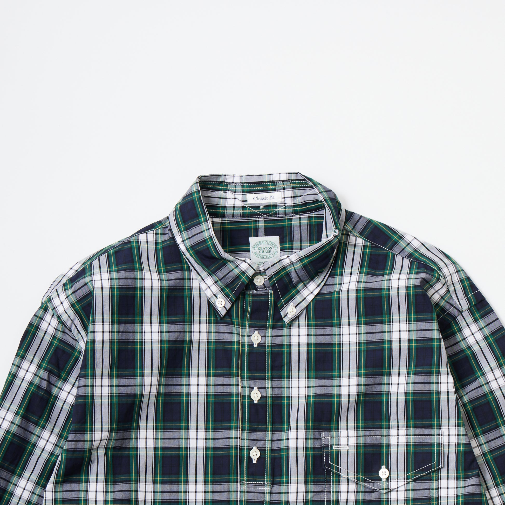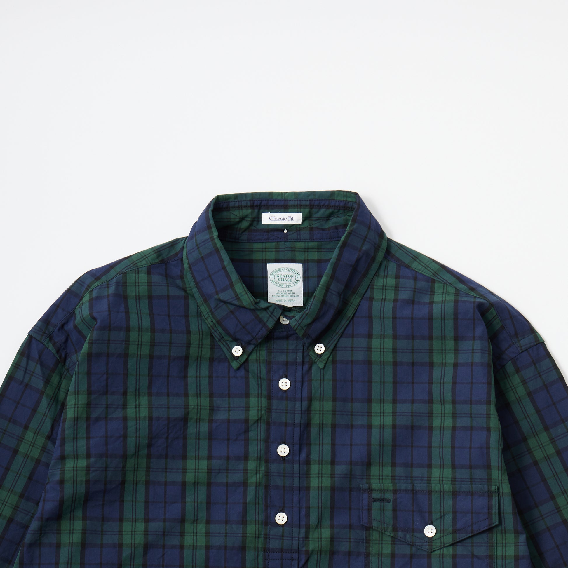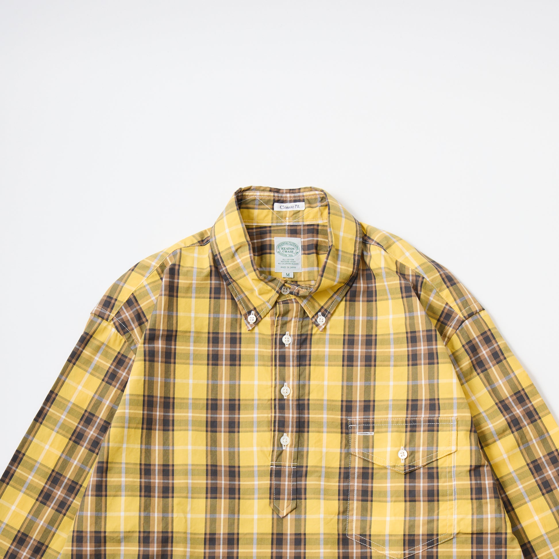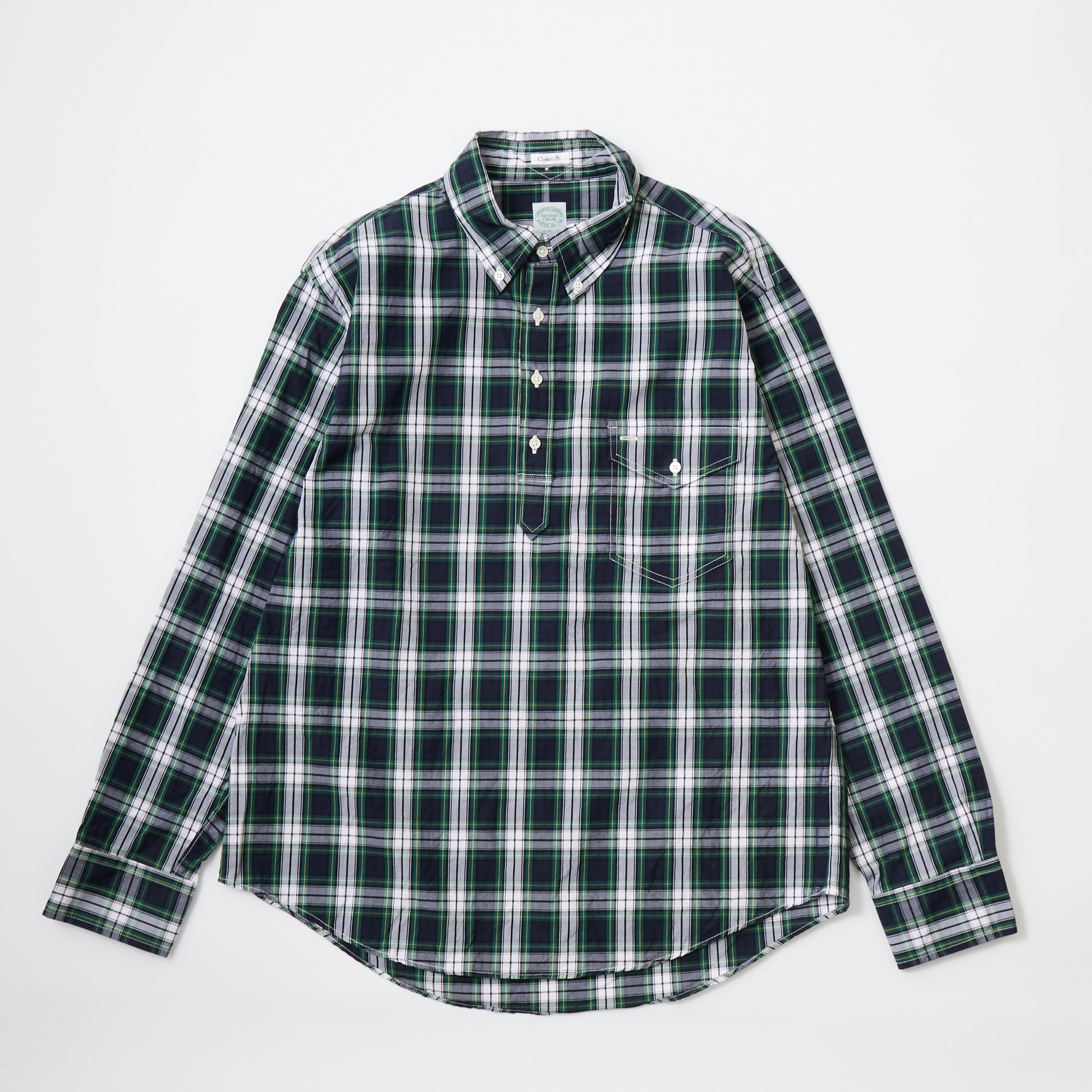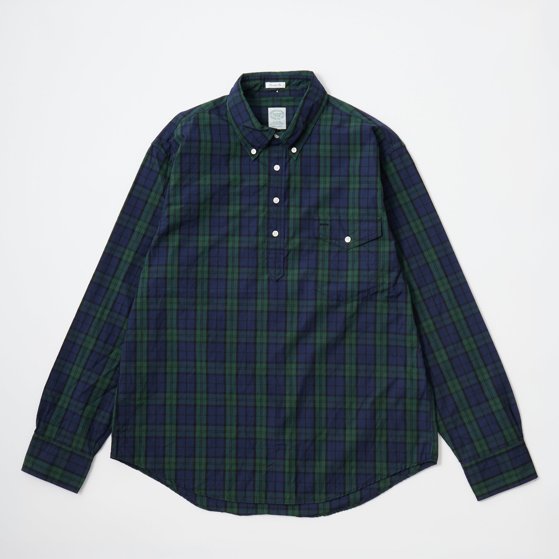 KEATON CHASE USA's L/S CLASSIC FIT PULLOVER BD SHIRT BROAD TARTAN CHECK. A long-sleeved pullover button-down shirt produced in Japan. Broadcloth is softer than cotton twill, making it the perfect fabric for spring and autumn. It has a flap pocket on the left chest and box pleats on the back. It comes with chalk buttons typical of American shirts. The silhouette is a classic fit with just the right amount of roominess. The button-down has a firm feel, while the silhouette has just the right amount of relaxation, creating a nice atmosphere.