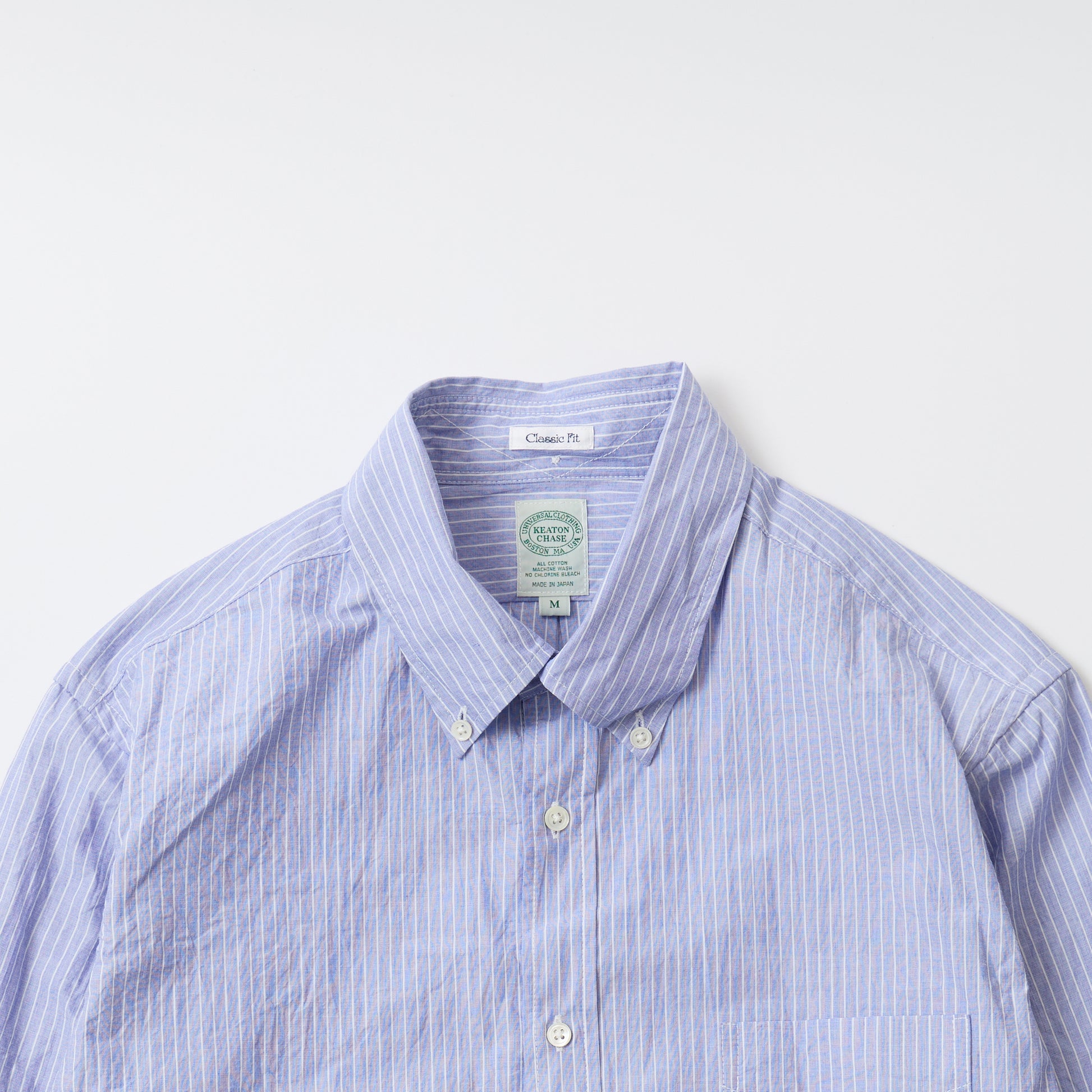 KEATON CHASE USA L/S FULL-OPEN CLASSIC FIT BD SHIRT – END ON END STRIPE. A long-sleeve, full-open button-down shirt from our Japan production line. Made from a crisp, dry-touch fabric, it offers a light and breathable feel. An easy piece to wear comfortably through the spring and summer seasons.