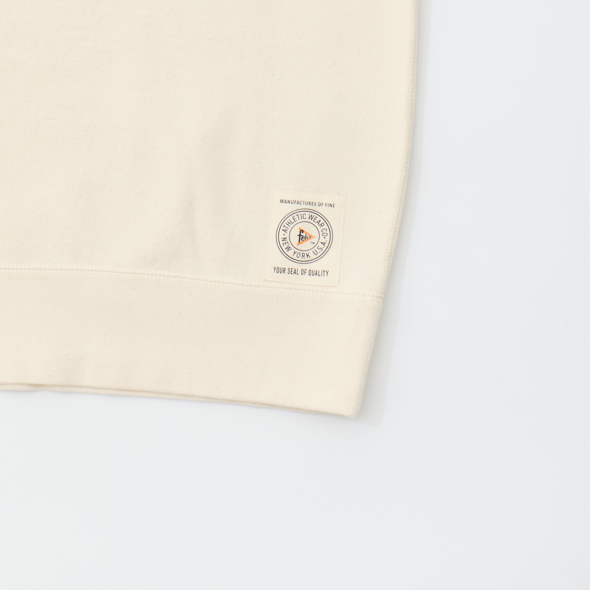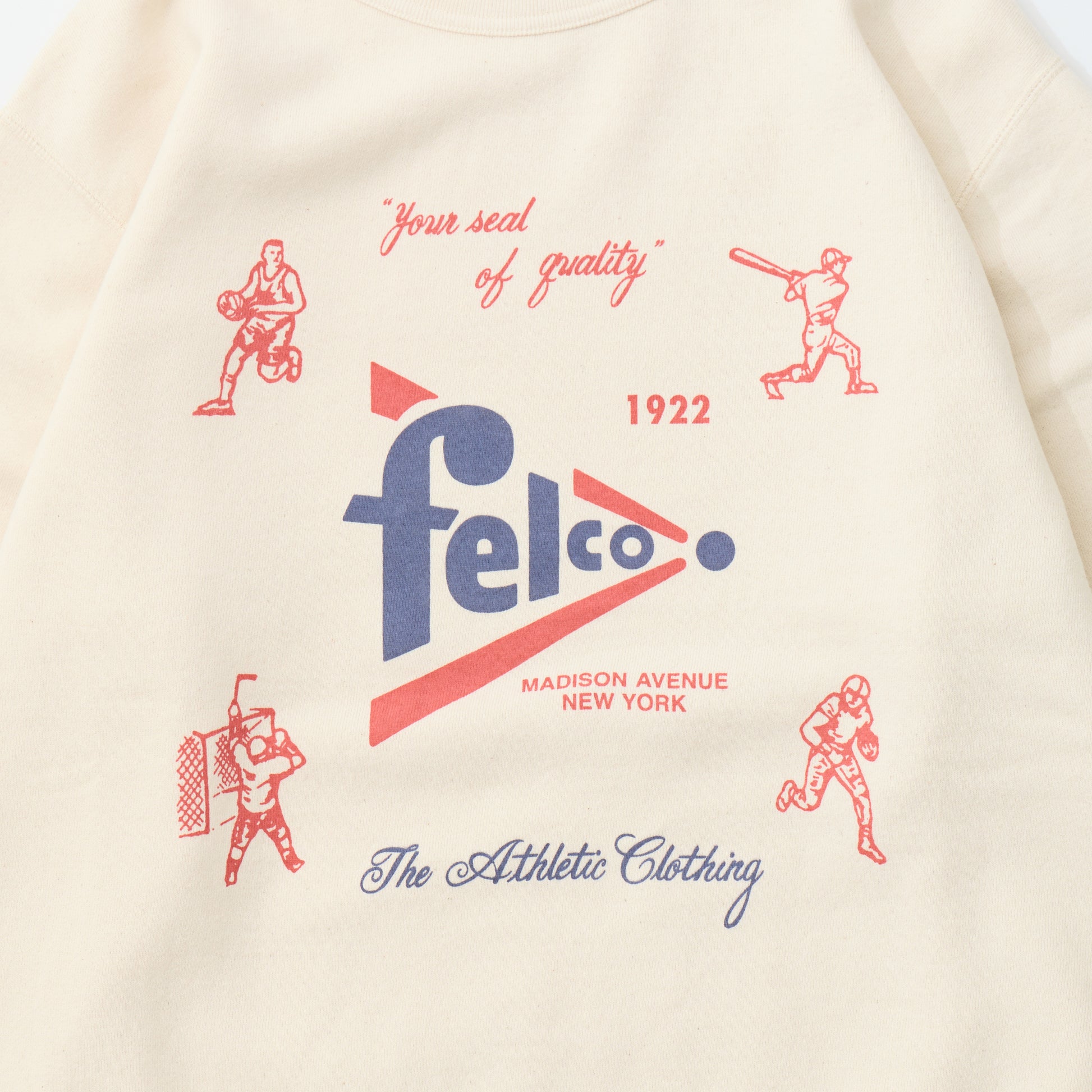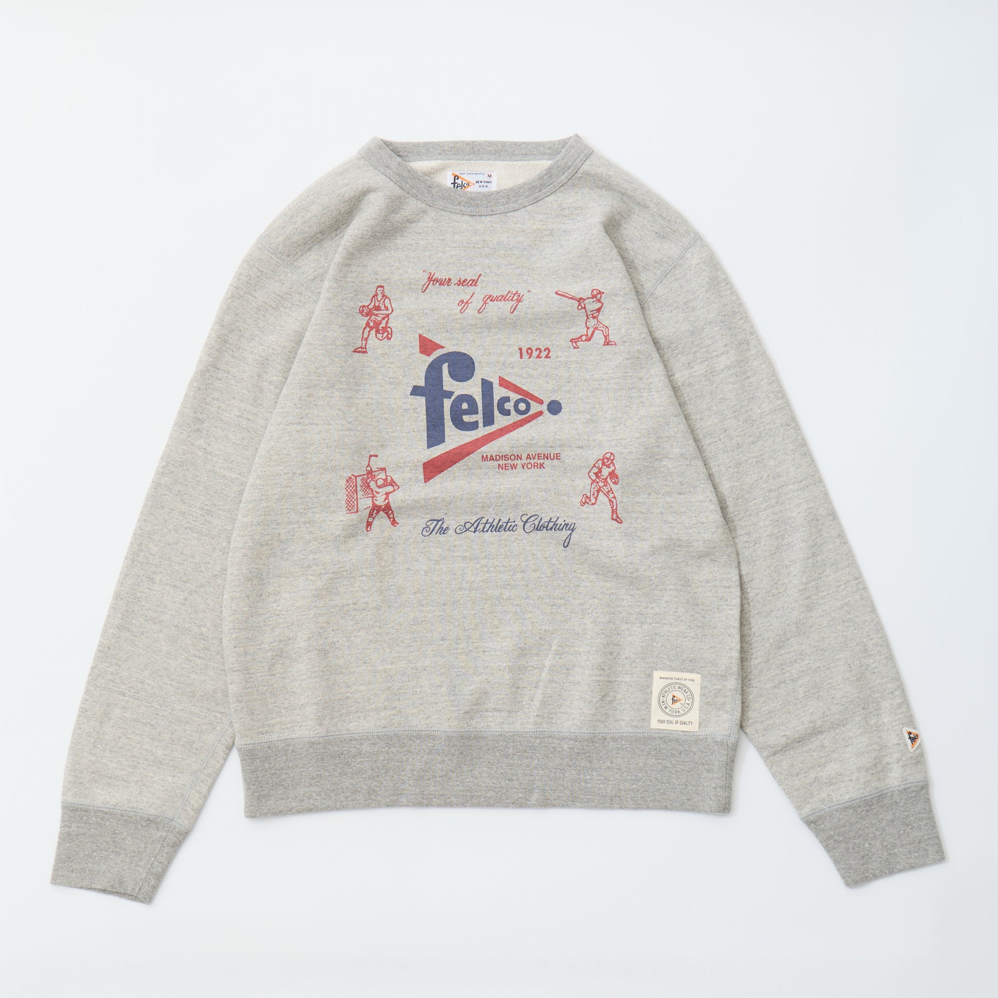 FELCO(フェルコ)のCLASSIC FIT 10oz TERRY BINDER CREW SET IN SWEAT - FELCO SPORTS PRINT。ライトウェイトのフレンチテリー(裏起毛していないスウェット生地)素材を使用したセットインスリーブバインダークルーネックのスウェットシャツ。春先や秋口には1枚でも着やすいですし、寒くなればインナーとしても使いやすい生地の厚み。プリントは独特のムラ感のある染み込みプリントを採用し、古着のような風合いを再現。年間通して考えれば一番汎用性の高い1枚です。