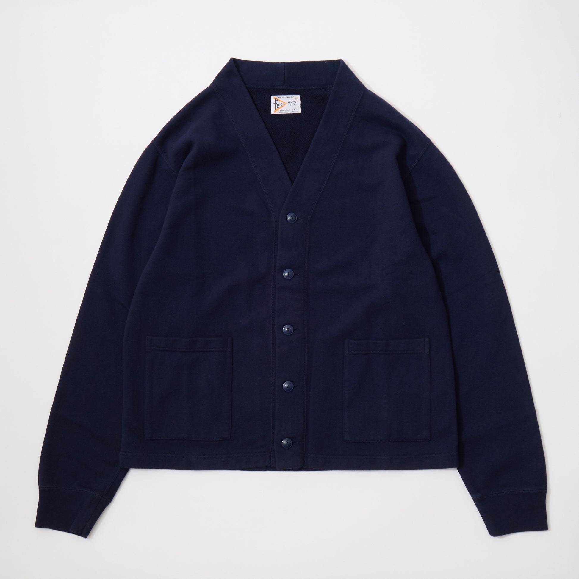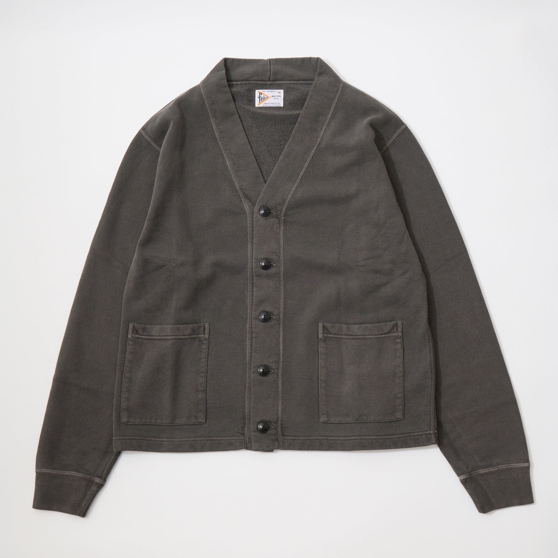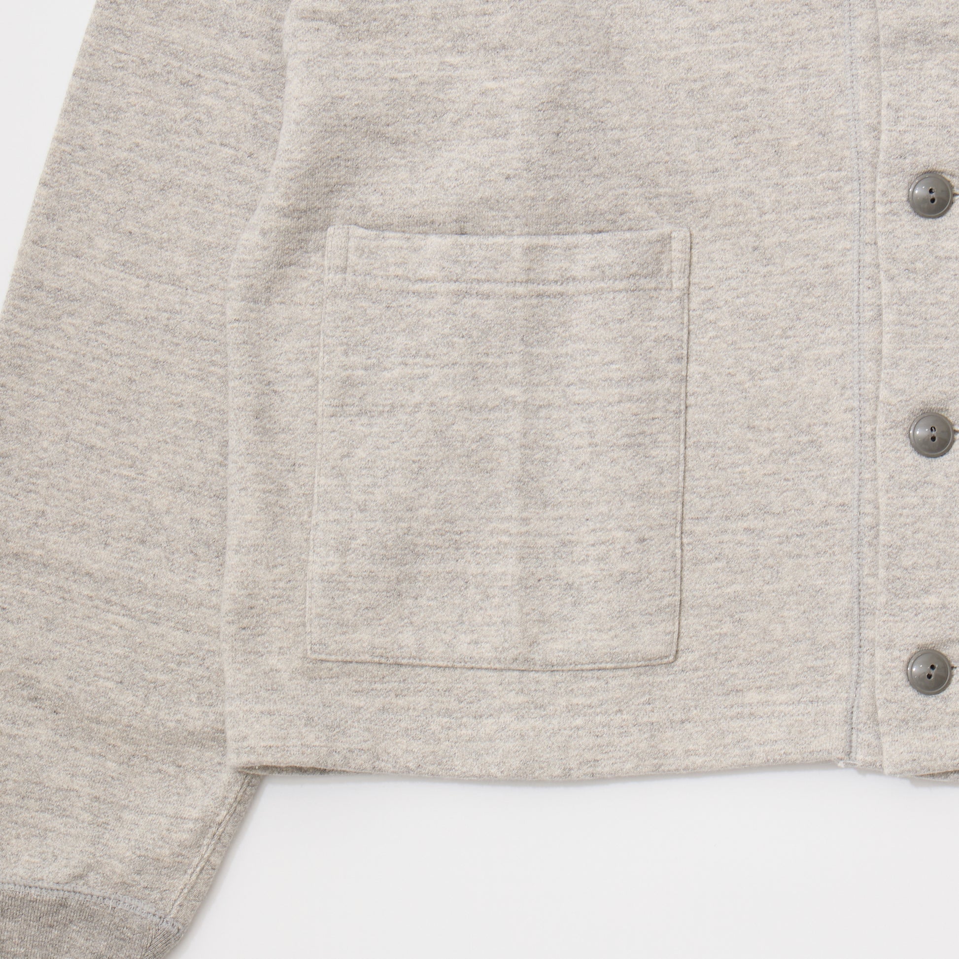 A button-front cardigan made from 10oz French terry (non-brushed sweatshirt fabric). Designed with patch pockets at the waist and cut in a classic fit with a comfortable amount of room. Lightweight enough to wear on its own in early spring or fall, yet easy to layer as an inner piece when the weather gets colder.