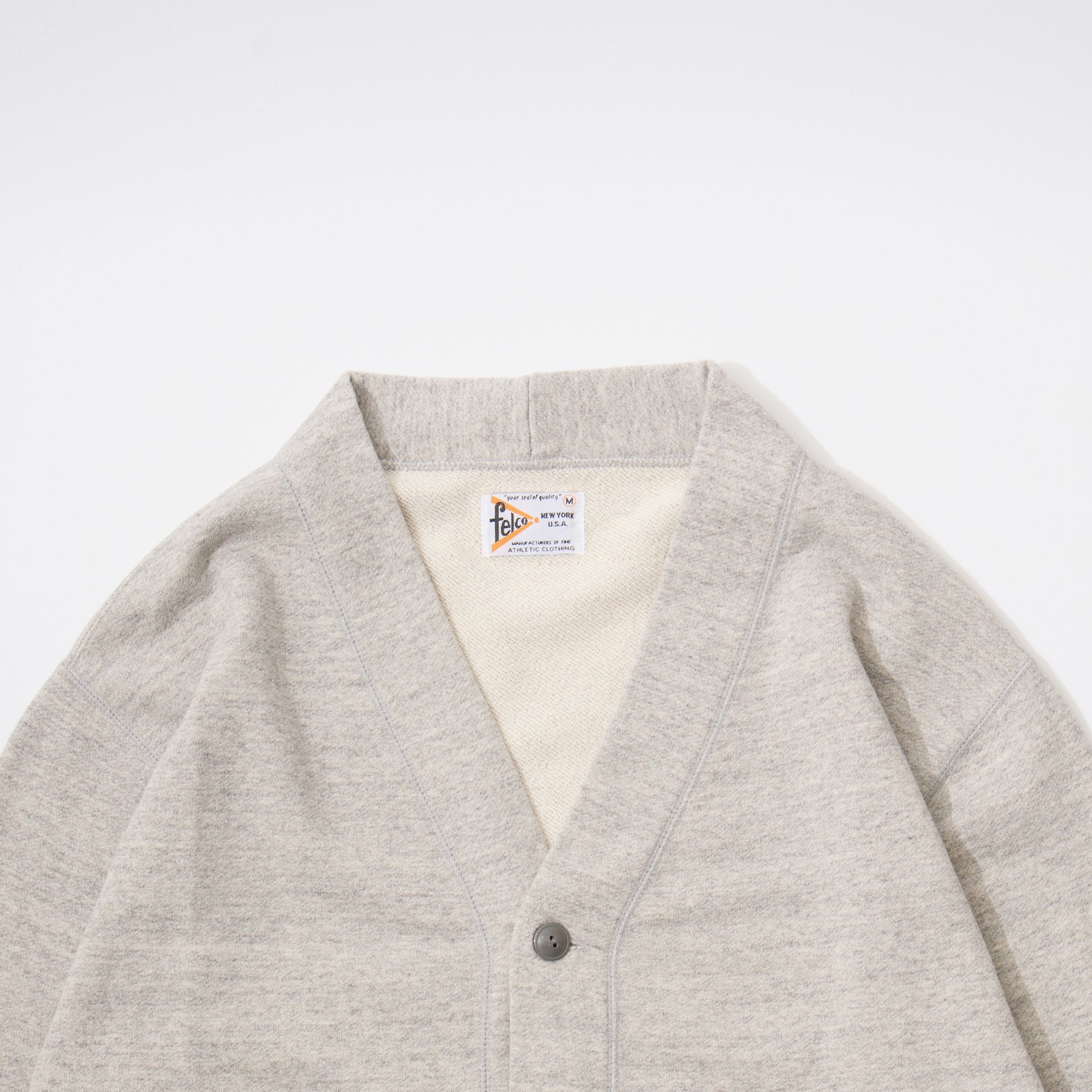 FELCO(フェルコ)のCLASSIC FIT 10oz TERRY V NECK BUTTON CARDIGAN。10オンスのフレンチテリー(裏起毛していないスウェット生地)素材を使用したボタンフロントのカーディガン。ウエスト部分にはパッチポケットを装備。全体的に程よいゆとりを持たせたクラシックフィット。春先や秋口には1枚でも着やすいですし、寒くなればインナーとしても使いやすい生地の厚み。アウターとしては勿論、重ね着にも使い易いウェイトで、春・秋・冬と幅広く使える汎用性の高い1着。