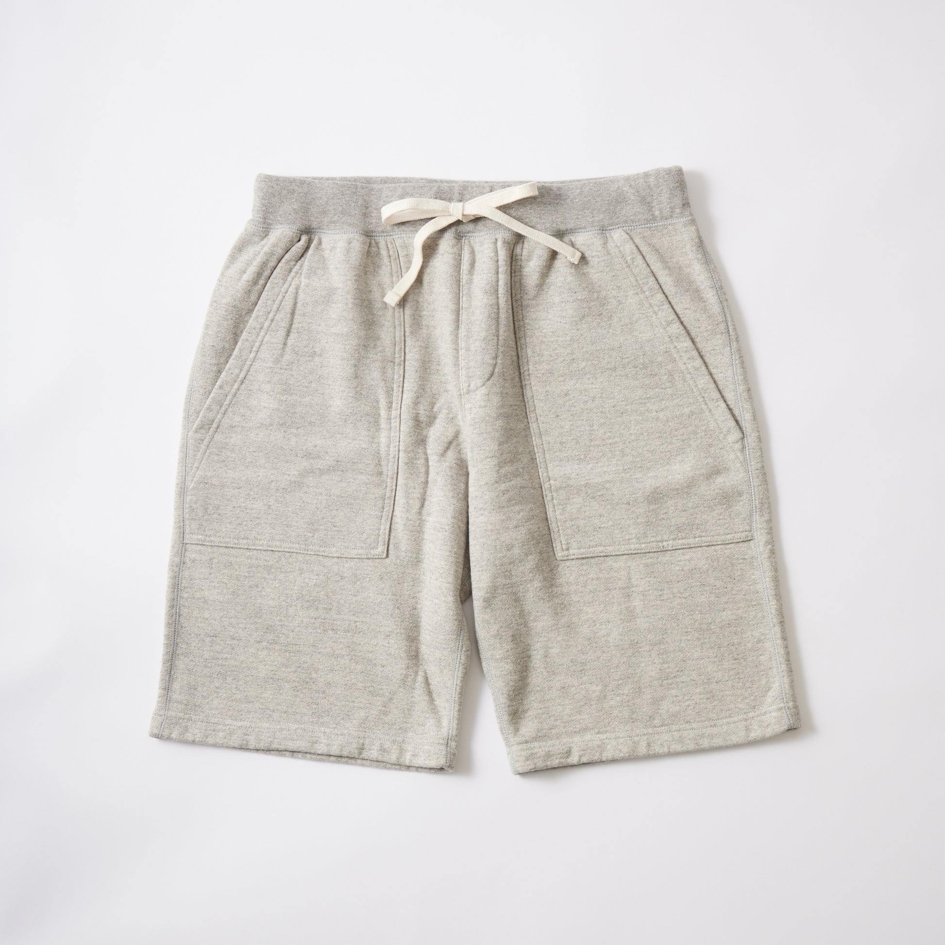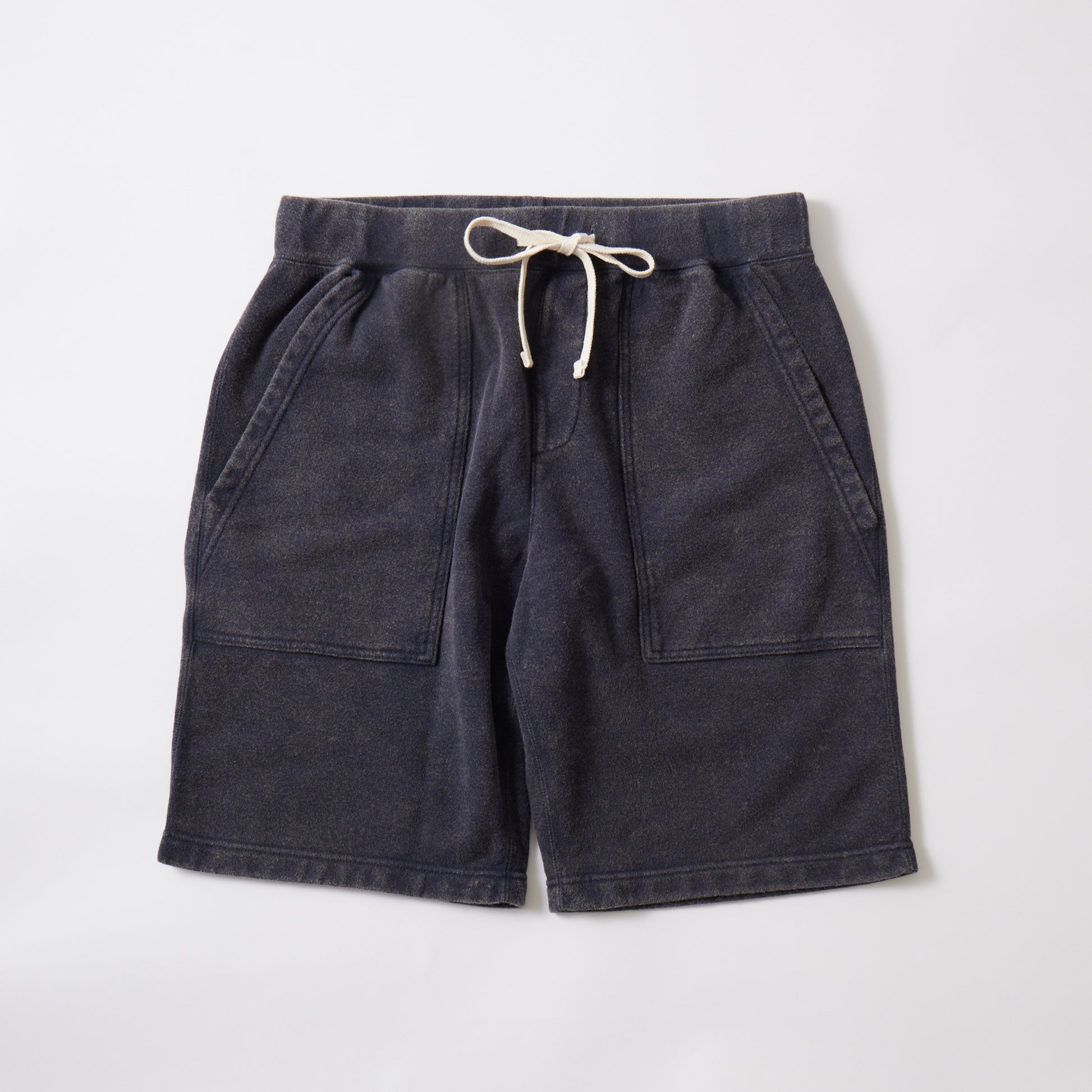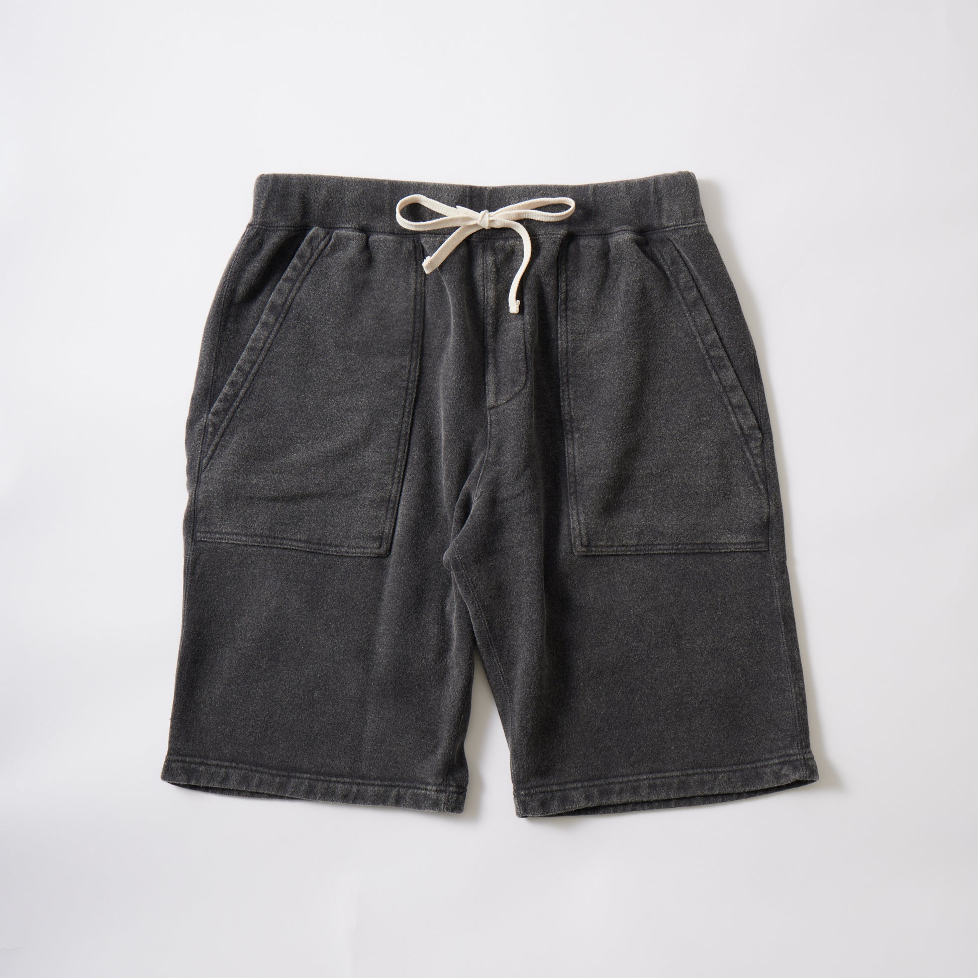 新しく春夏用に独自開発したより薄いフレンチテリー10oz 生地(裏起毛していないスウェット生地)の素材を使用したファティーグタイプのショーツ。ややゆとりのあるサイズ感、ウエストはドローコード付きのゴム仕様で、ストレスフリーな履き心地です。ポケットが正面に二つ、右後ろにも一つ完備されています。シンプルで穿き易く、気兼ねなくデイリーに着用して頂ける1着です。特にヘザー(杢)の色目が独特な色目でフェルコの特徴でヴィンテージ感満載の1着。この春夏は、色落ち感のあるフロストウォッシュ加工をしている色が2色ありますので要注目です。