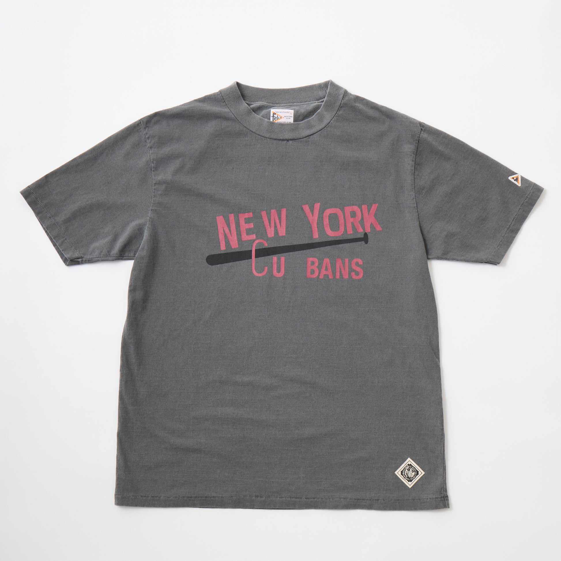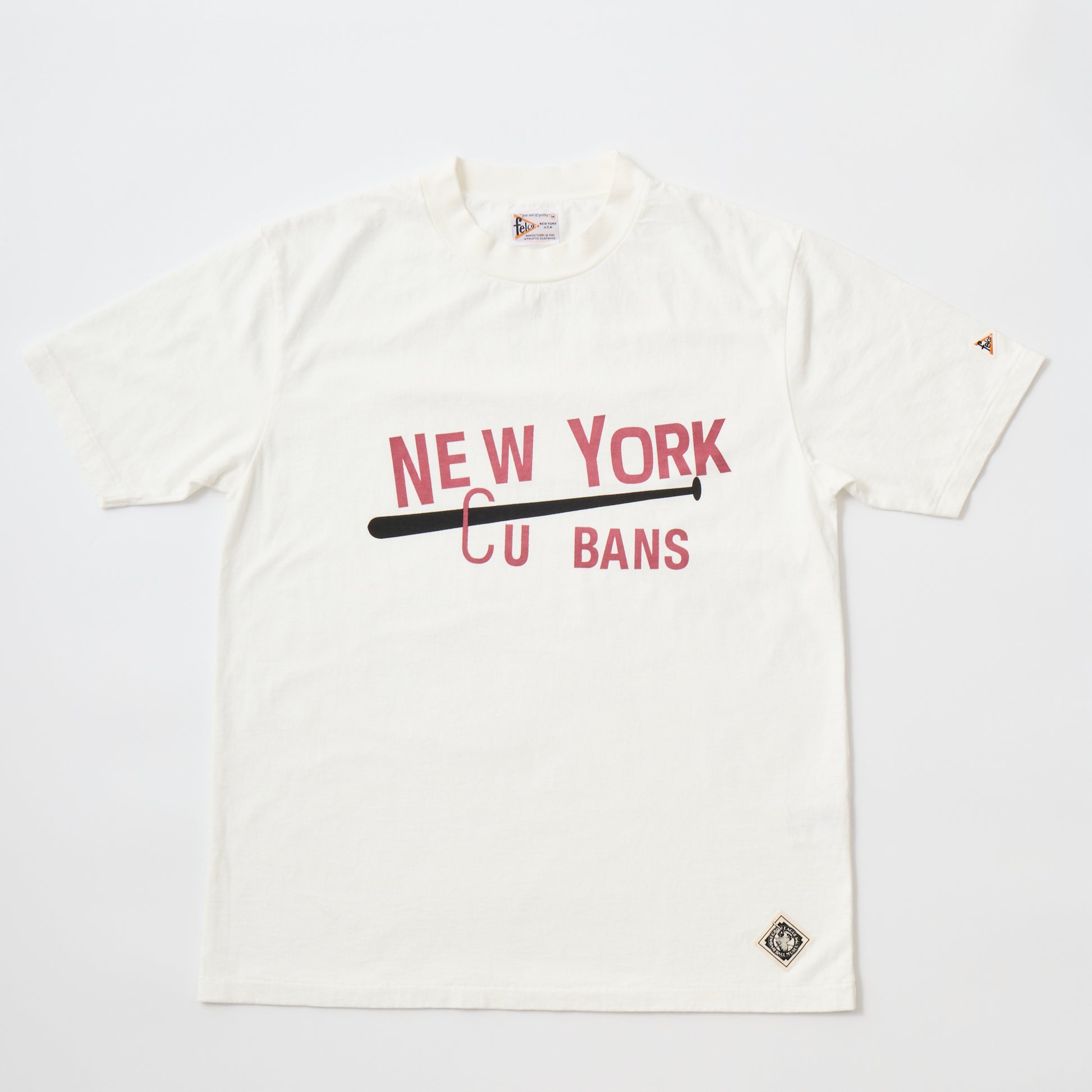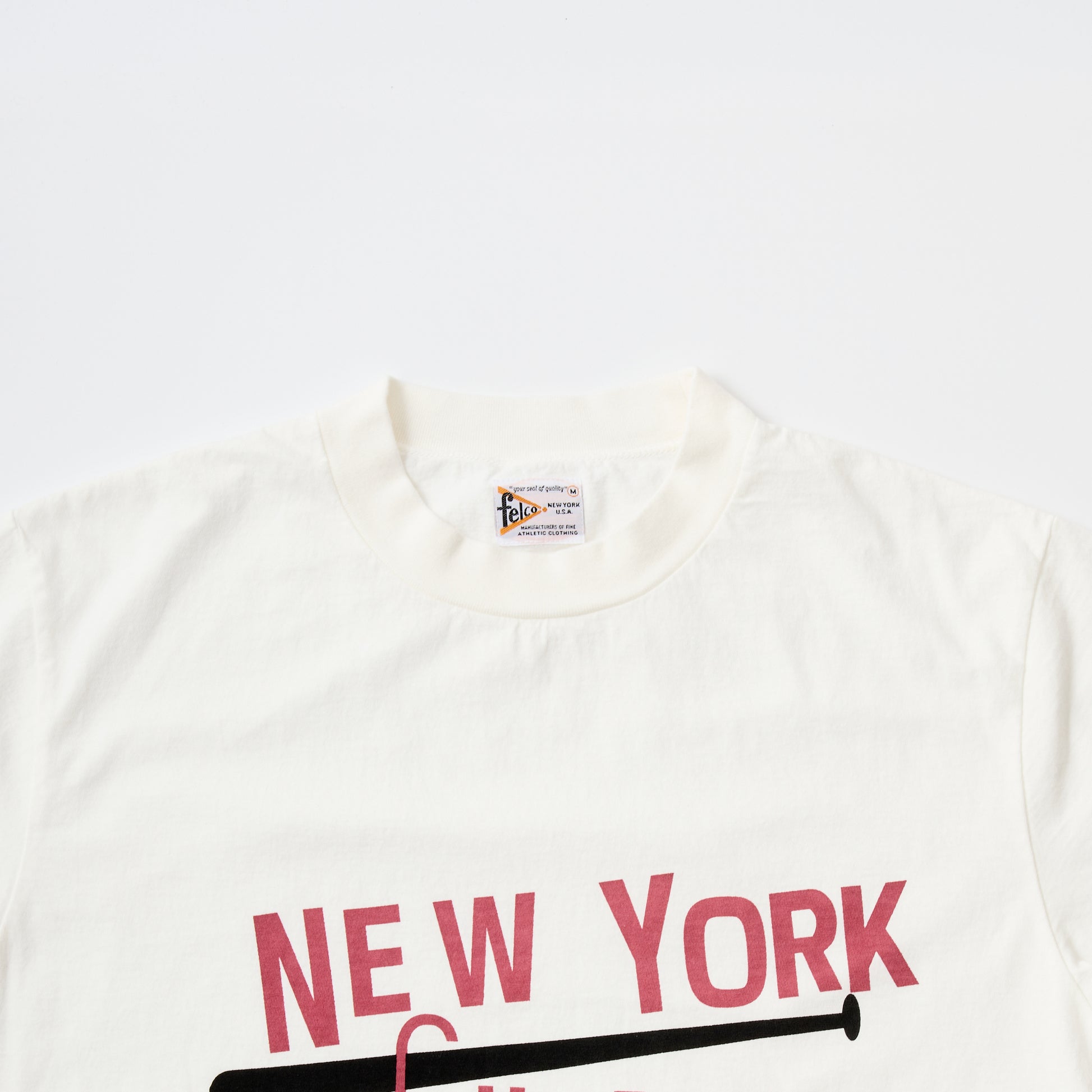 FELCO(フェルコ)の S/S HI-CREW 5oz 30SINGLE CALIFORNIA JERSEY – NEW YORK CUBANS PRINT。60年代のアメリカを彷彿とさせるハイクルーの首元、素材はカリフォルニア綿の30番手の細い糸を使用し、人気のガッシリとしたTシャツと逆向した肌触りの柔らかい仕上がりに、アメリカンビンテージ漂うプリントを施しています。