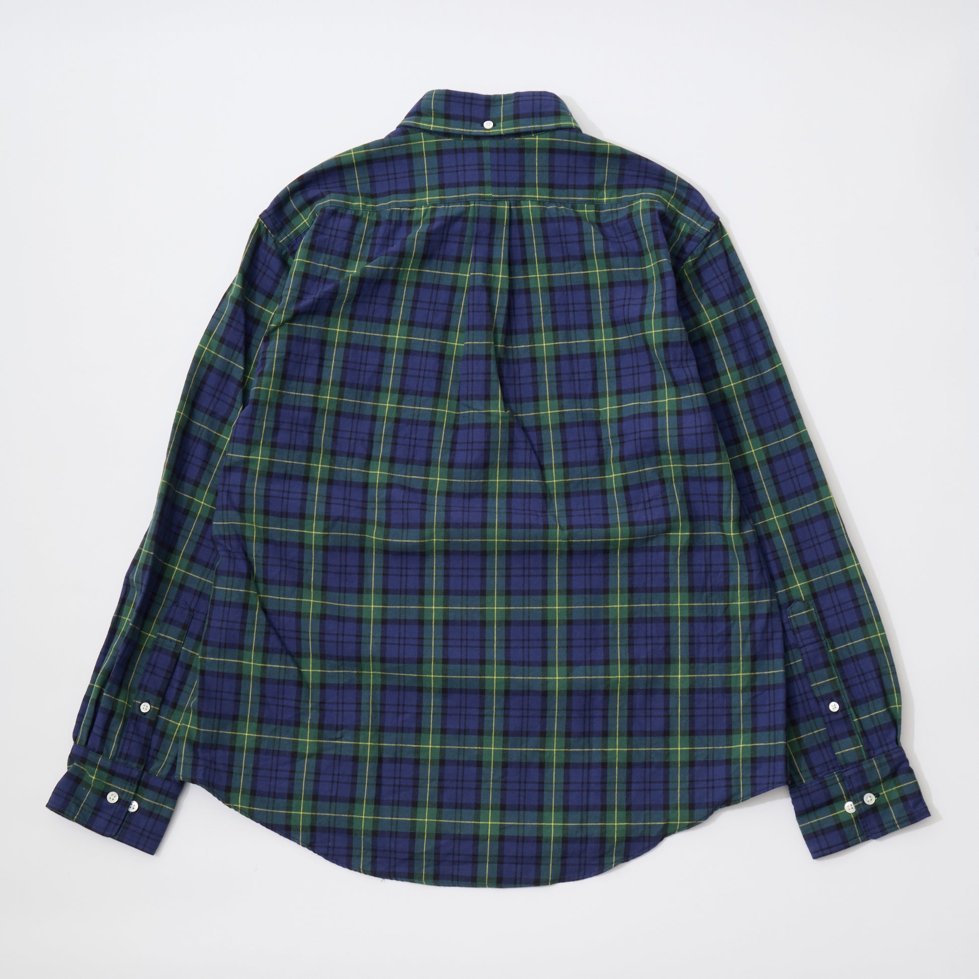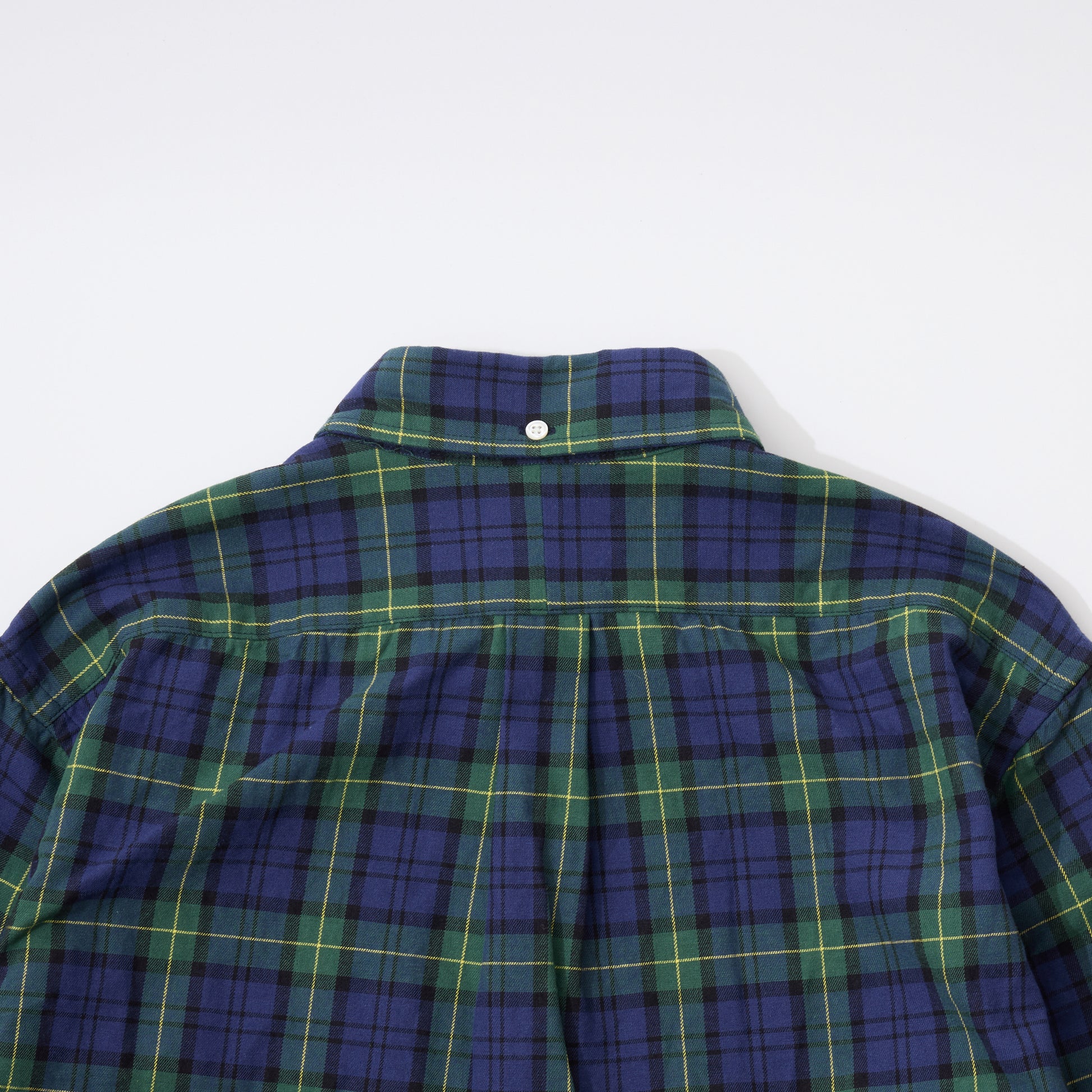 A long-sleeve pullover button-down shirt from the Japan production line. Features a flap pocket on the left chest, a box pleat at the back, and a locker loop button at the back of the collar. Designed with a classic fit that offers a comfortable amount of room. Crafted from a cotton twill fabric in a calm, understated check pattern.